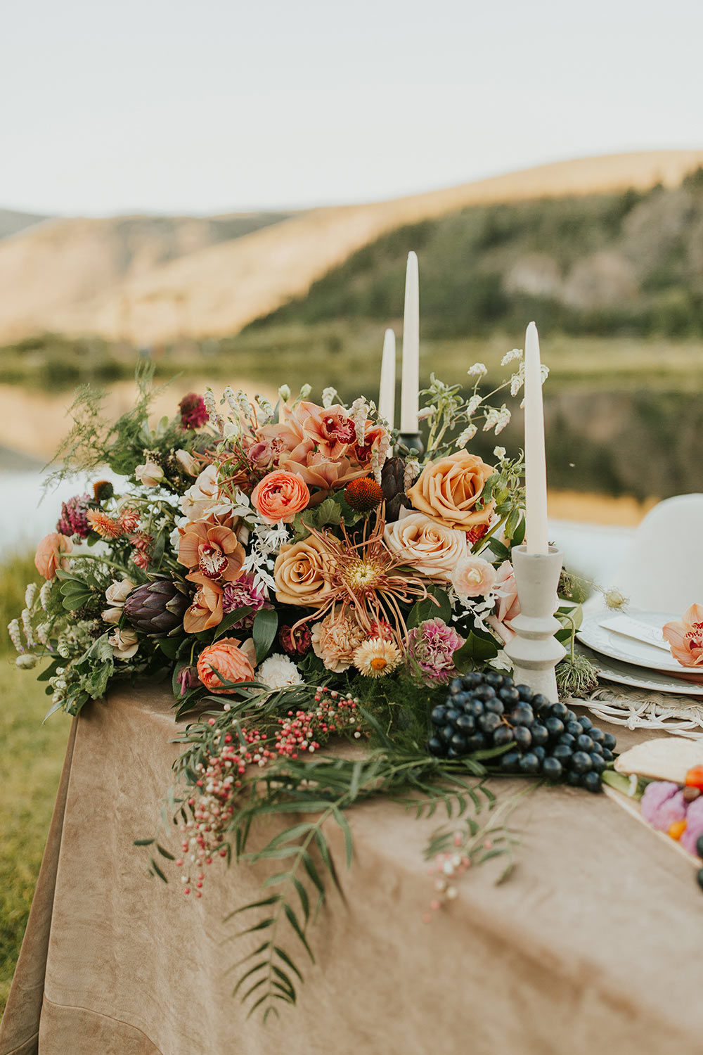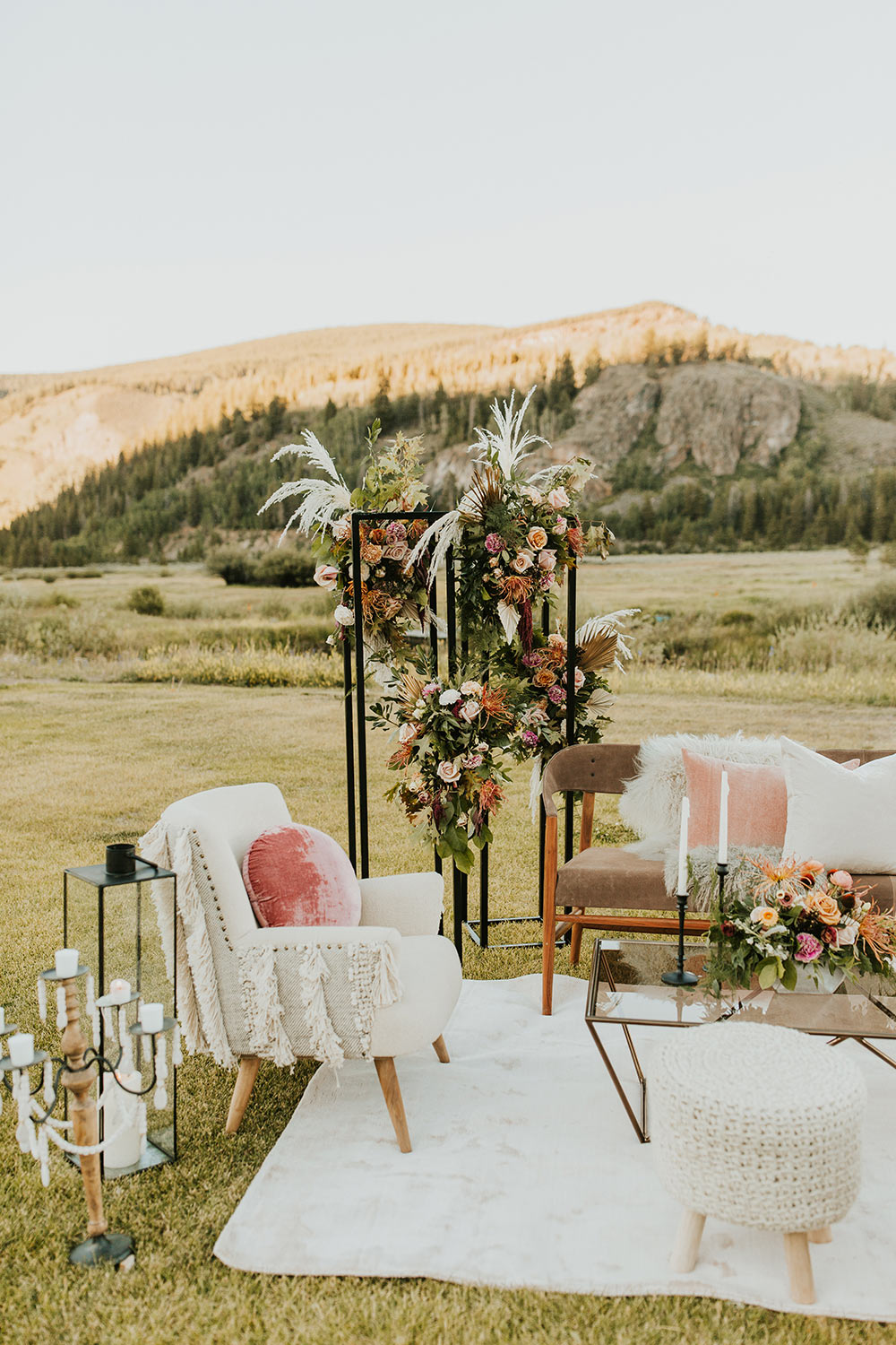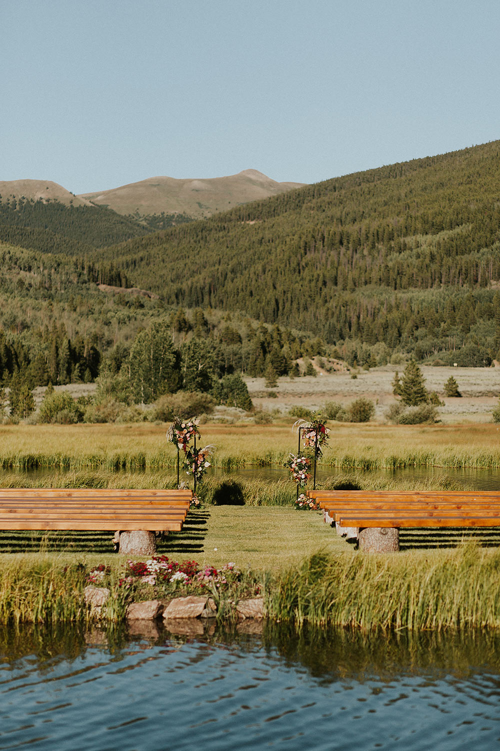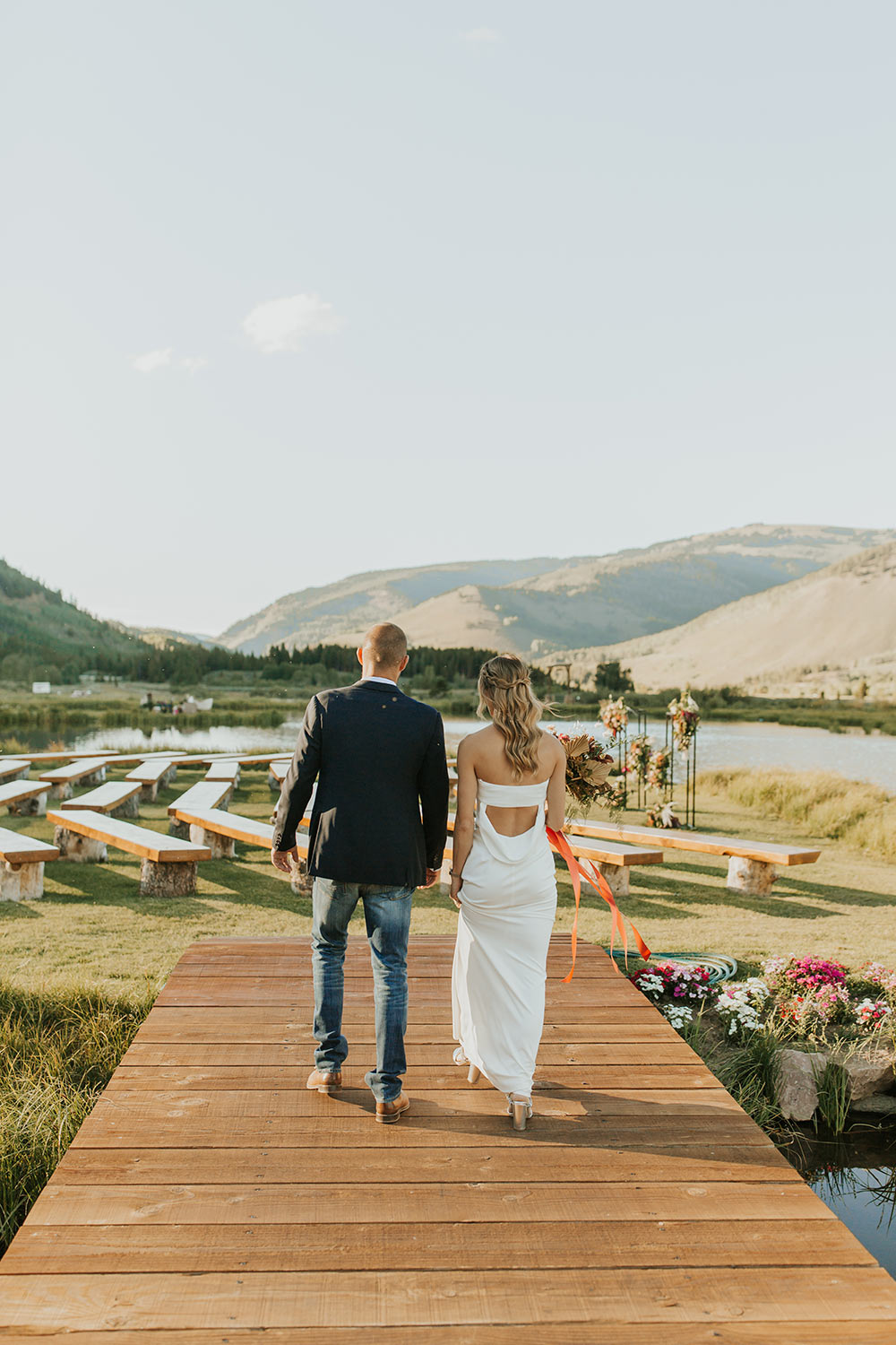 Photography: For the West and Wild | Planning and Design: Erika Sandoval Events | Venue: Camp Hale Weddings | Floral Design: Inspired Designs Floral and Event Design | Stationer: Tasha Rae Designs | Linen and Chargers: BBJ Linen | Hair and Makeup: cKaceeGo Kacee Picot | Cake: Ruby Jean Patisserie | Charcuterie Board: The Grazing Fox | Rentals and Tabletop Decor: Hazel Grove Rentals & Design | Dress: Revolve | Grooms Coat: Armani | Jewelry: Sarah O. Jewelry | Ring Box: The Mrs. Box | Solitaire ring and gold wedding band: Family Heirlooms | Bride and Groom: Danielle and Drake McCulloch
