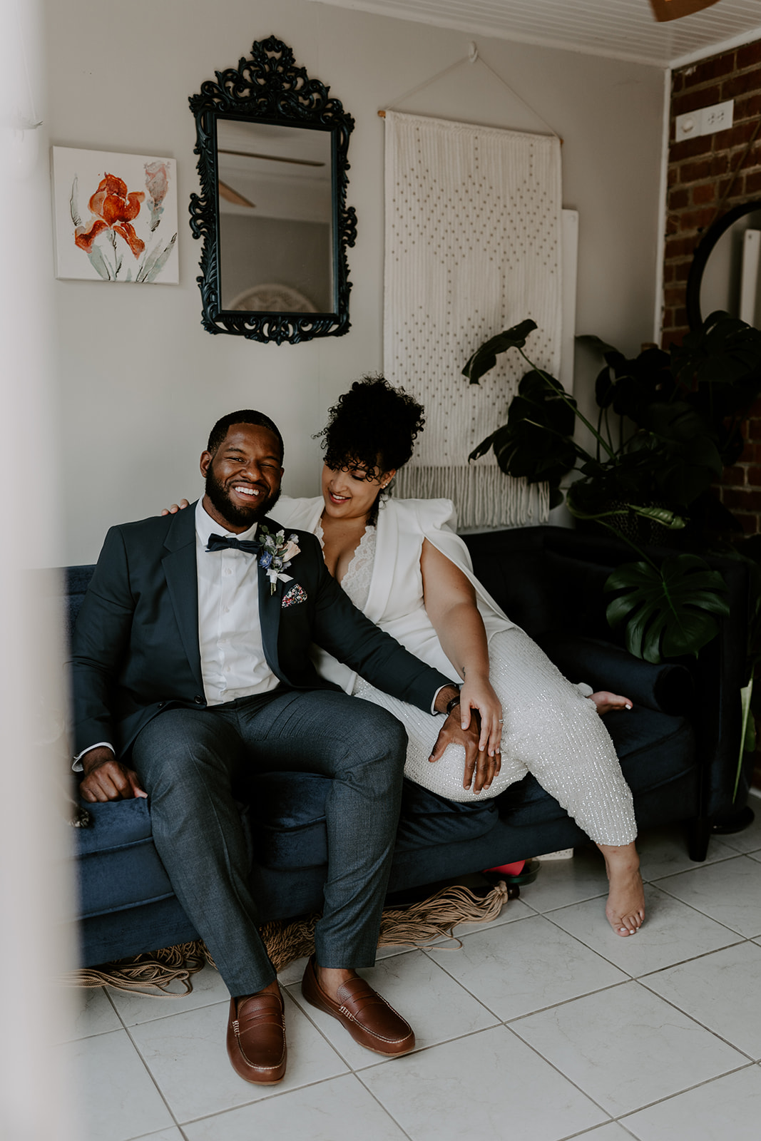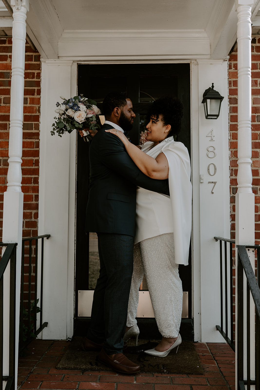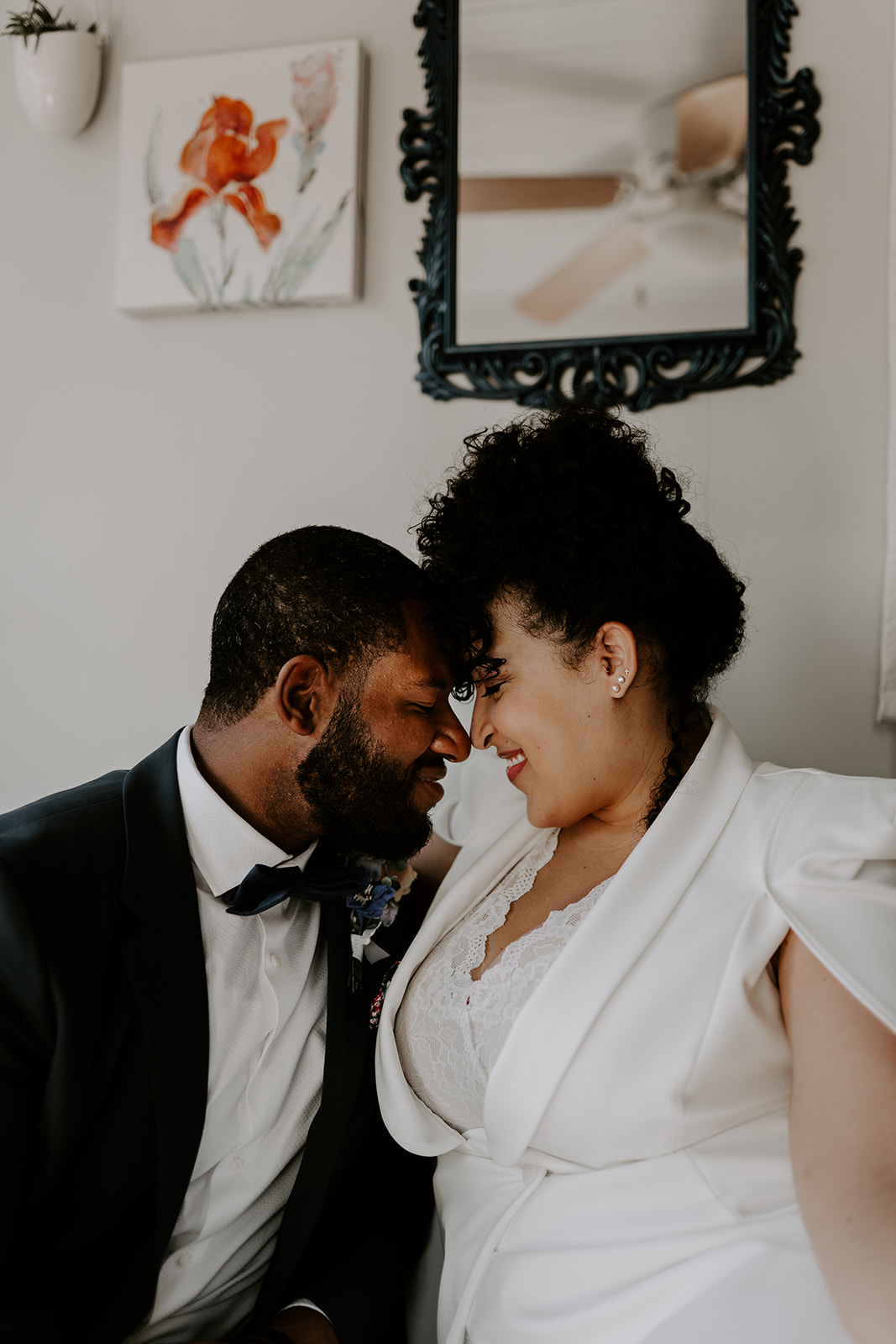 Andrea & Patrick streamed a simple and sweet virtual wedding at home this year, in the midst of the pandemic and the movement on Black Lives Matter. They had a lovely Virginia elopement, just the two of them and their pup, full of meaning and love. Andrea is a registered nurse, and Patrick a former nurse, so they made the decision to celebrate without their families and friends physically present, but that didn’t stop them from having a magical day. She says, “It was a tough decision, but the safest one we felt for our situation. The simplicity allowed for us to celebrate a quaint joining of hearts in a home we hope to keep for many years to come. We are ultimately just grateful to have the support of our loved ones at this time, and couldn’t bear the risk of jeopardizing their health and welfare for what we felt would be a glorified party.”