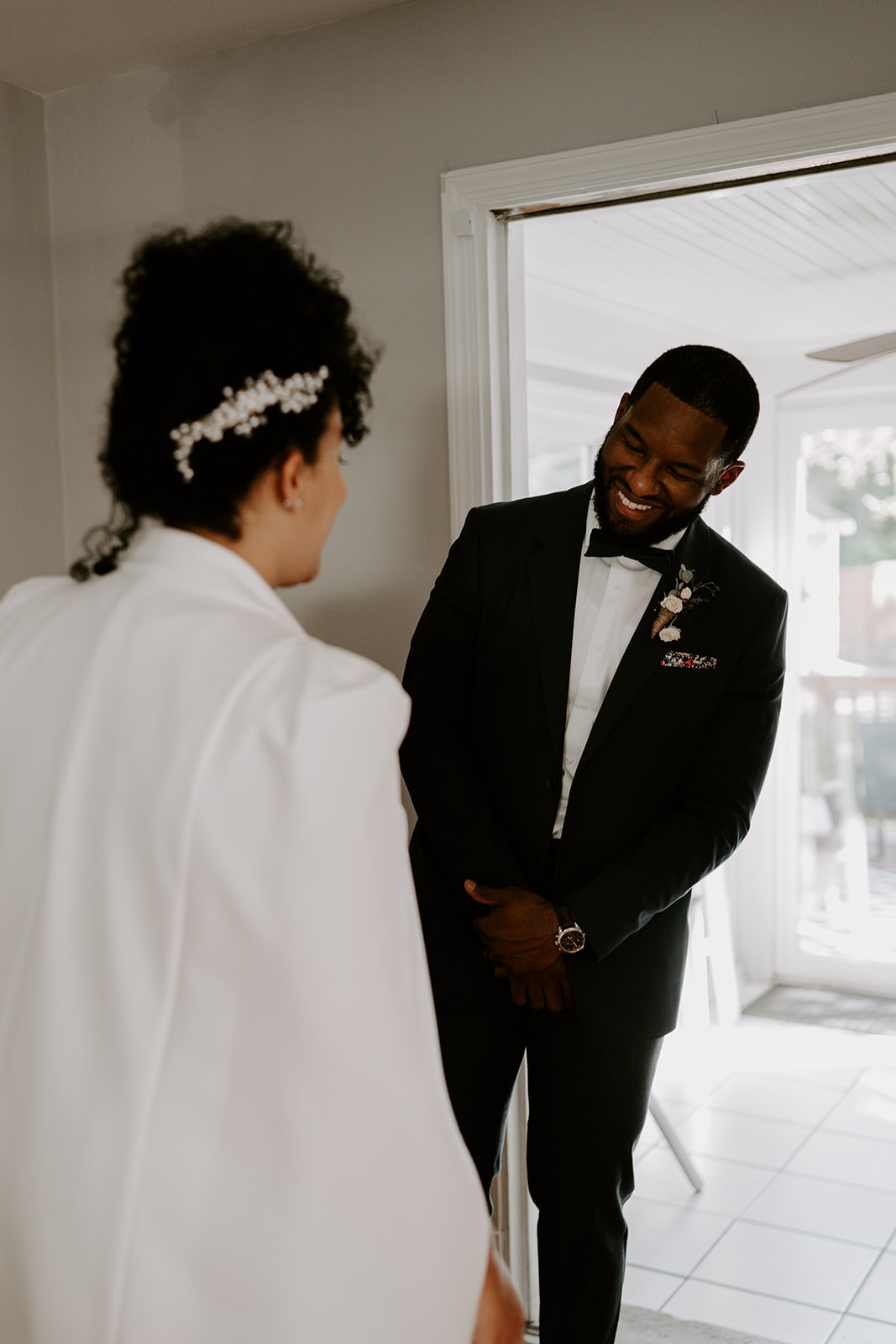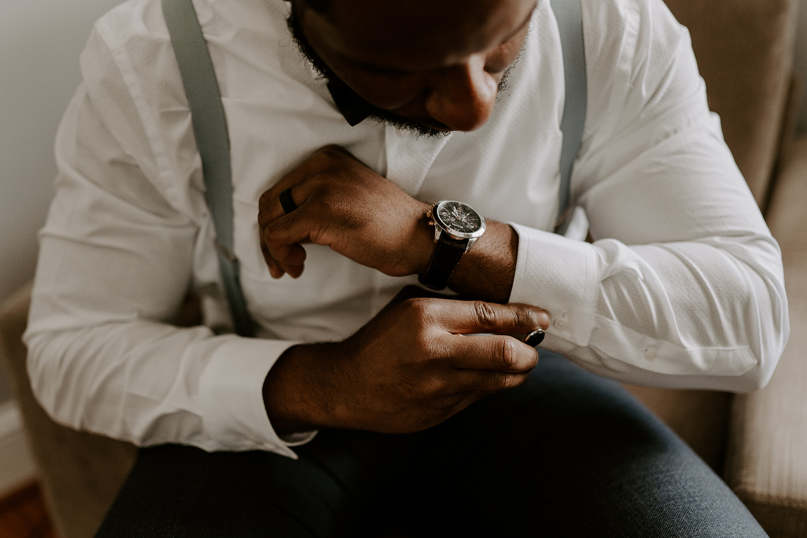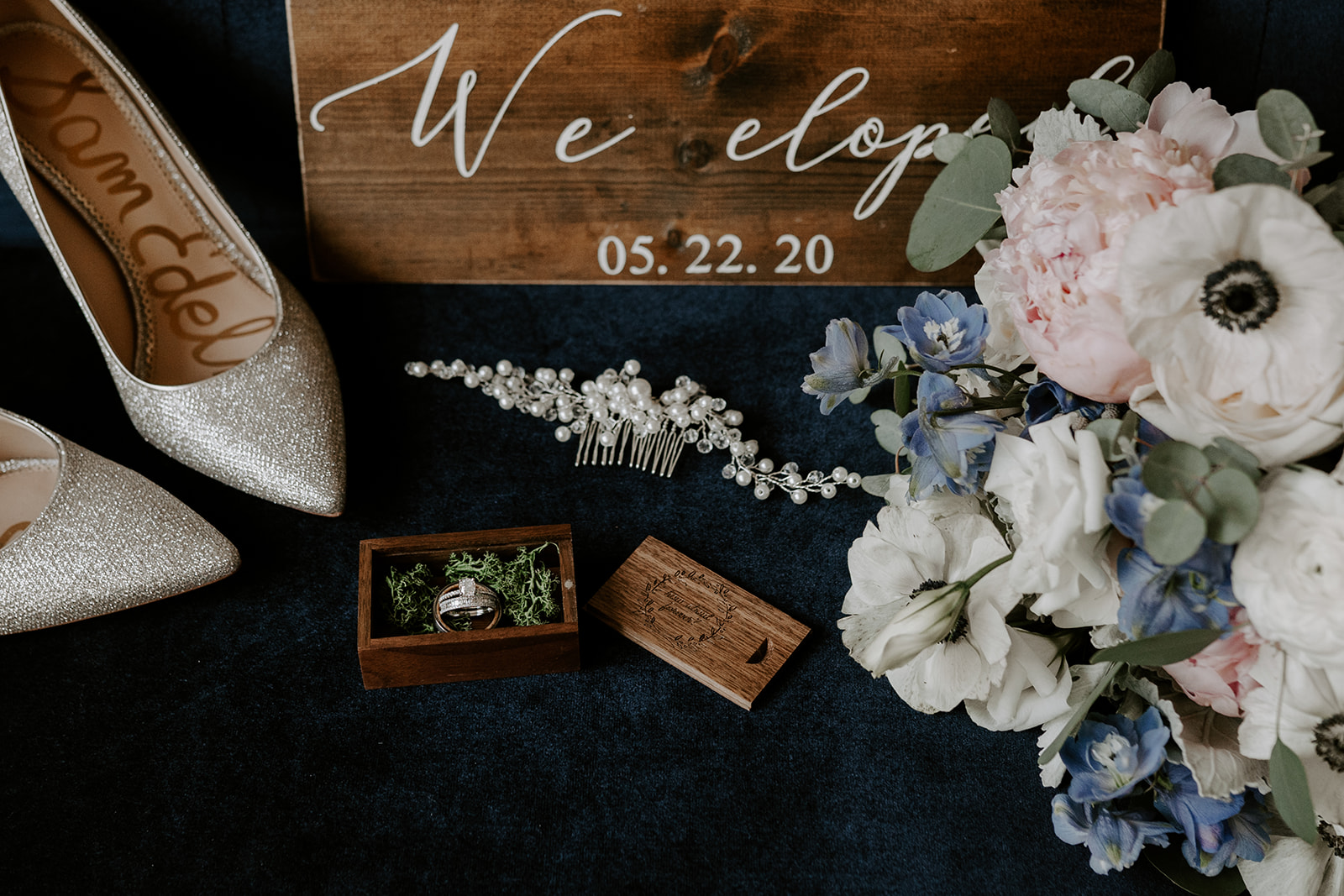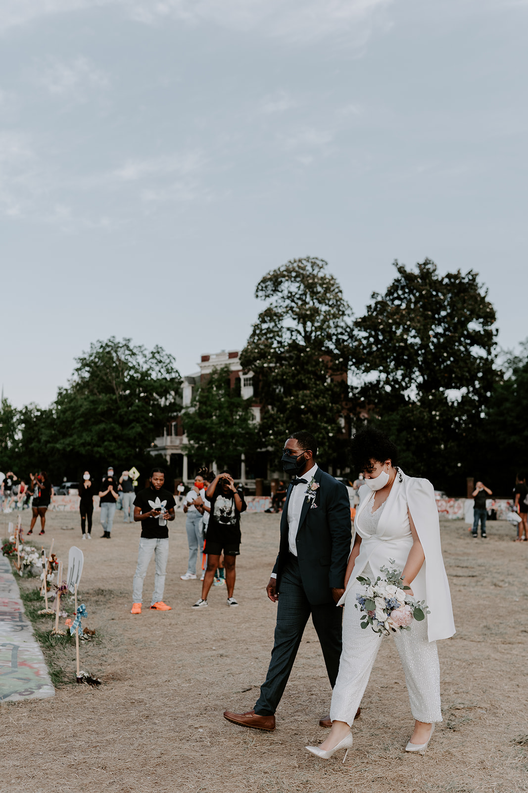 Andrea & Patrick streamed a simple and sweet virtual wedding at home this year, in the midst of the pandemic and the movement on Black Lives Matter. They had a lovely Virginia elopement, just the two of them and their pup, full of meaning and love. Andrea is a registered nurse, and Patrick a former nurse, so they made the decision to celebrate without their families and friends physically present, but that didn’t stop them from having a magical day. She says, “It was a tough decision, but the safest one we felt for our situation. The simplicity allowed for us to celebrate a quaint joining of hearts in a home we hope to keep for many years to come. We are ultimately just grateful to have the support of our loved ones at this time, and couldn’t bear the risk of jeopardizing their health and welfare for what we felt would be a glorified party.”