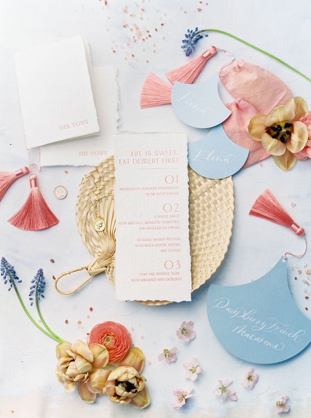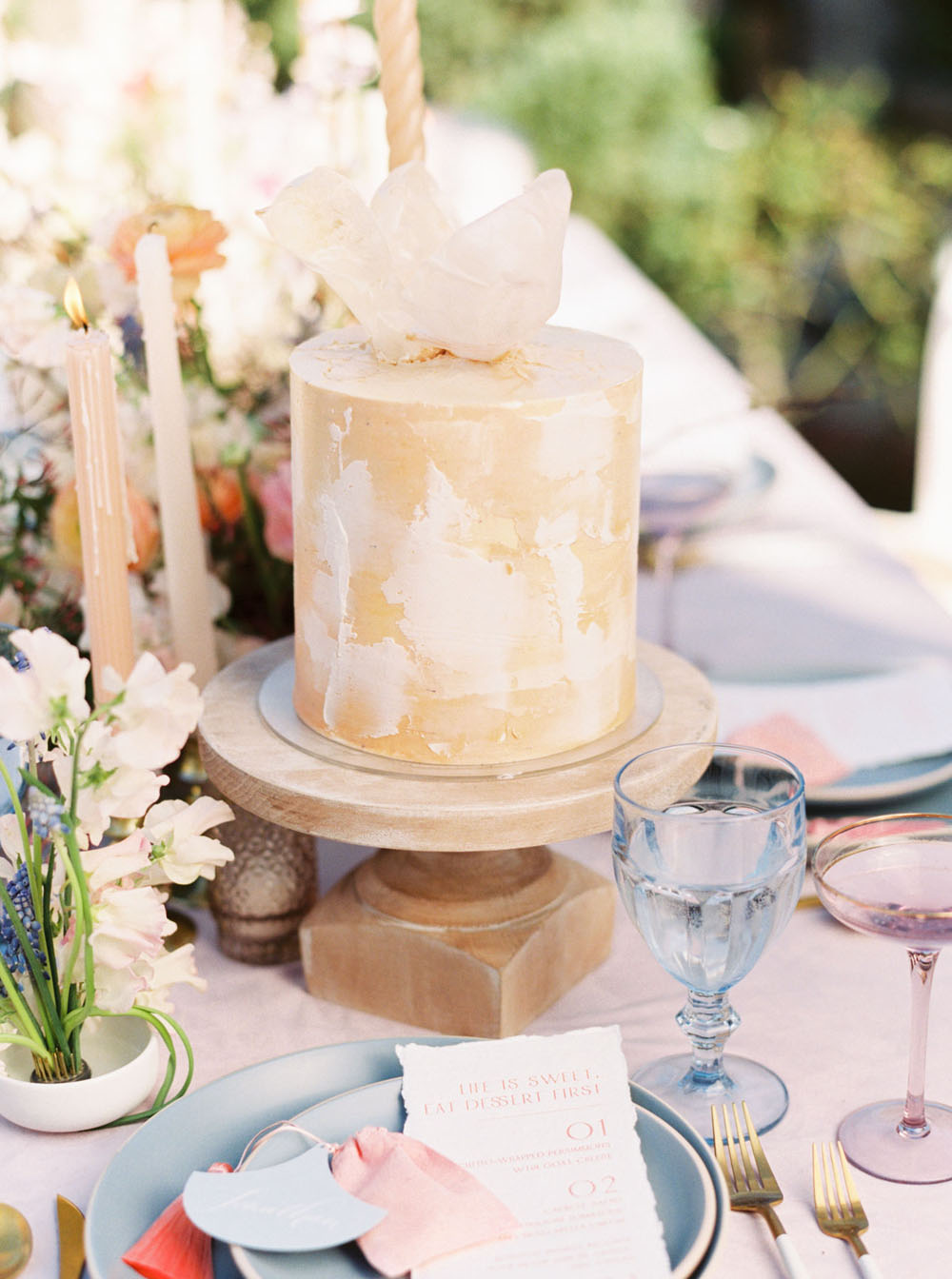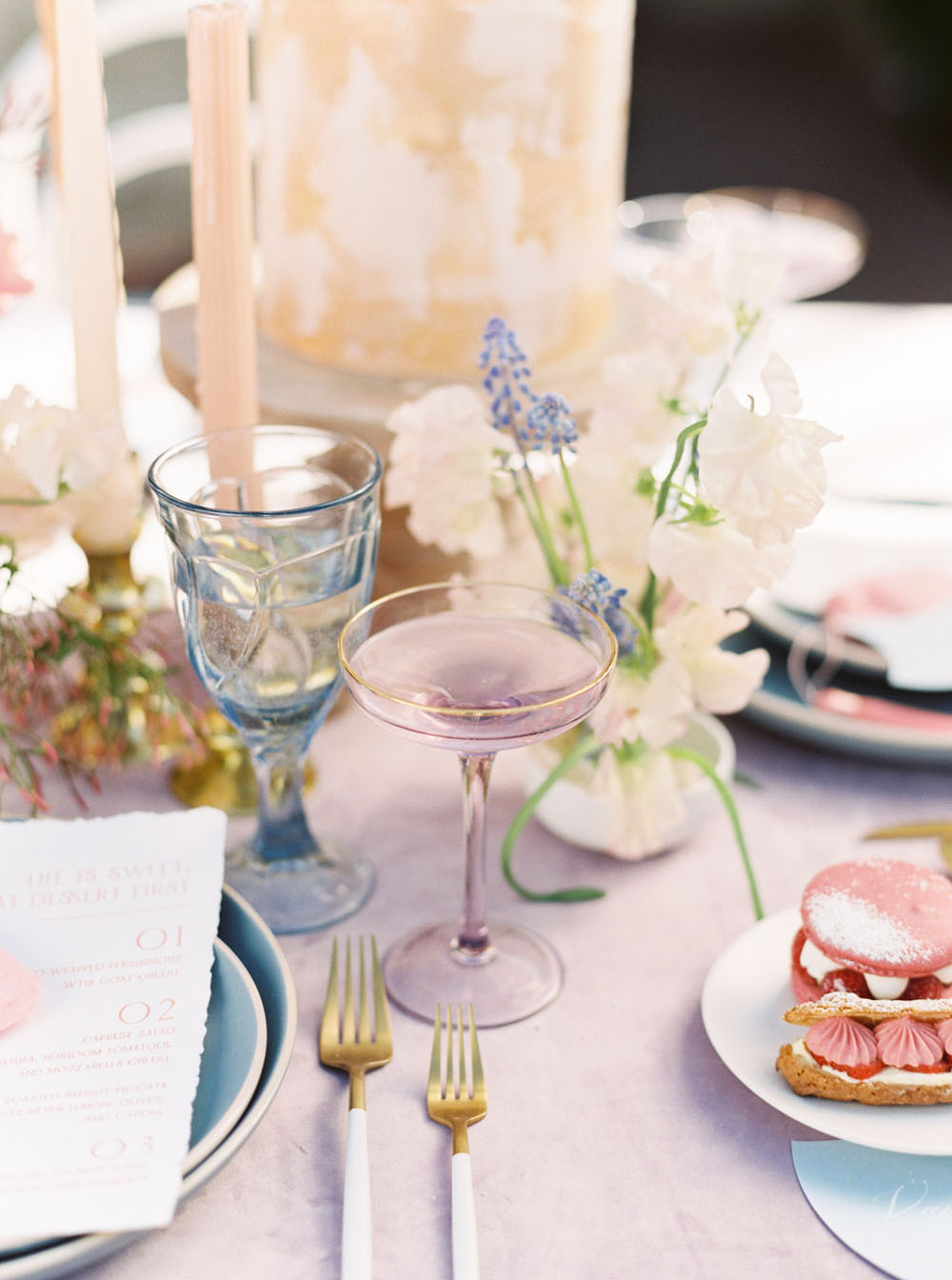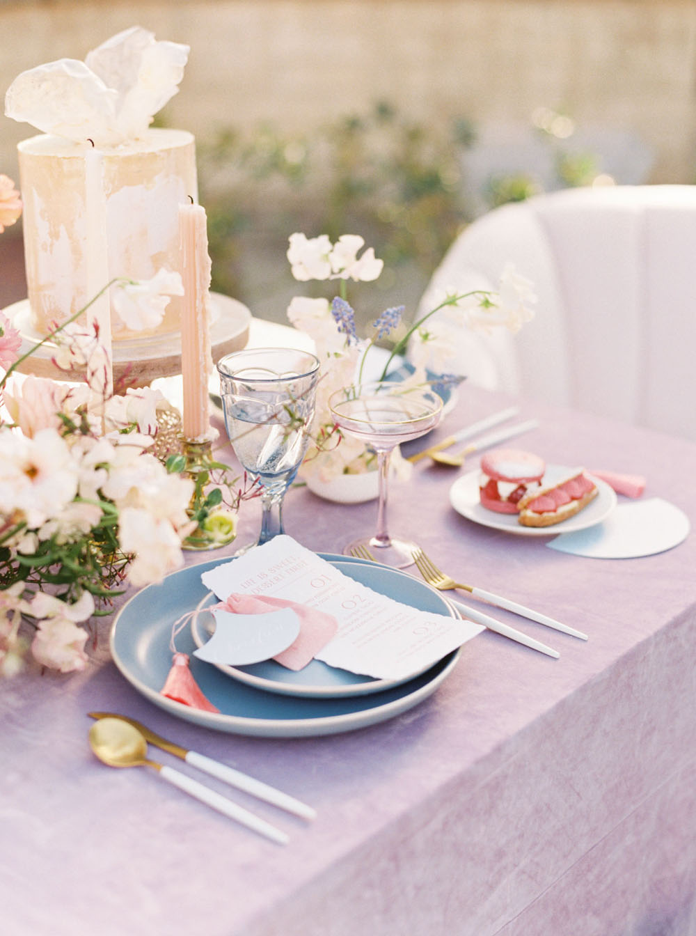 Did someone say dessert? This pretty pastel San Diego editorial coming to us from Cavin Elizabeth Photography and Southern House Events + Design makes sweets and candy colored hues the focal point of a romantic spring wedding at Balboa Park. With an interactive sweets display, gorgeous modern details, and two glamorous bridal looks, there’s a surprise at every turn…