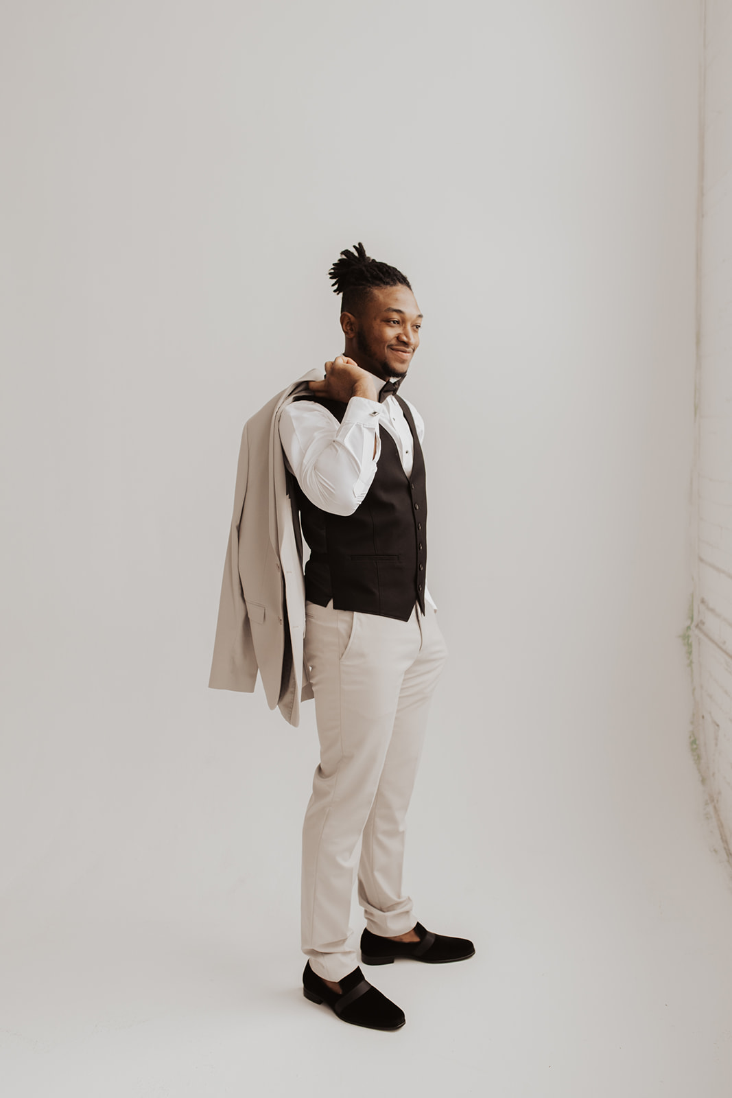 The groom’s unique looks all came from modern menswear brand Senso Uomo. Can you even pick a fave?!