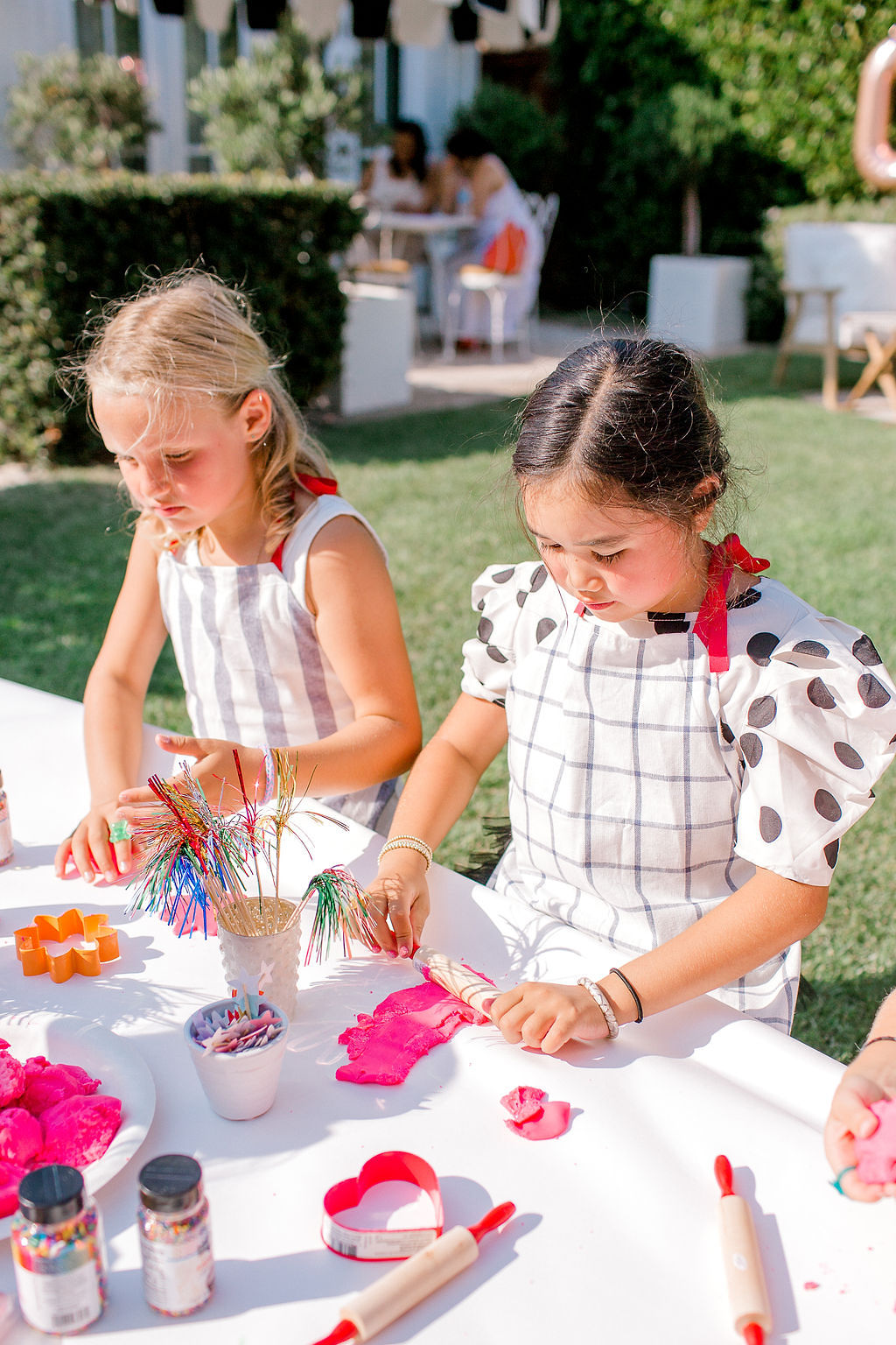 Bonjour, Cakies! This French Patisserie themed kids birthday from Harper & Grace and Deets + Things is a total dream for the little baker in your family–and in this case, two! It was a joint birthday party for sisters turning 7 and 8, and each guest got to decorate her own petite cake to take home from their bakery shop set up. Is it just us or does that sound so super fun?!