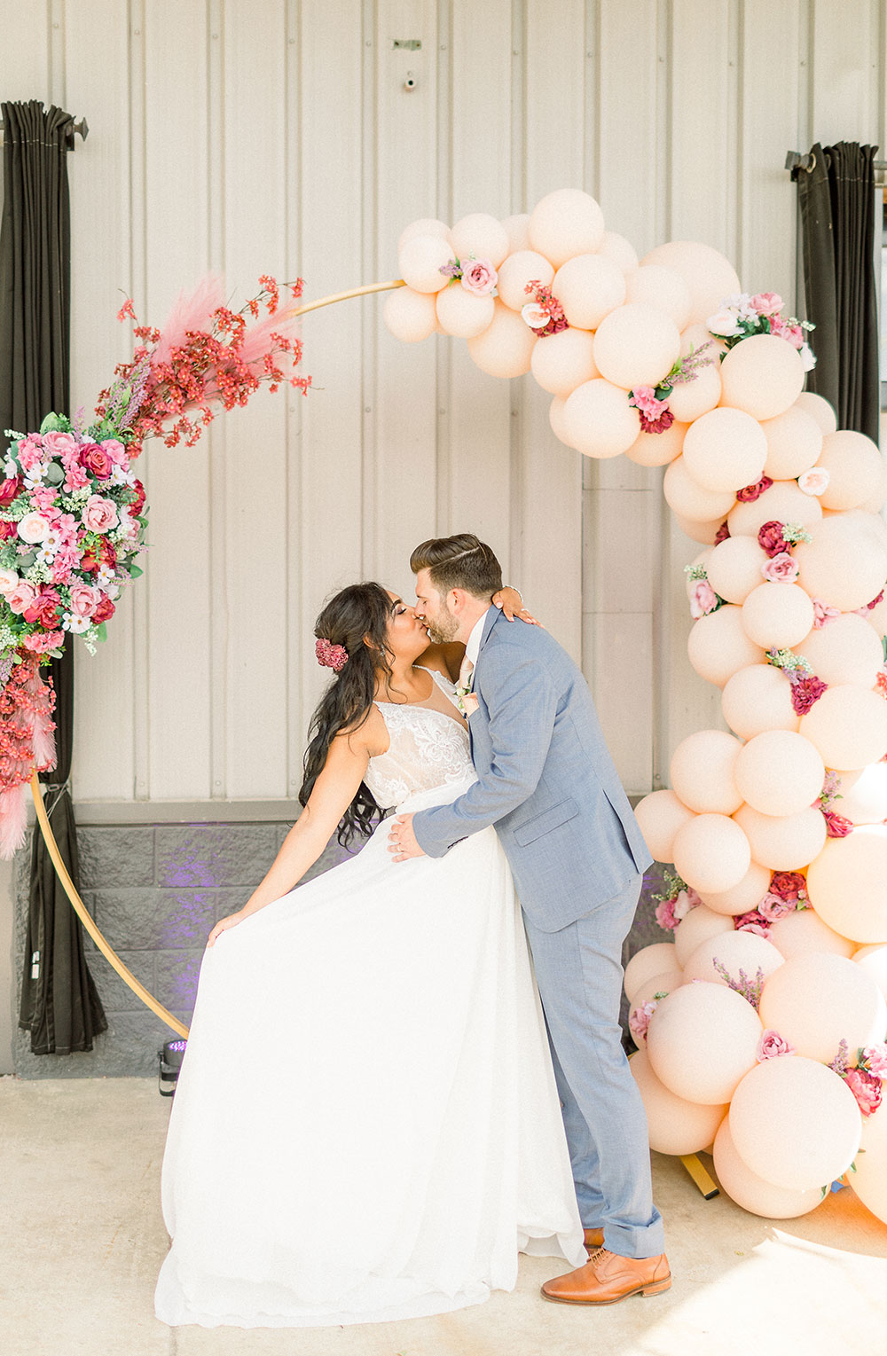 Balloon Installation: Trinity Inspired Events | Catering: Events with Taste | Charcuterie: Olive + Oak Charcuterie | Day of Coordination: She Persisted Events | Donut Bar: Tasty Donuts | Dessert Bar: Lu Lu Liquor Cakes | DJ: Party Time Productions | Event Rentals: ShowTime Event Rentals | Floral & Event Design for Ceremony Backdrop + Flower Truck + Tables 3 + 4: Joli Jardin Farm | Floral & Event Design for Head Table + Tables 1 + 2: Cue the Champagne Event Planning and Design | Floral & Event Design for Personal Flowers + Tables 5 + 6: The Flower Carte | Hair & Makeup: TONE Hair + Makeup Studio | Menswear: Giorgio’s Men’s Warehouse | Mobile Bar: The Mane Pour | Photo Booth: Photo Drop | Photography: Styled and Snapped, Ashlea Snell Photography, & Sarah Larae Photography | Signage: Katie Vehr Calligraphy | Venue: The Peyton | Videography: Party Time Productions | Wedding Dress + Bridesmaid Dresses: Vow’d Weddings | Wedding Cake: Sierra’s Cakewerks | National Travel Partner: Taylor & Co. Travel