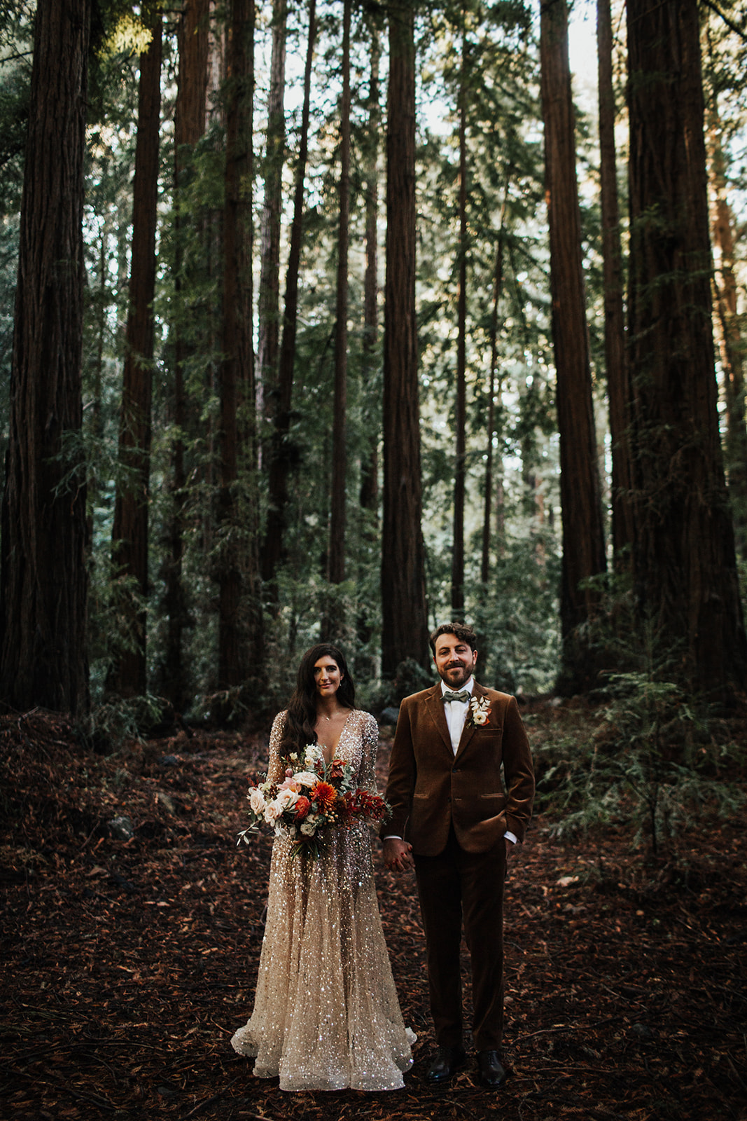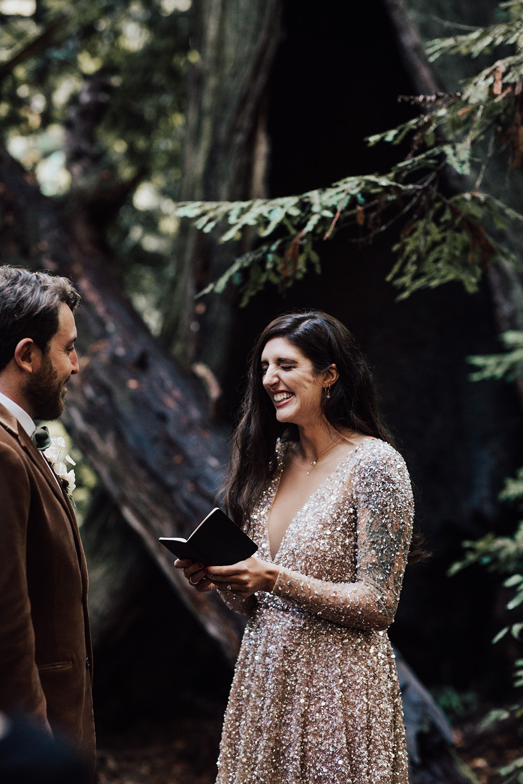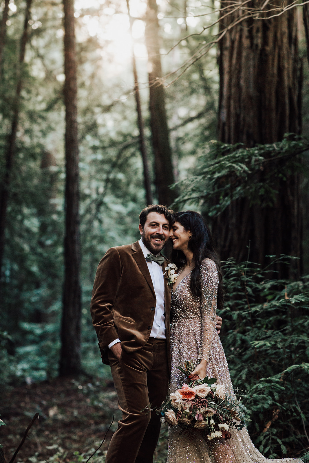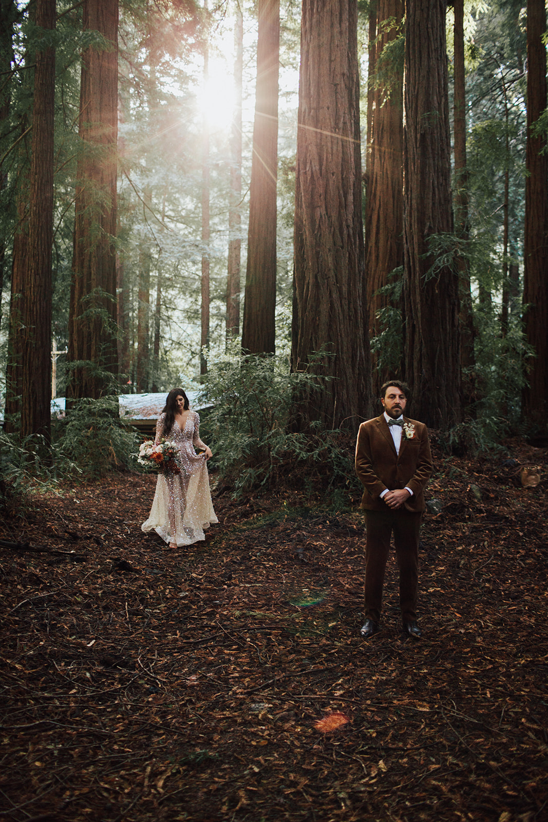 For the ceremony amongst the red woods, it was just them and four of their closest friends and family, who co-officiated.