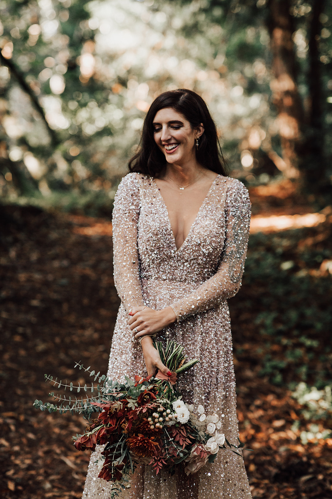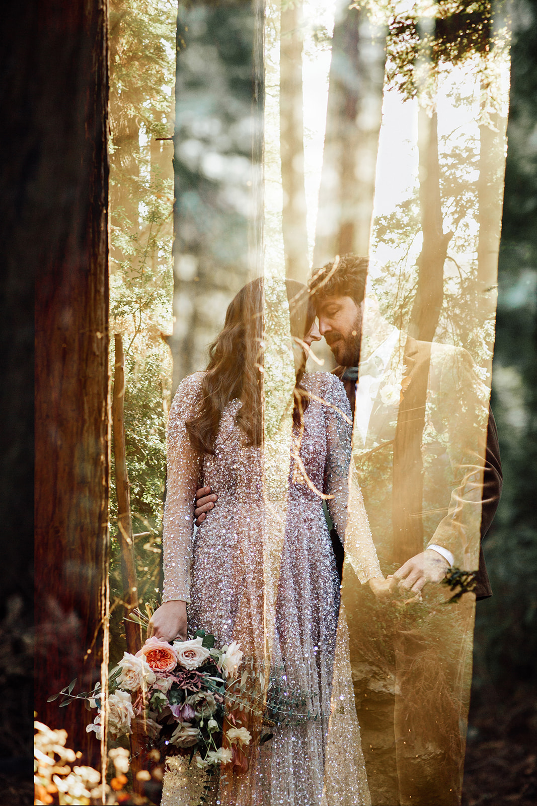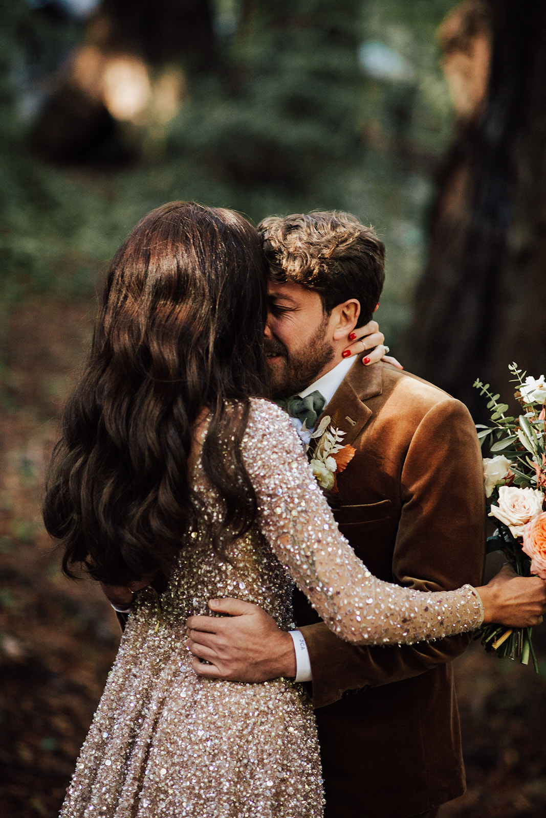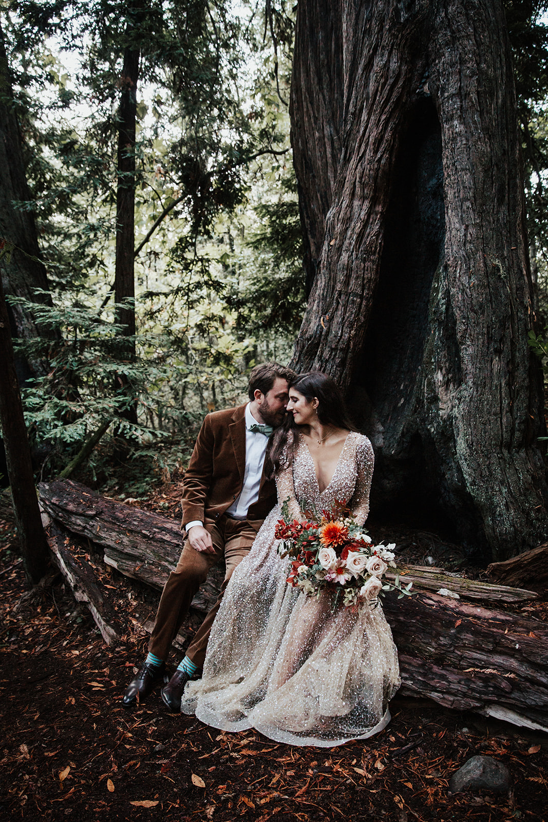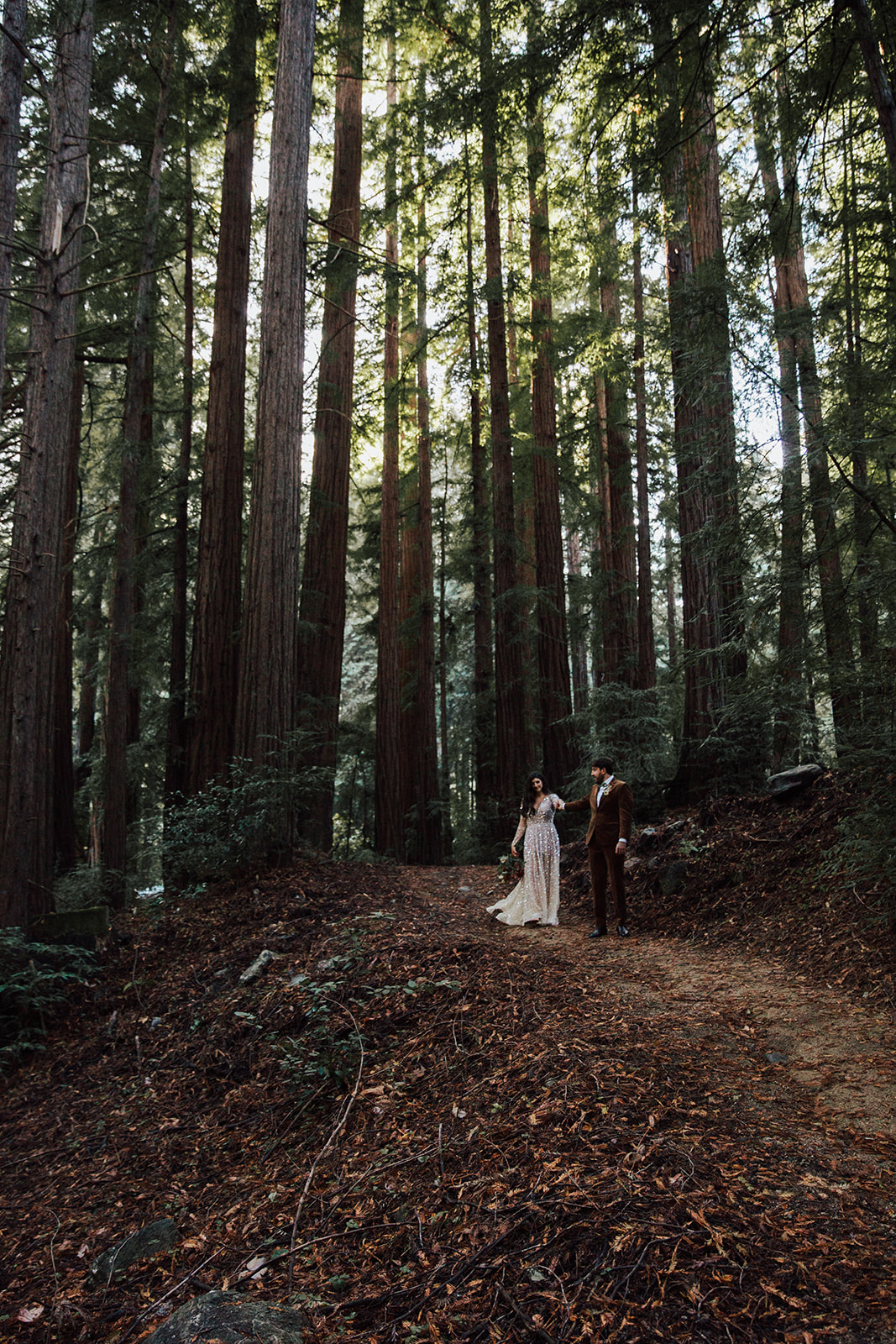 For the ceremony amongst the red woods, it was just them and four of their closest friends and family, who co-officiated.