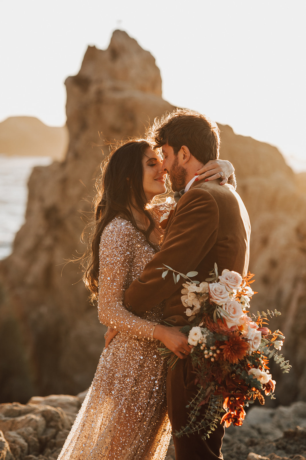 From their photographers… Brie and Josh’s love story all started on a chilly evening in Los Angeles where they shared a round of whiskey and the rest was history. These two’s love is undeniable and runs deep. They share a radiant reality with one another where it feels as if their spirits are dancing alongside each other while embracing their shared beauty of life and love that they have; especially when they are together. These two beautiful souls seek adventure, partnership and the outdoors. So it made complete sense that once they stepped foot onto Big Sur soil that they knew within their hearts that this was the place that they would decide to be each other’s forever.