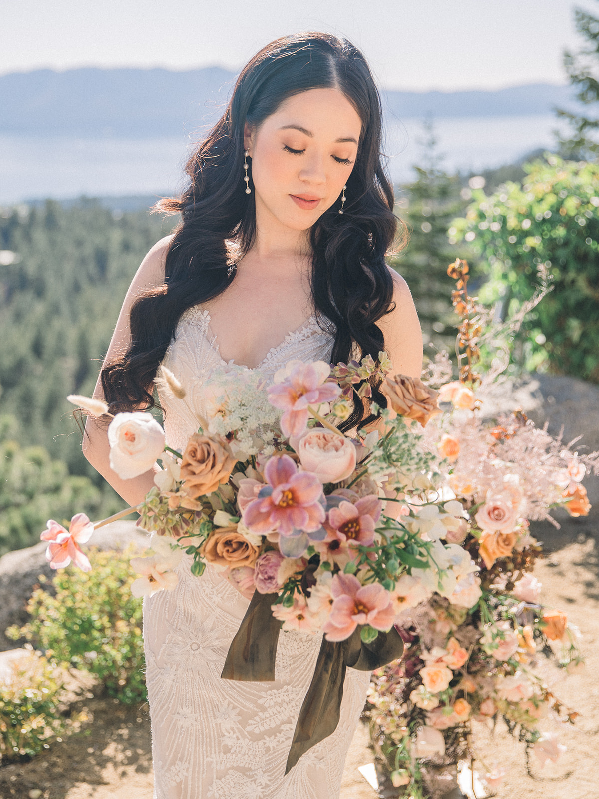 We all know how gorgeous Tahoe is, right? And for a romantic boho wedding? If you can snag a venue like the Tahoe Blue Estate, a 9,000 sq ft home nestled on top of a cliff overlooking South Lake Tahoe, you’re in for the dreamiest I Do. Curated by Grace and White designed a beautiful ceremony, cocktail party, and dinner that perfectly melds modern boho vibes with utter sophistication. Keep reading for more deets among the photos by Lauren Alisse Photography: