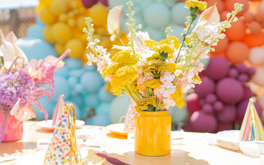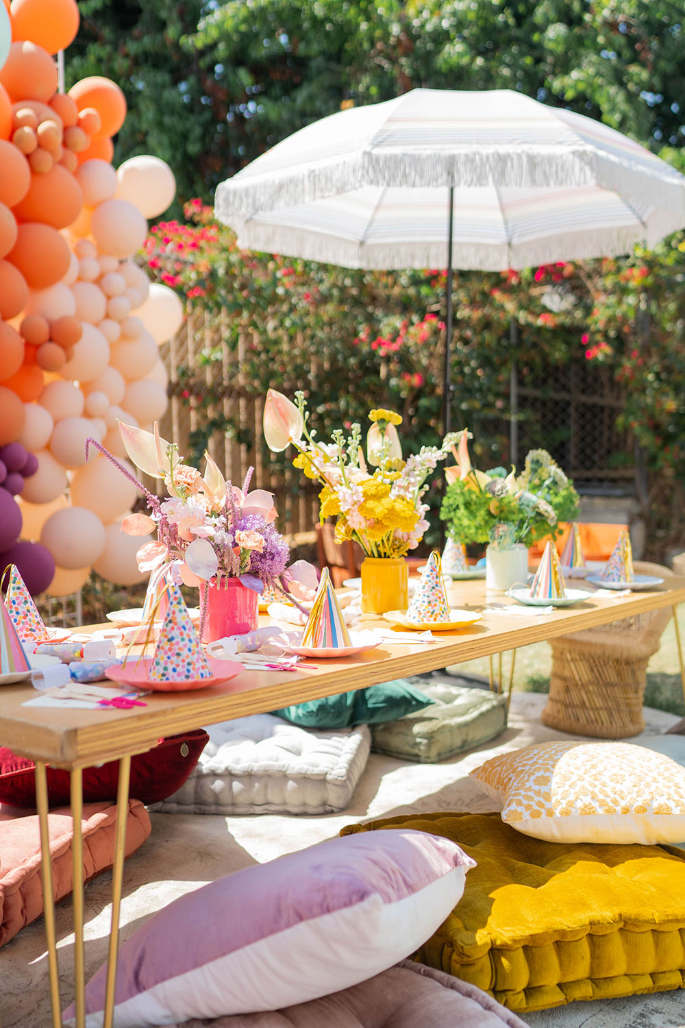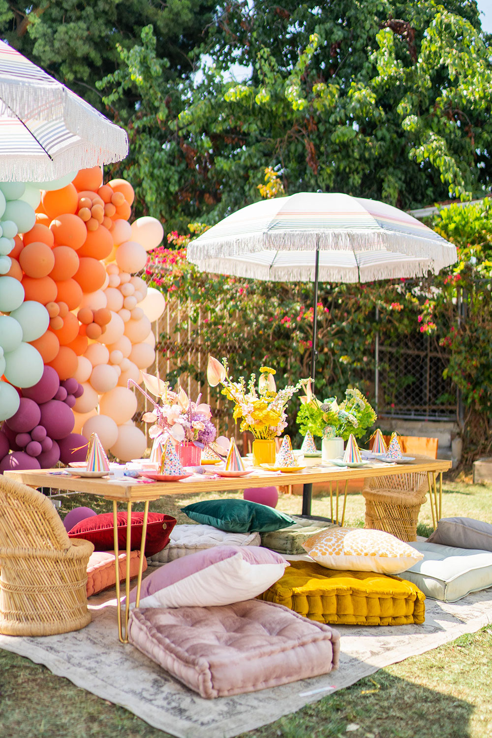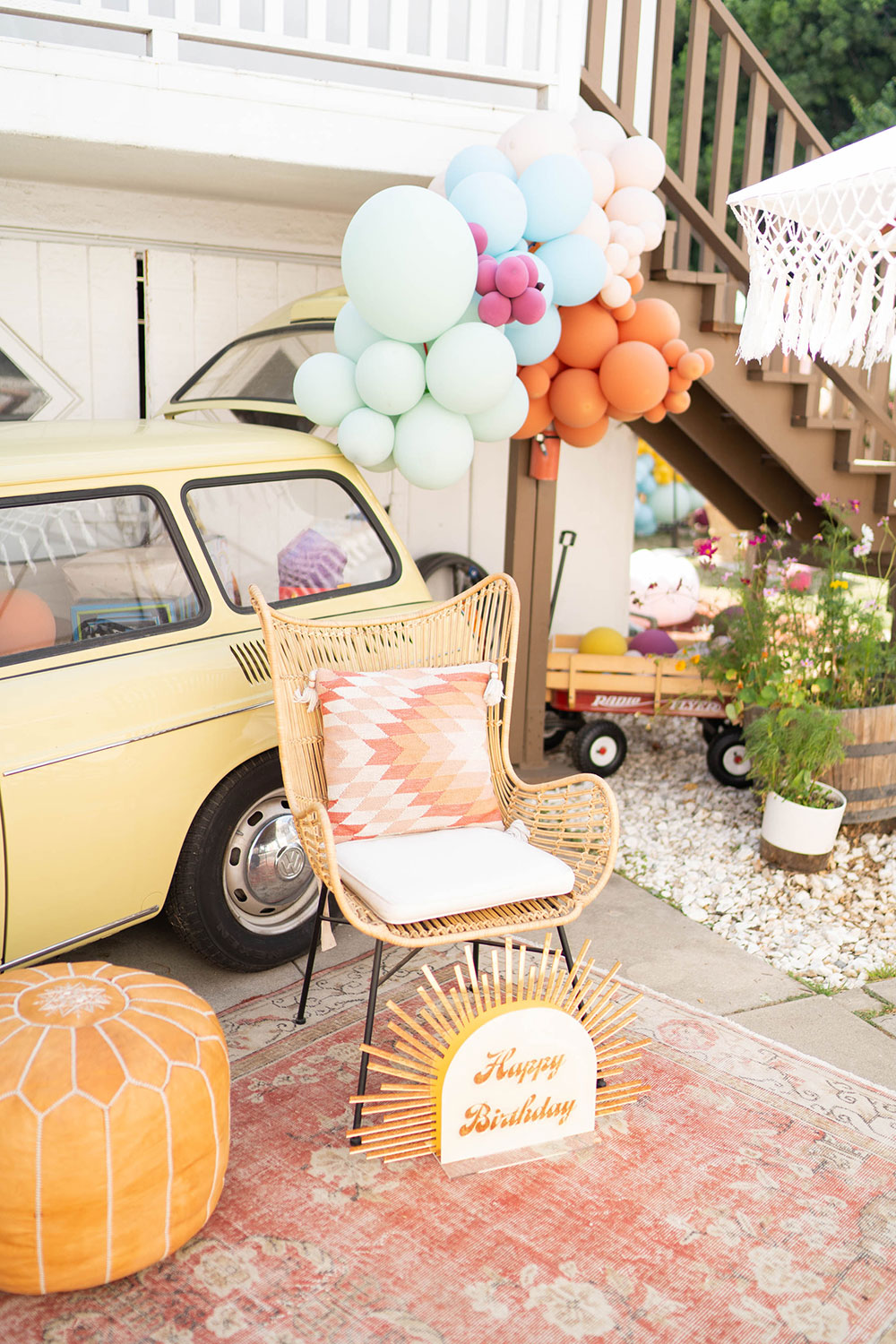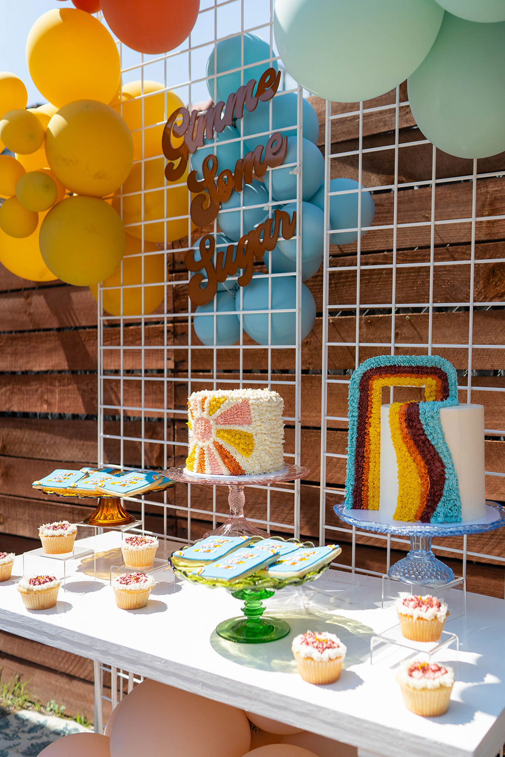 Planning a fête for your little one? This cute 2nd birthday for little Poppy Rose followed a sunny, vintage-y 70s inspired theme with *the* sweetest retro vibes, from the “grow with love” backdrop to the vintage VW to alllll the bright balloons. See below for the whole party by Fig & Whiskey and J Gray Photography: