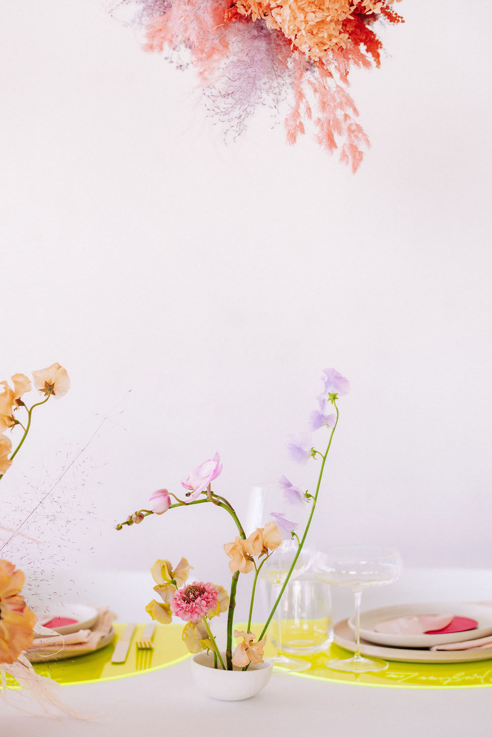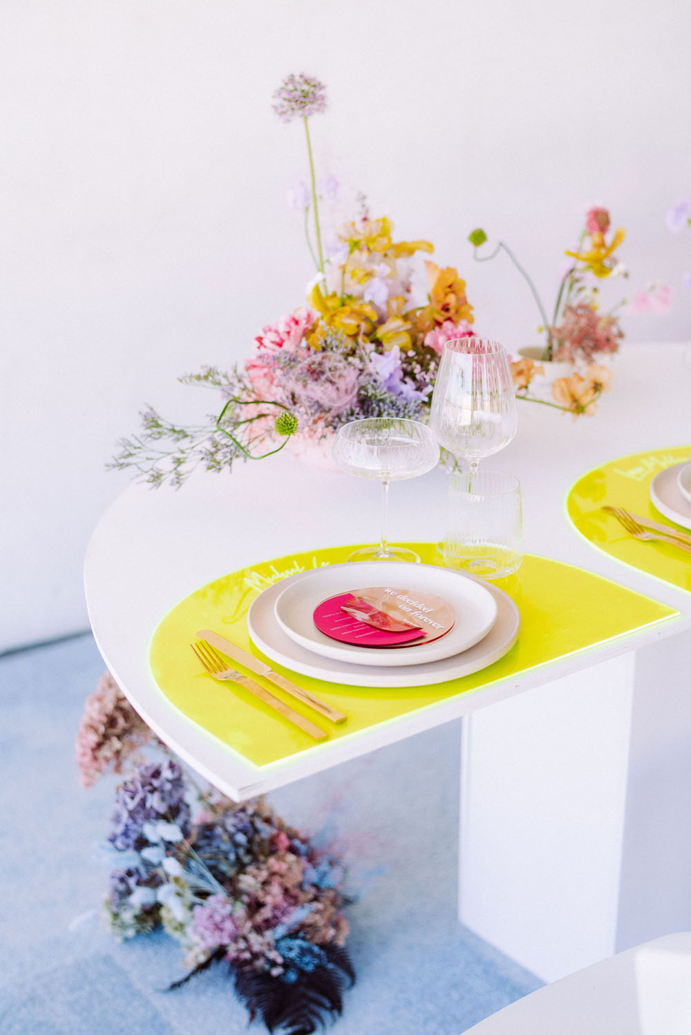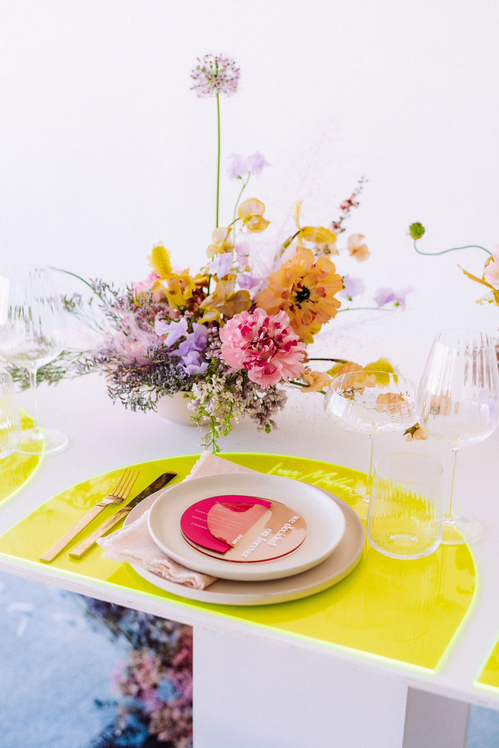 We created this editorial to highlight each vendor’s true originality and their interpretation of color in design. This is all about pushing the design envelope and saying yes to color in all the right ways for any wedding, event, or intimate dinner party. When designing for a client, I always want to create a space that creates a feeling and for this editorial, I wanted it to scream fun and high energy.
