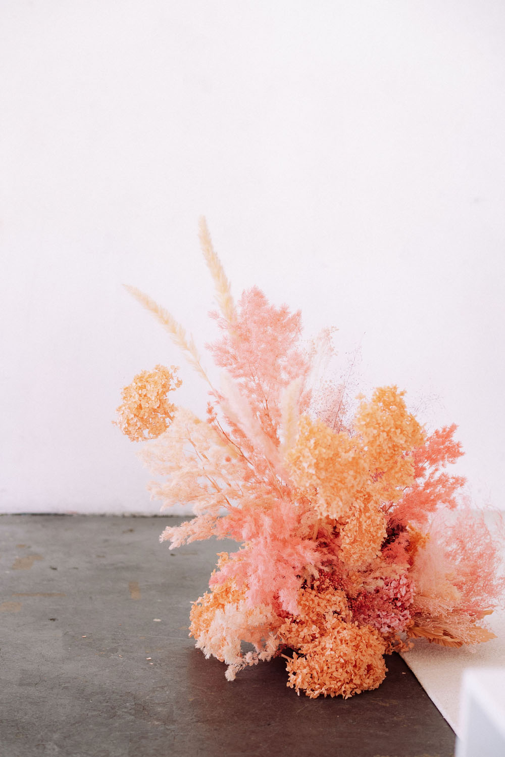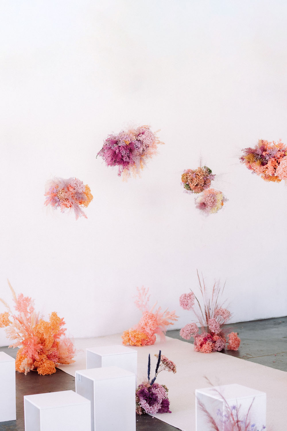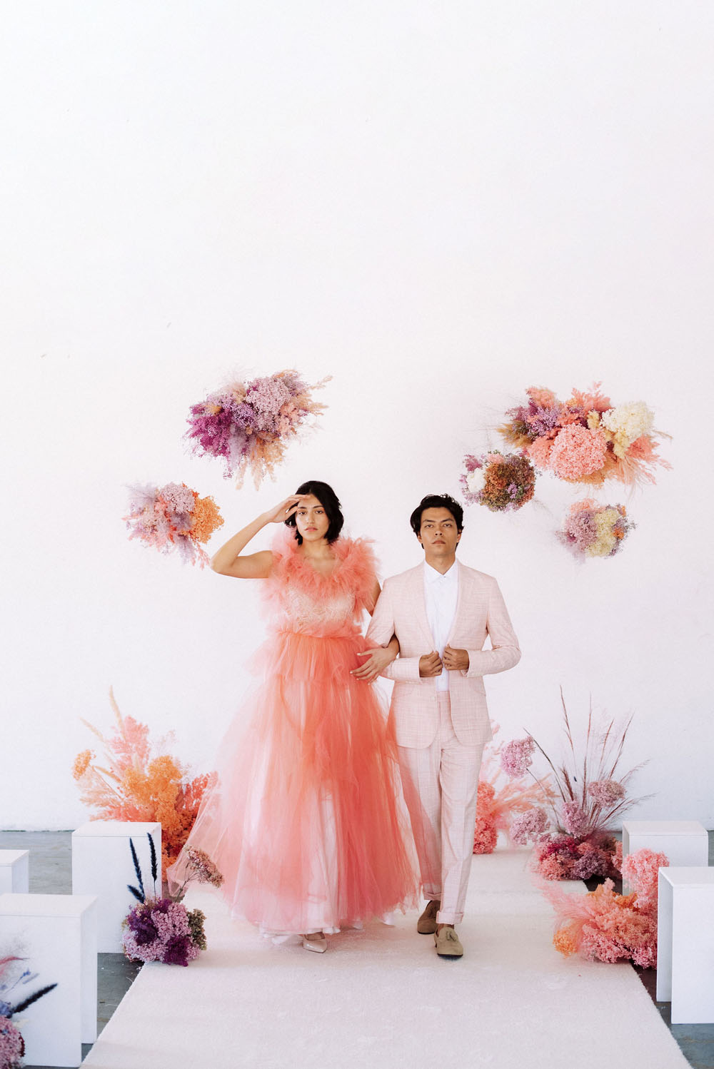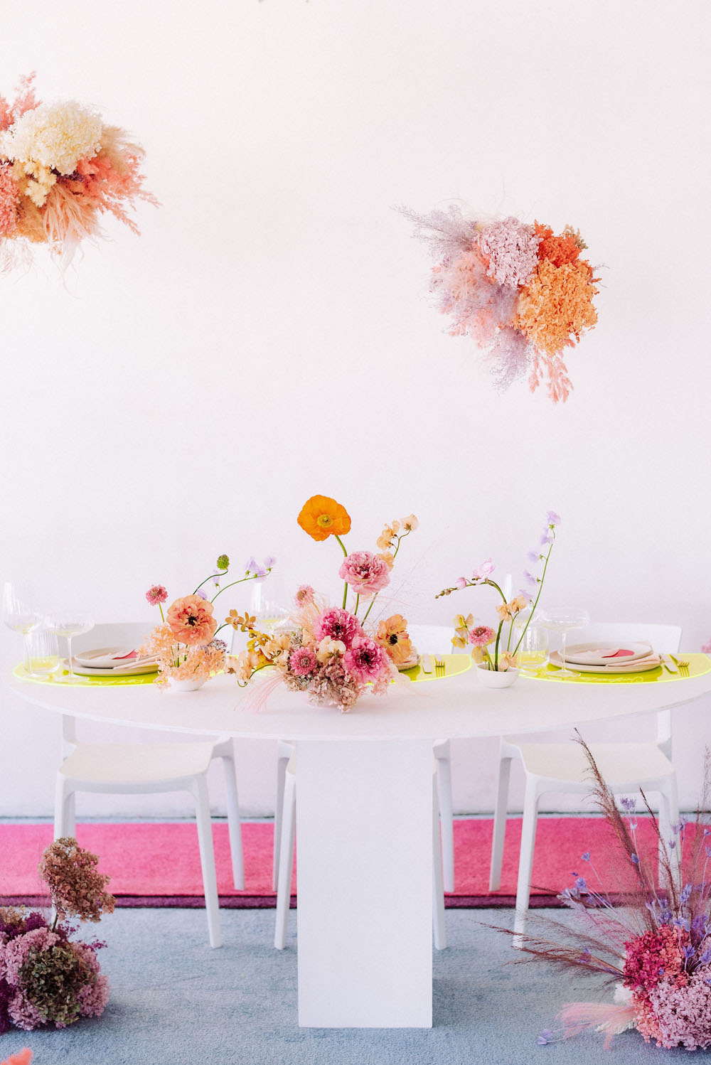 Bright and poppy wedding inspiration with dried florals and colorful dresses