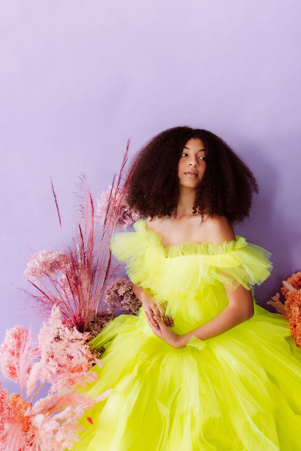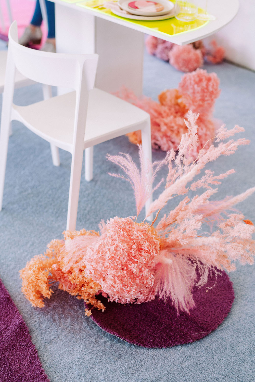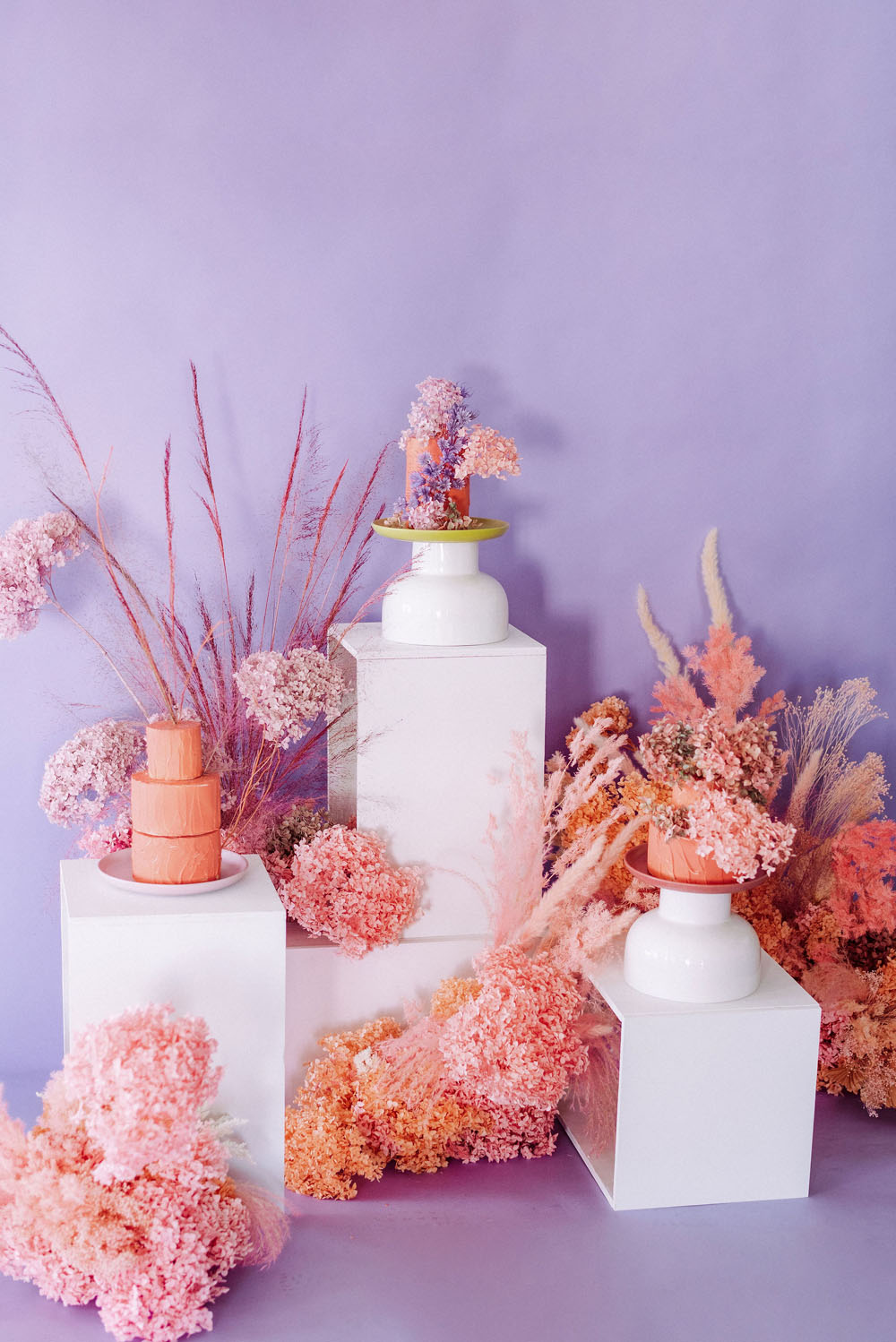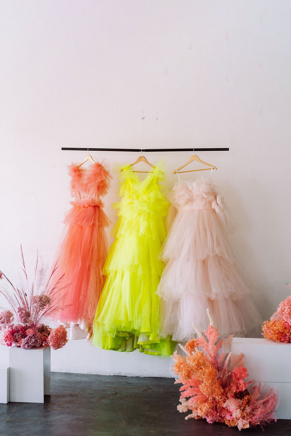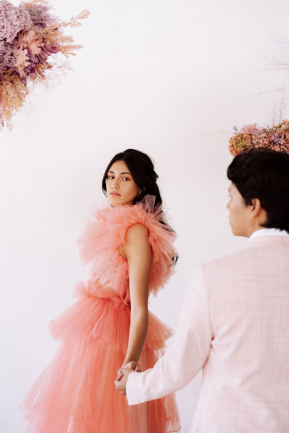 Bright and poppy wedding inspiration with dried florals and colorful dresses