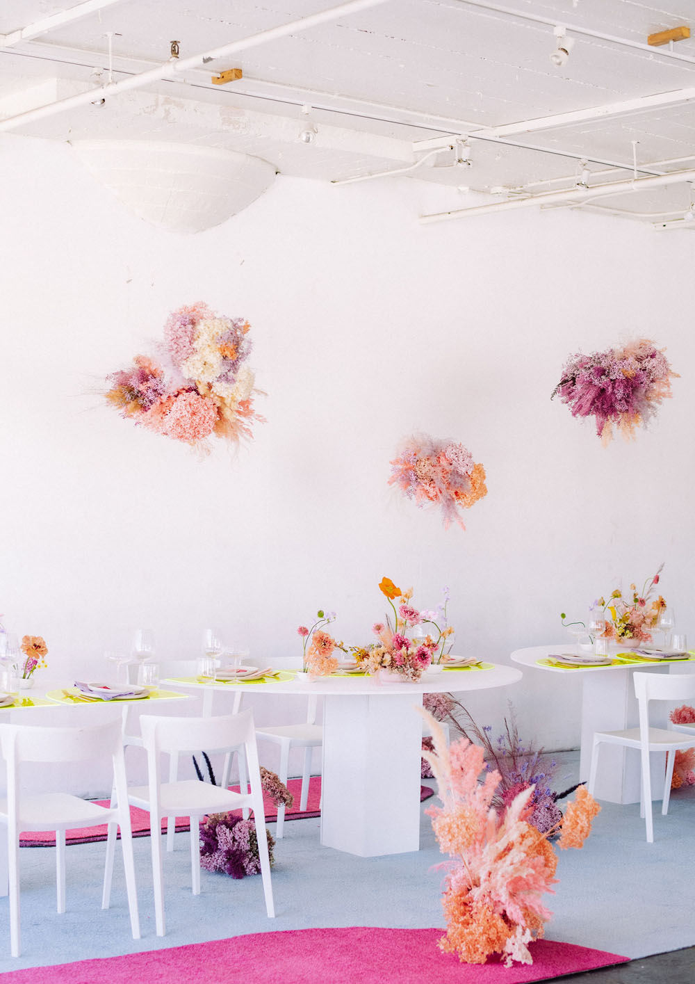 Pro tip: Utilize the space above and below for floral arrangements to add an unexpected element to the space while keeping tabletops minimal and open.