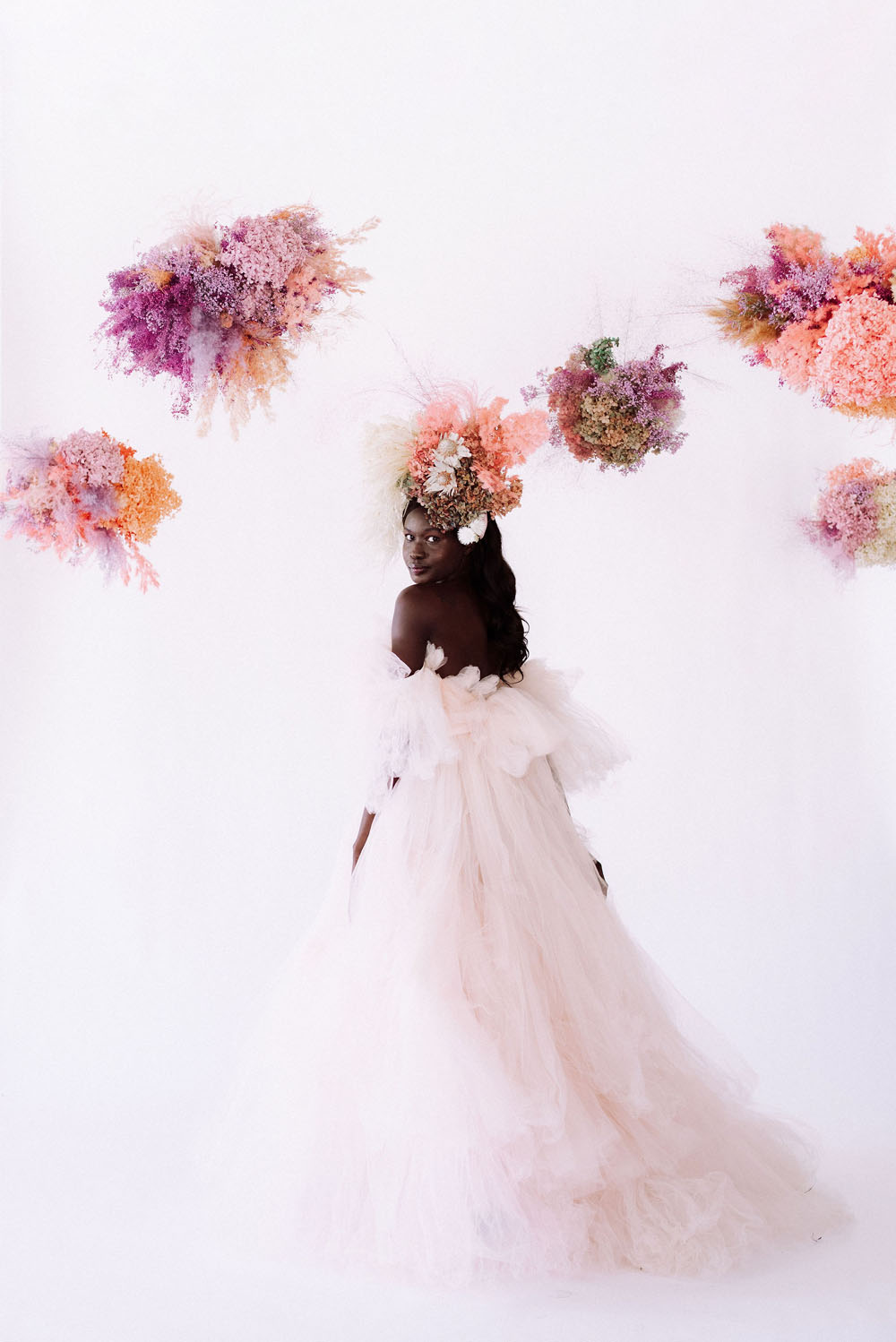 This editorial, you guys. Electric colors, flowers floating like clouds, tulle on top of tulle. It’s a feast for the eyes! Even if you only sprinkled *a few* of these super fun details into your own wedding design, you’d be taking things to a whole new level. Thanks to this creative dream team, Array Creative DesignGoing Steady Studios, and photographer Eden Strader, our Pinterest boards are more inspiring than ever.