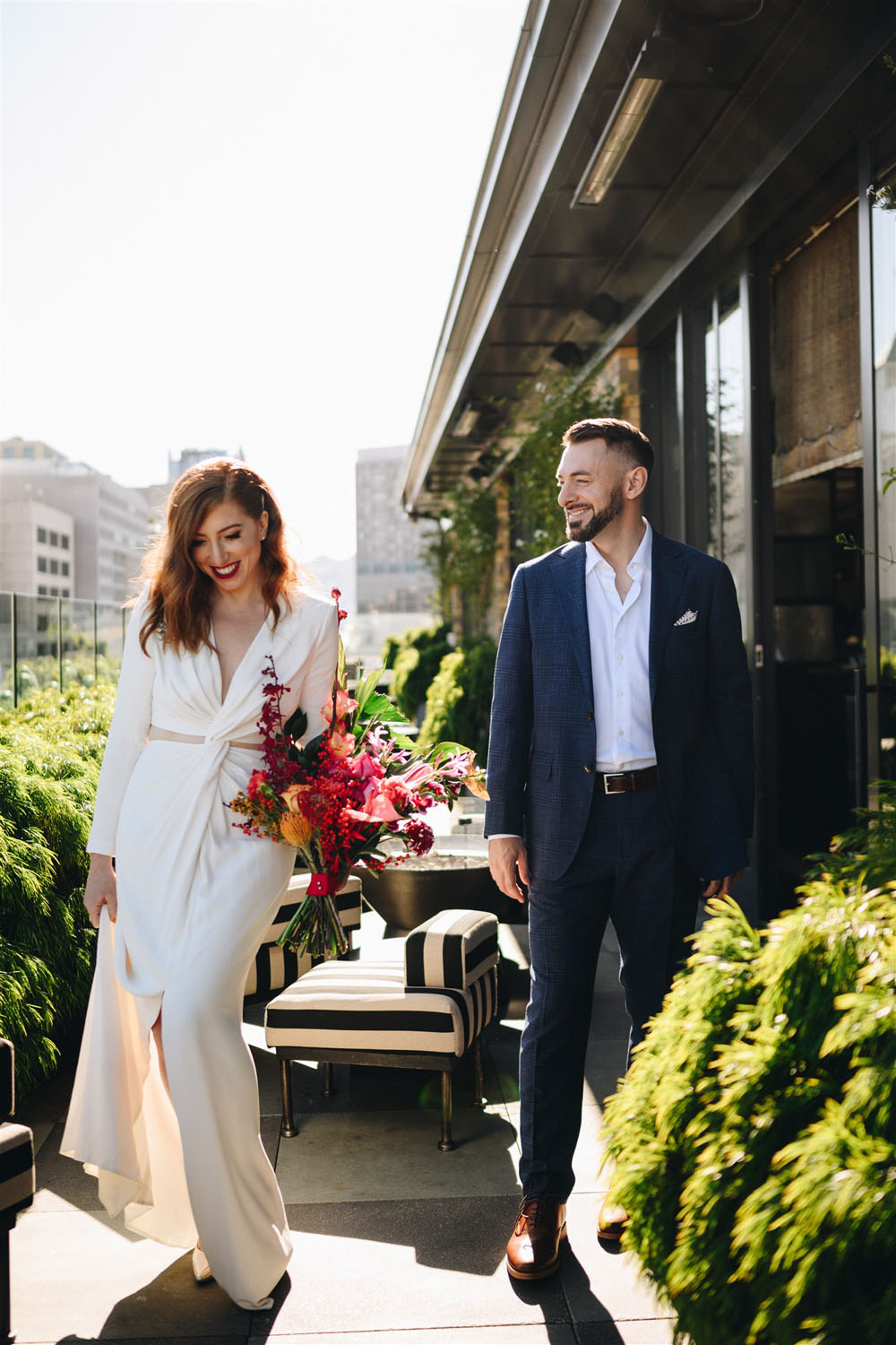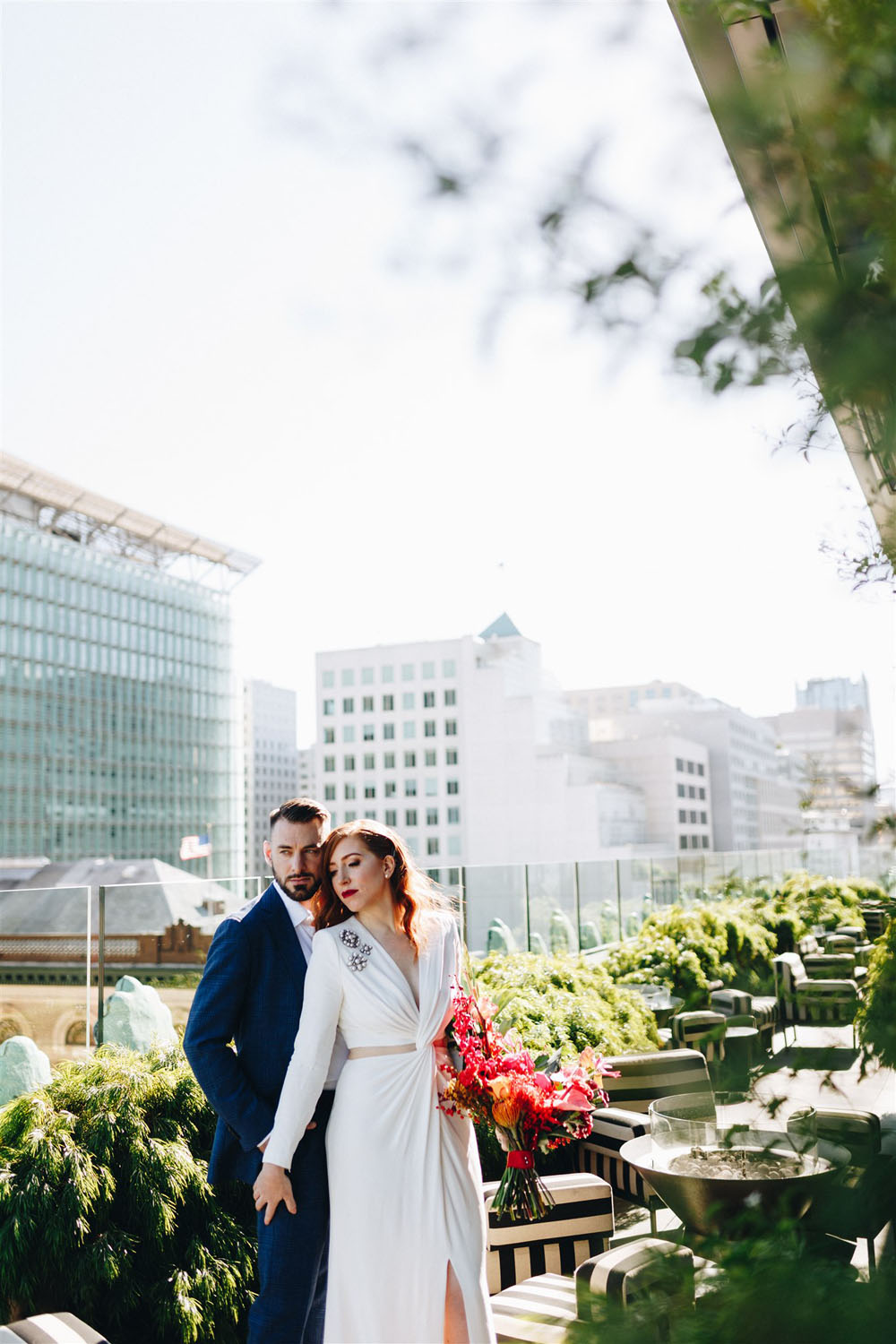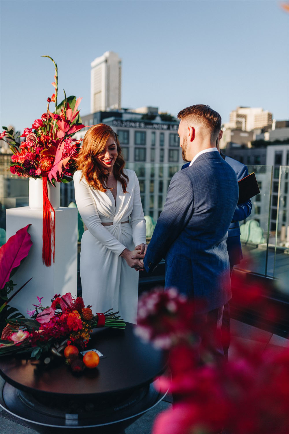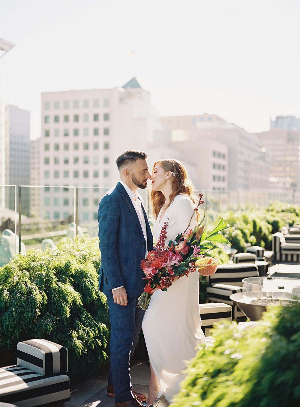 One more day and it’s onto February, can you feel the temps rising already? We’re channeling warmer days with this modern rooftop wedding at the trendy San Francisco Proper Hotel. For their wedding, Jacob and Jessica let the ultra cool venue speak for itself, adding just a few stylish touches like vibrant blooms from Saint Flora and a sleek Alexander McQueen gown. Find more photos Cheri Tran Snaps shared below!