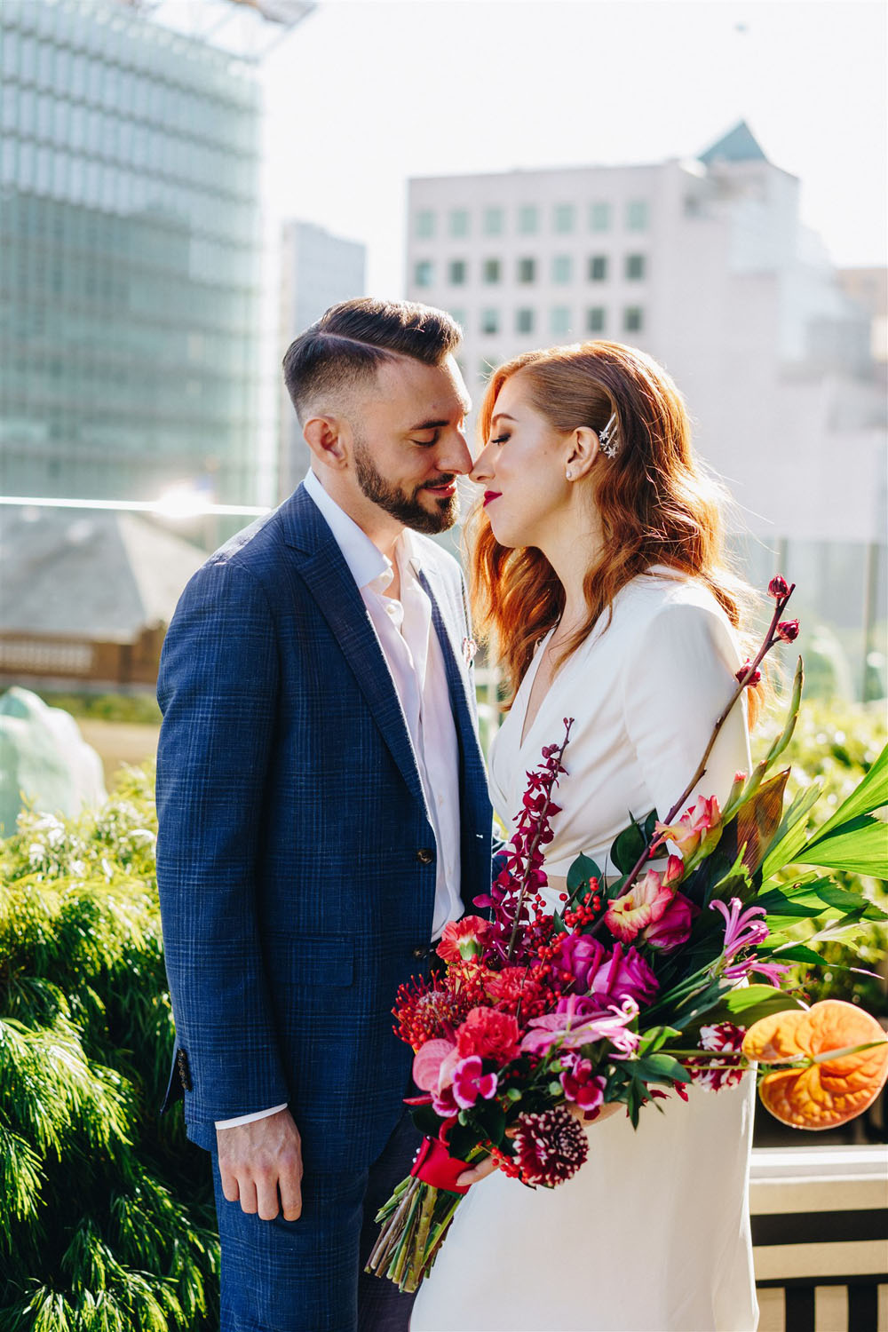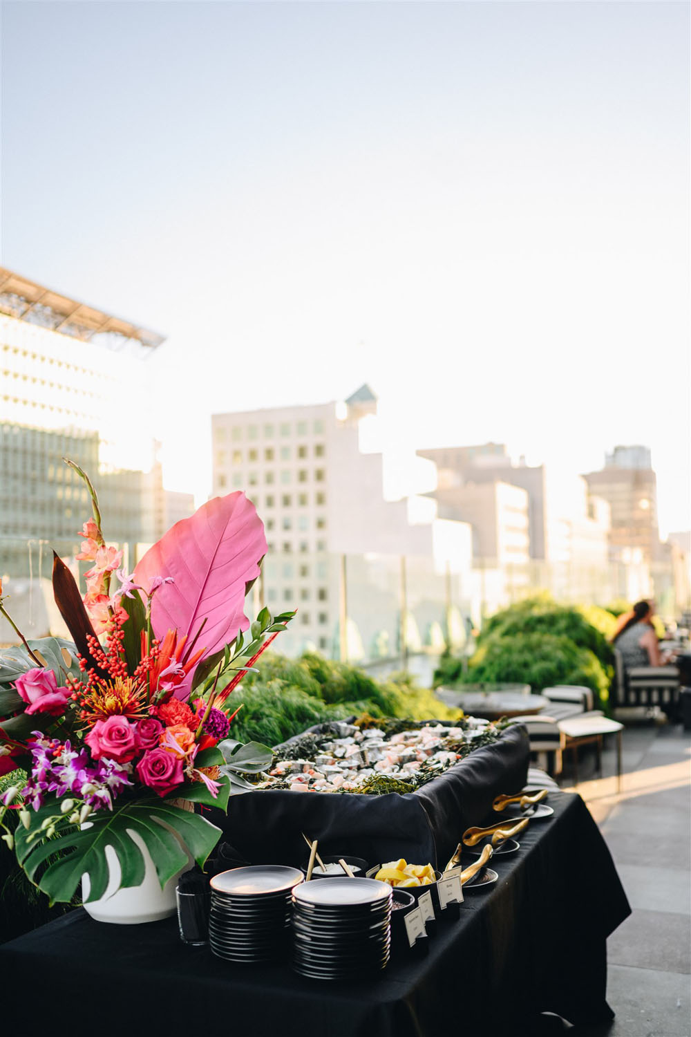 There’s those floral arrangements we mentioned… Fun to see a few tropical vibes mixed into a city wedding!