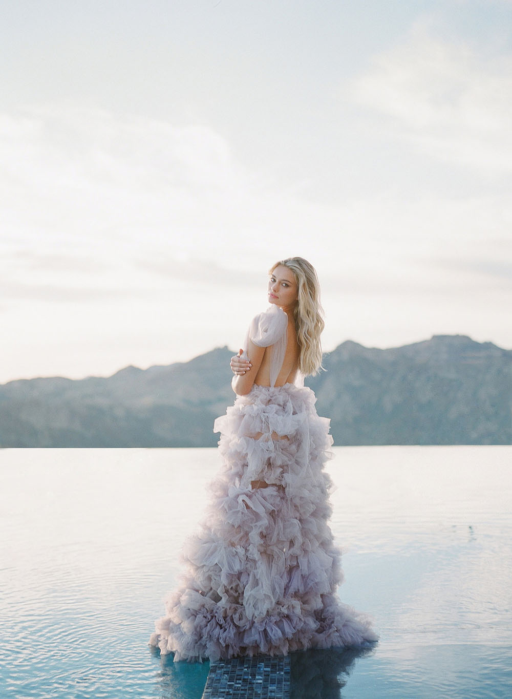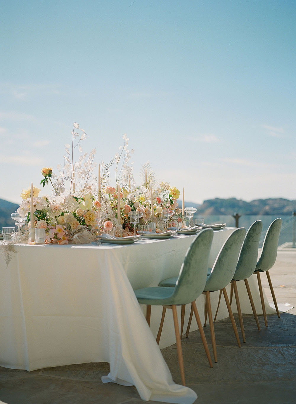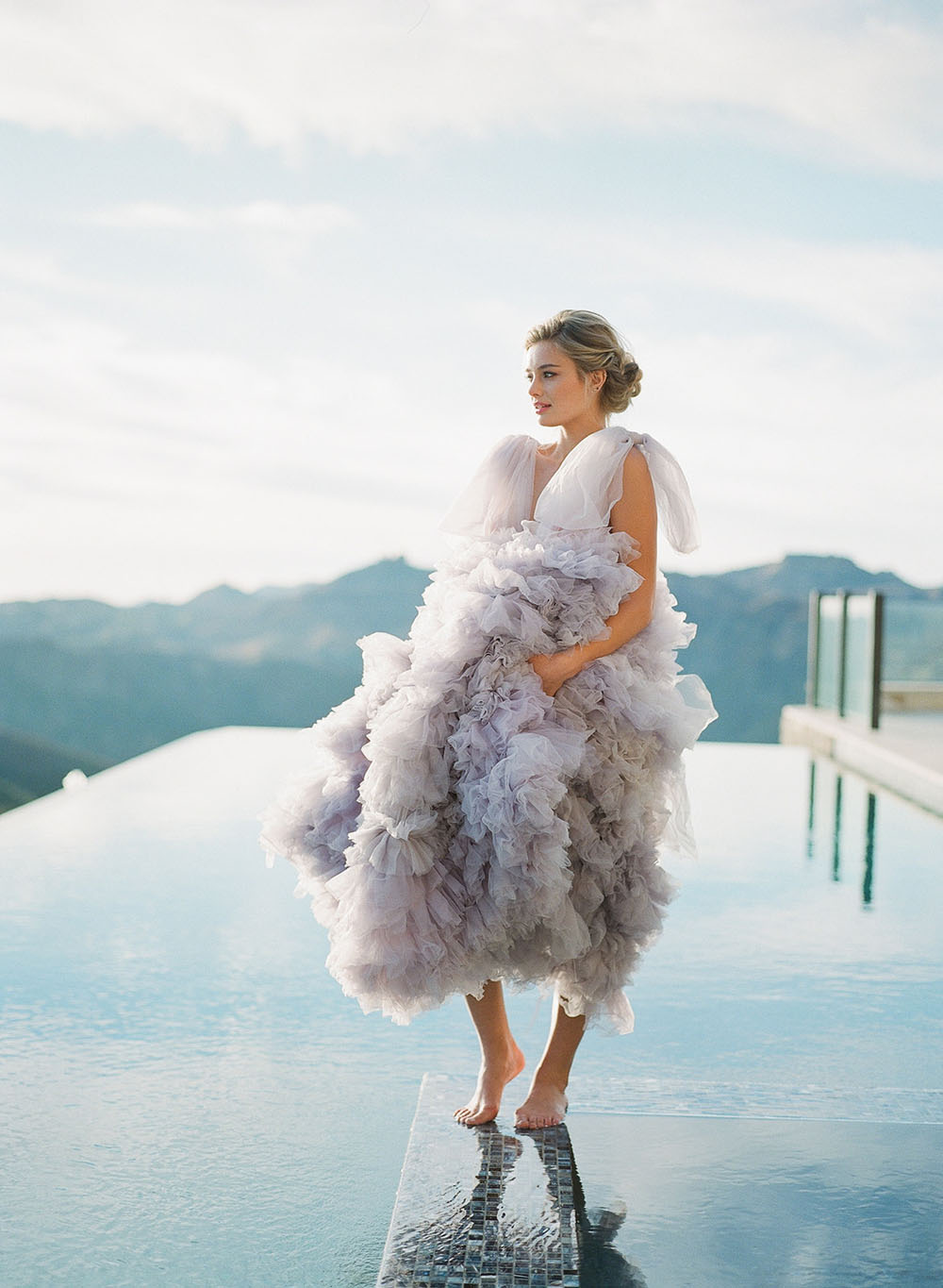 If you’d describe your dream wedding dress as fluffy, ruffly, and light as air, then the colorful Millia London gowns in this Malibu Rocky Oaks editorial will fit right in with your mood board. (And while you’re gathering inspo, this and this gown are two other stunners worth a perusal!) Somni Events set up two scenes for Jeremy Chou Photography and Robert Michael Films to capture, complete with a dreamy tablescape and floral ceremony to match.