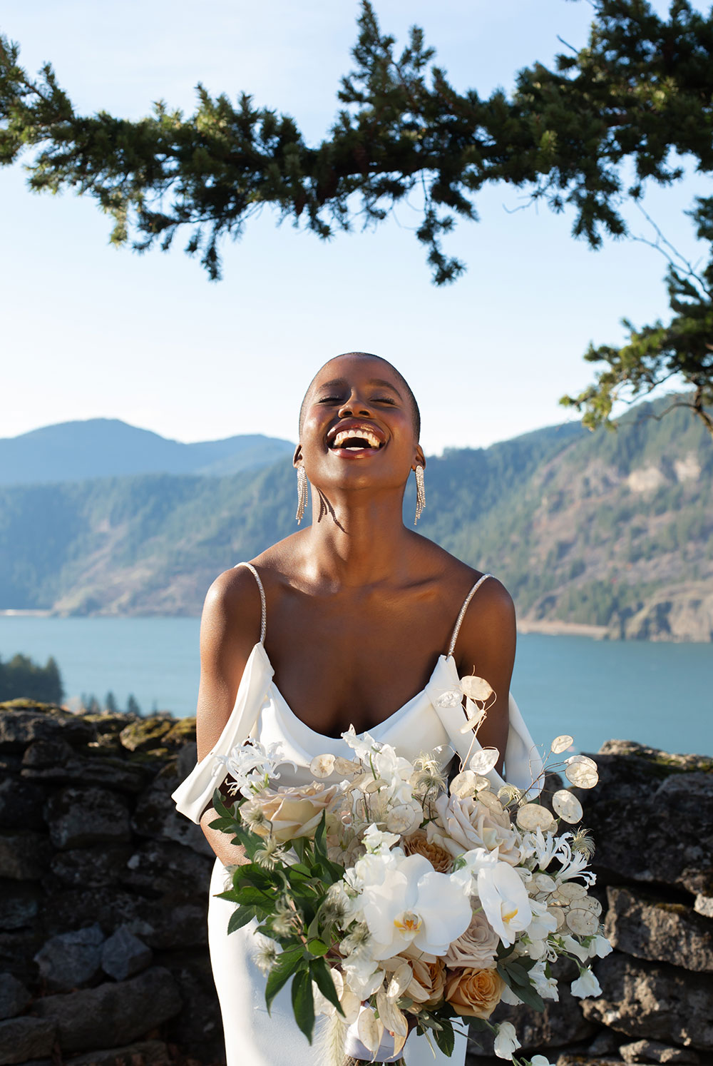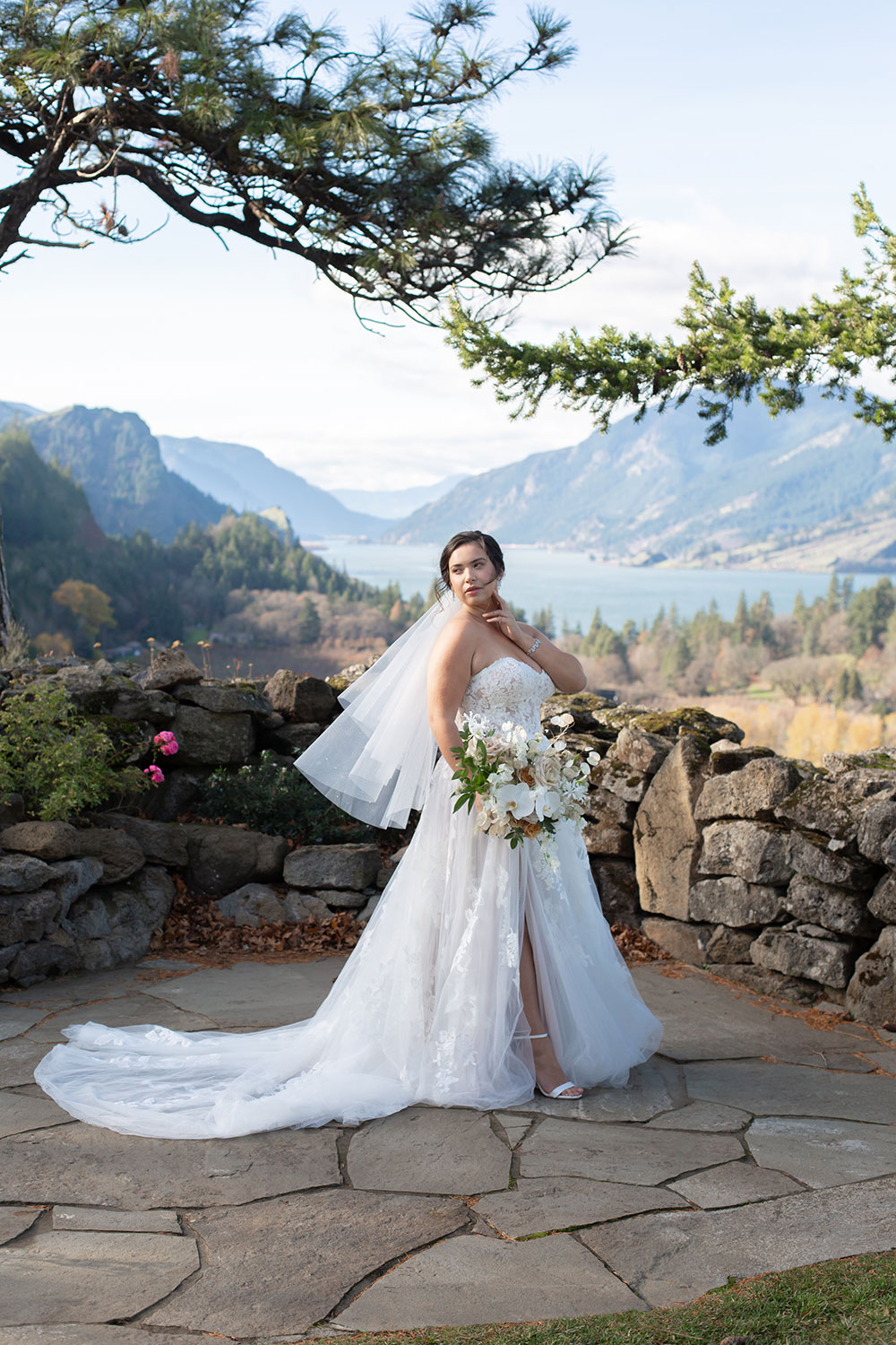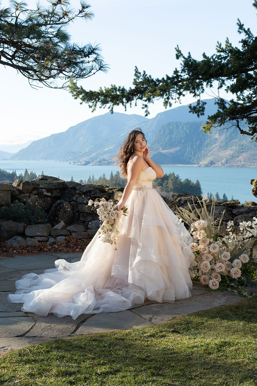 Photographer: Mayne Marketing | Venue: The Griffin House in Hood River, OR | Models: Alexandra Gómez | Makeup: Olivia Hawthorn Makeup | Hair: Mallory Jones | Florals: Star Flower PDX | Gowns: Maggie Sottero