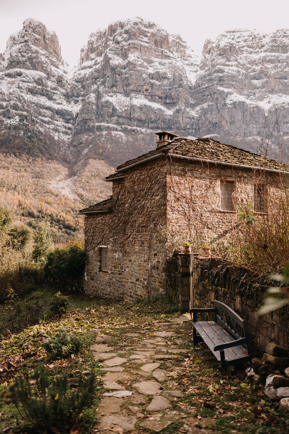 The village of Papingo is inside Greece’s Vikos–Aoös National Park, and the venue, Avragonio Resort, offers a cozy respite from the snowcapped Astraka peak of Mt Tymphe that towers over it.