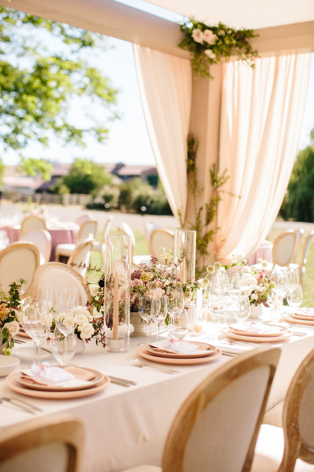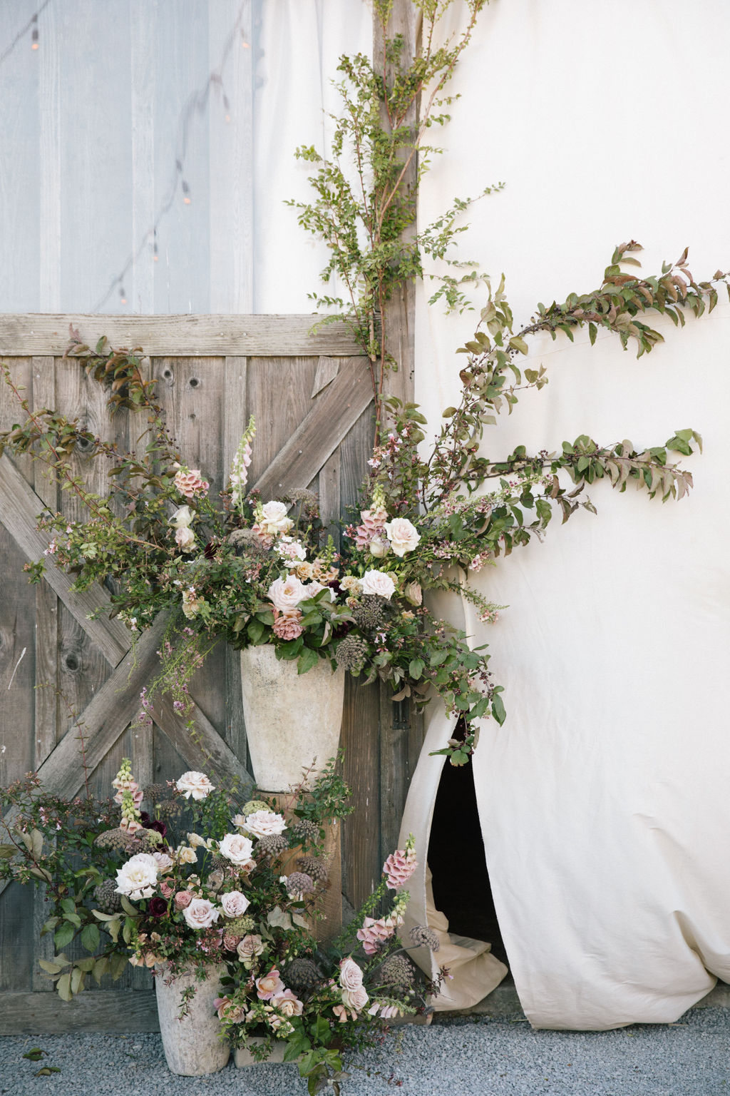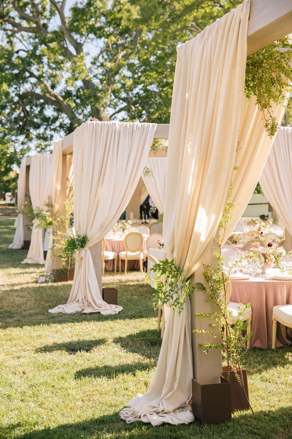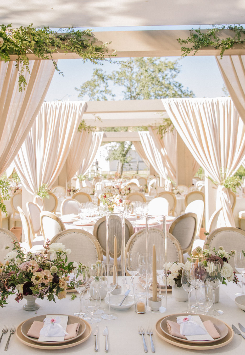 You can’t go wrong with a romantic barn venue, and the views at Olympia’s Valley Estate in this Sonoma wedding coming to us from Annie McElwain and Downey Street Events are unmatched. Jeanette and Nick wanted their wedding to feel like a modern fairytale with a palette of blushy neutrals and lots of greenery. And with elegant drapery surrounding the tables, stunning spring blooms, and a blush Monique Lhuillier gown, the details certainly conveyed an air of magic.