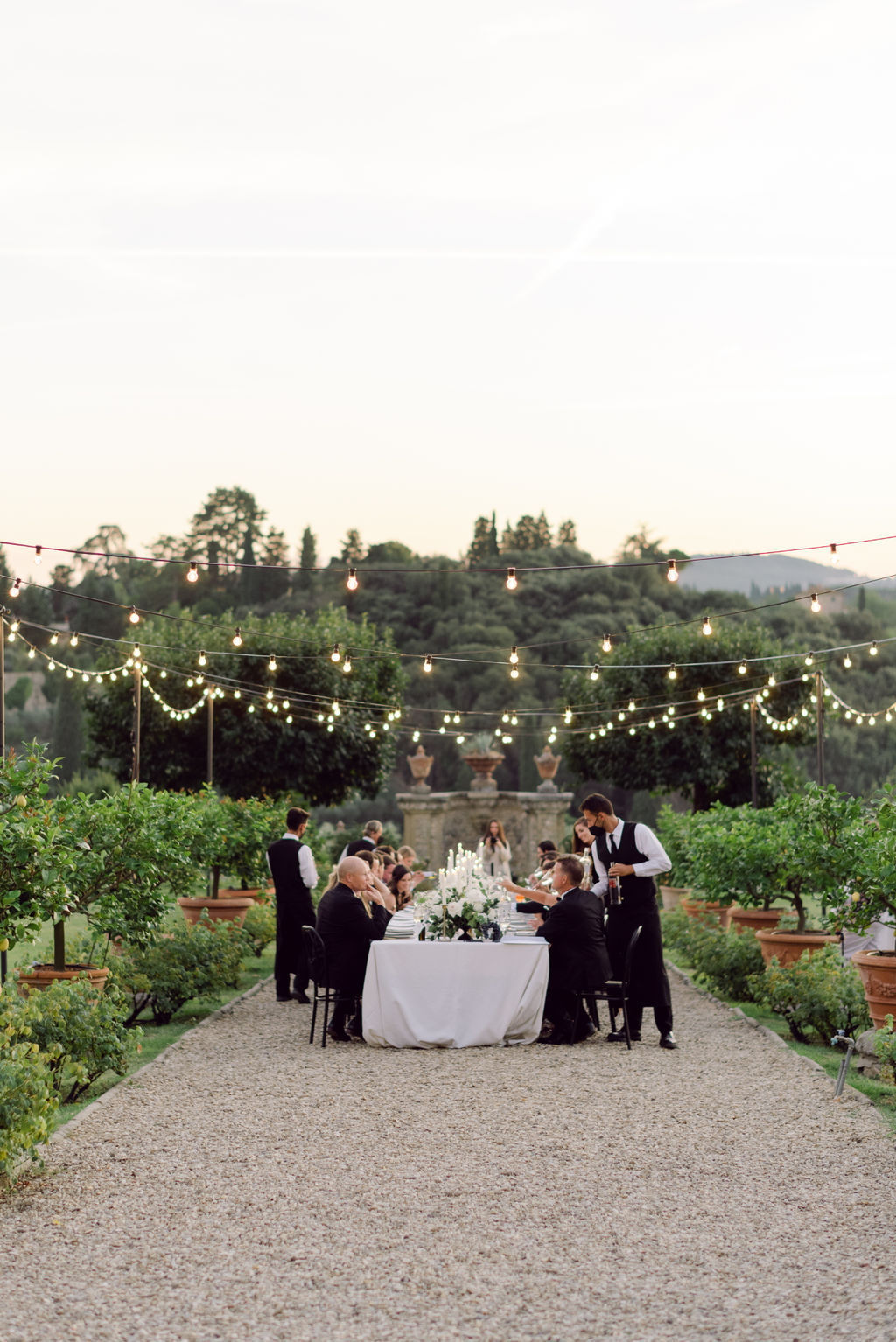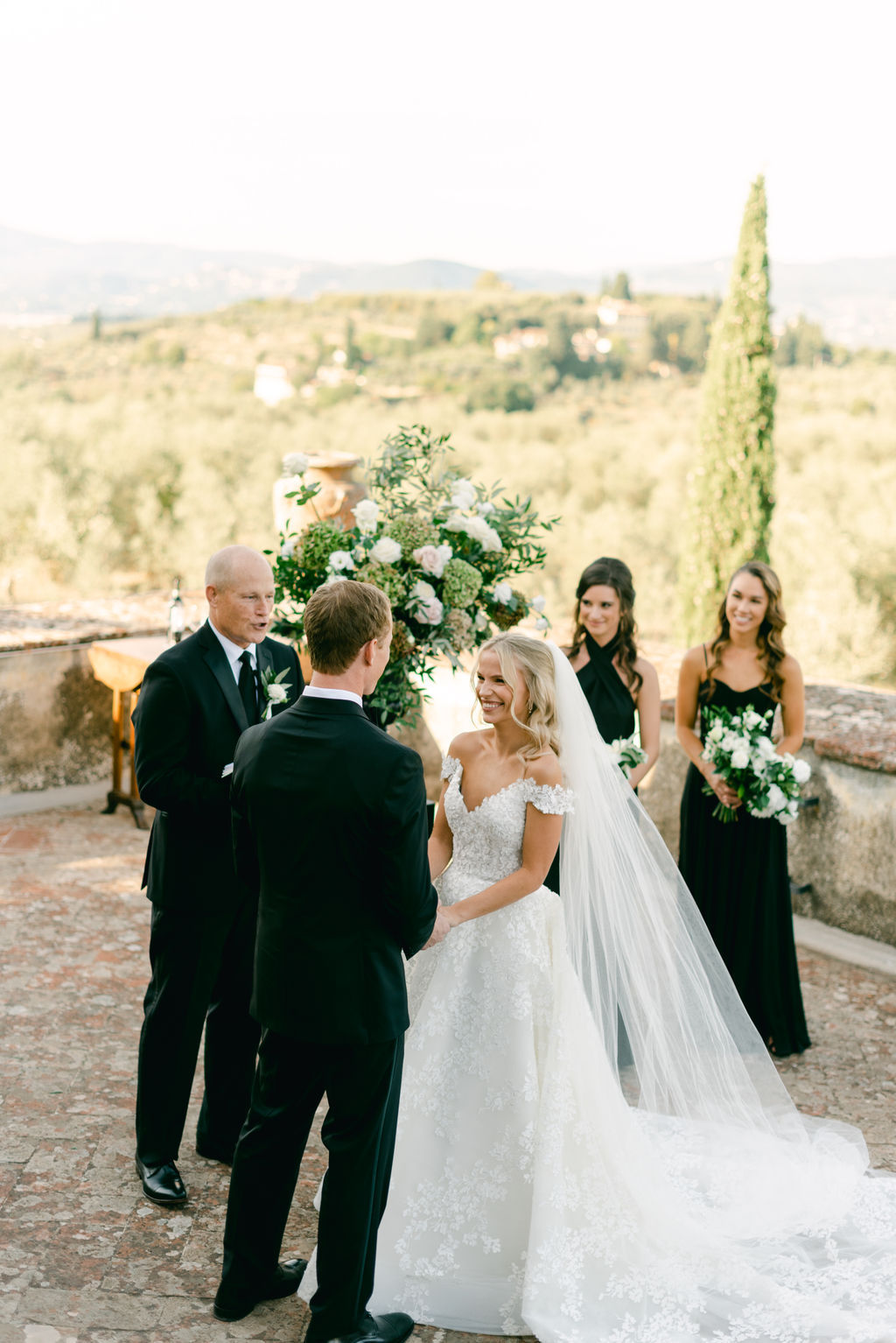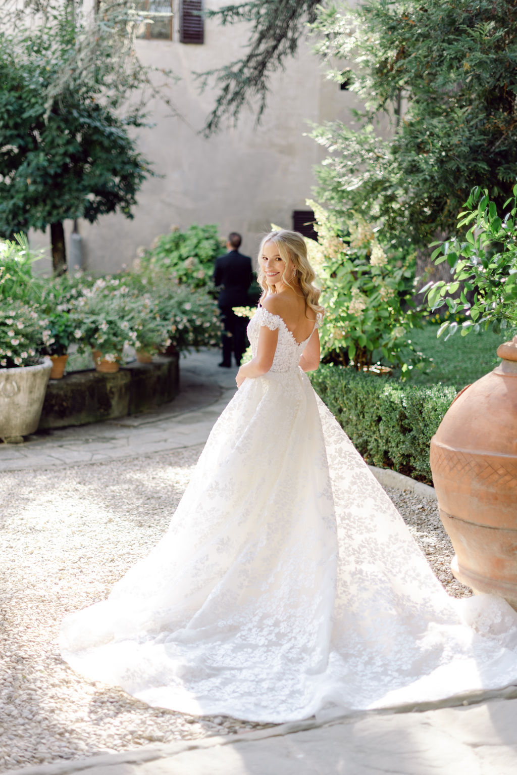 Photography: Lace & Luce | Design & Planning: The Wedding Boutique Italy | Florals: The Wedding Boutique Bloom | Hair & Makeup: Alessandro Mancino Studio | Videographer: Lumos Produzioni | Wedding Dress: Lazaro | Reception Dress: Milly | Shoes: Alexandre Birman | Men’s Attire: Jack Victor | Catering: Galateo Ricevimenti Firenze | Venue: Villa Medicea di Lilliano | Stationery: Inviting