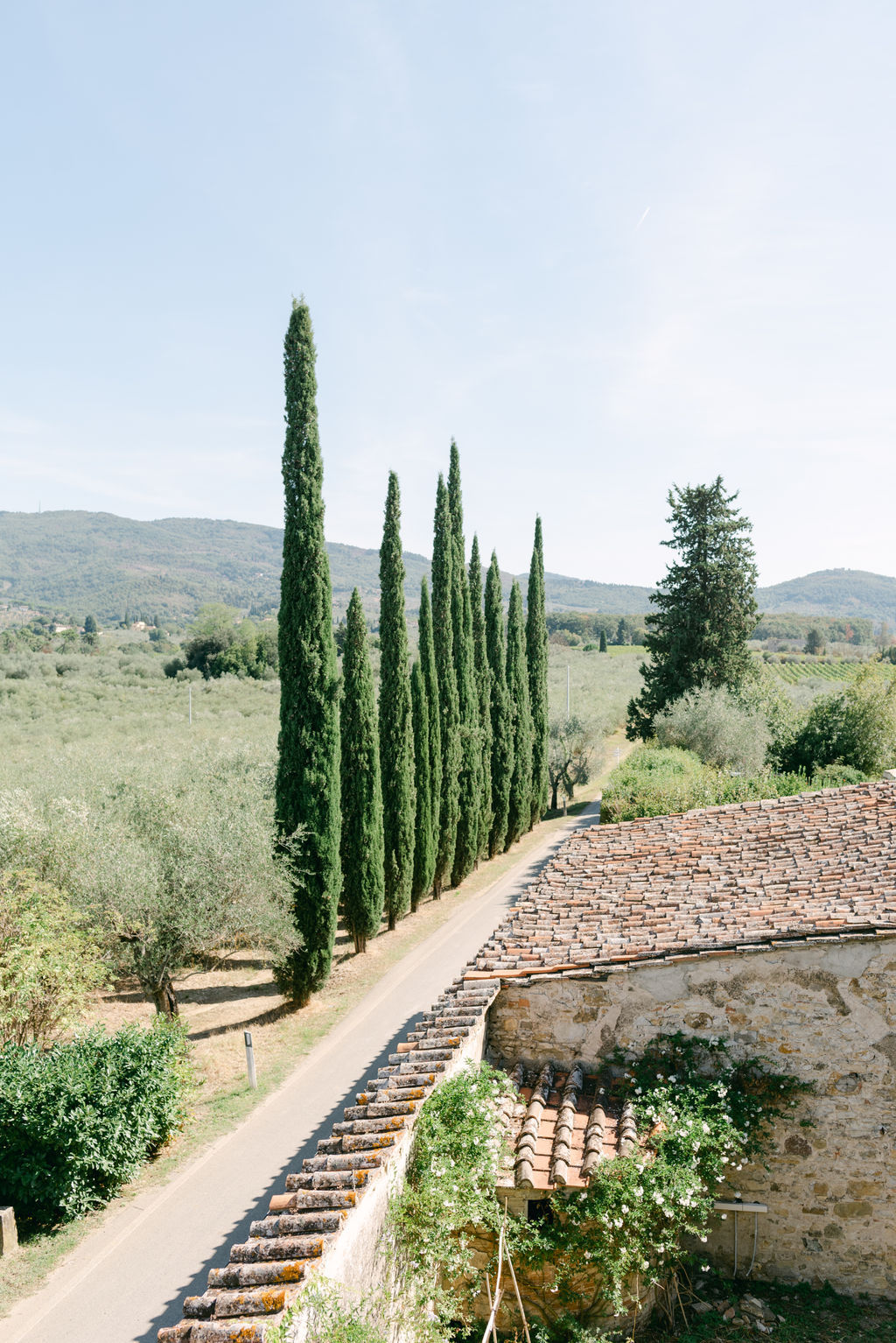 The welcome party took place in central Florence on a rooftop with a fantastic view, a great contrast to the wedding day which took place in the green rolling hills covered in silvery olive trees and vineyards snaking down the hillside.