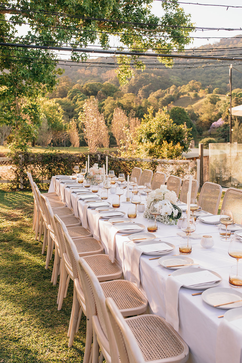 How pretty is this tablescape in the golden hour sunlight? Love the glassware.