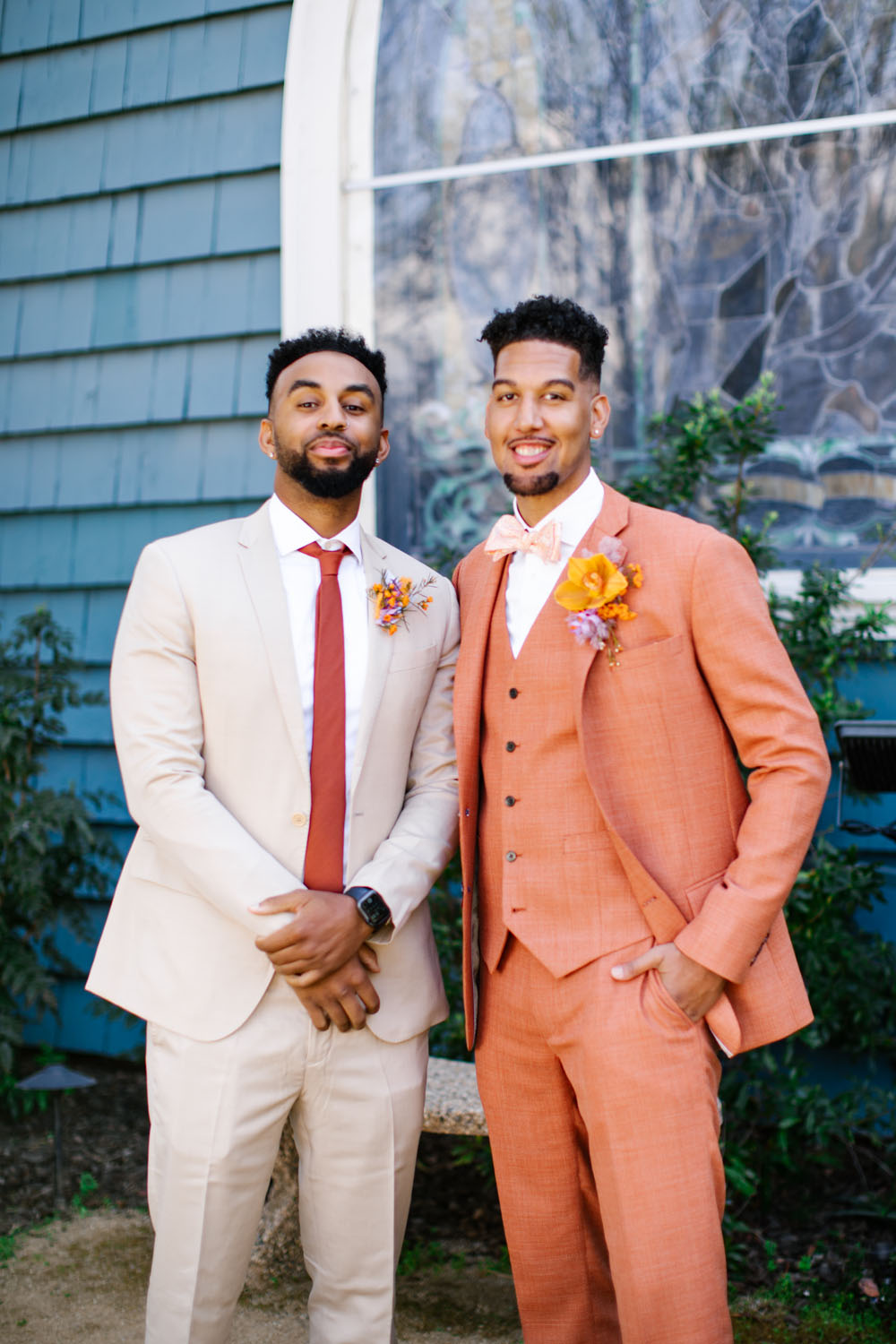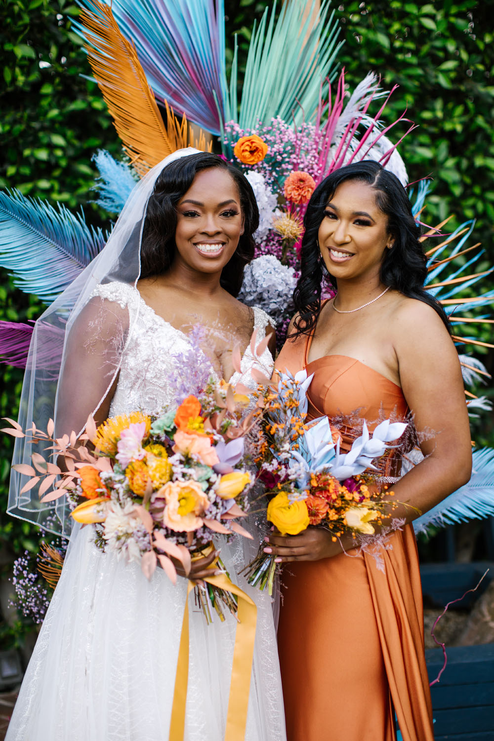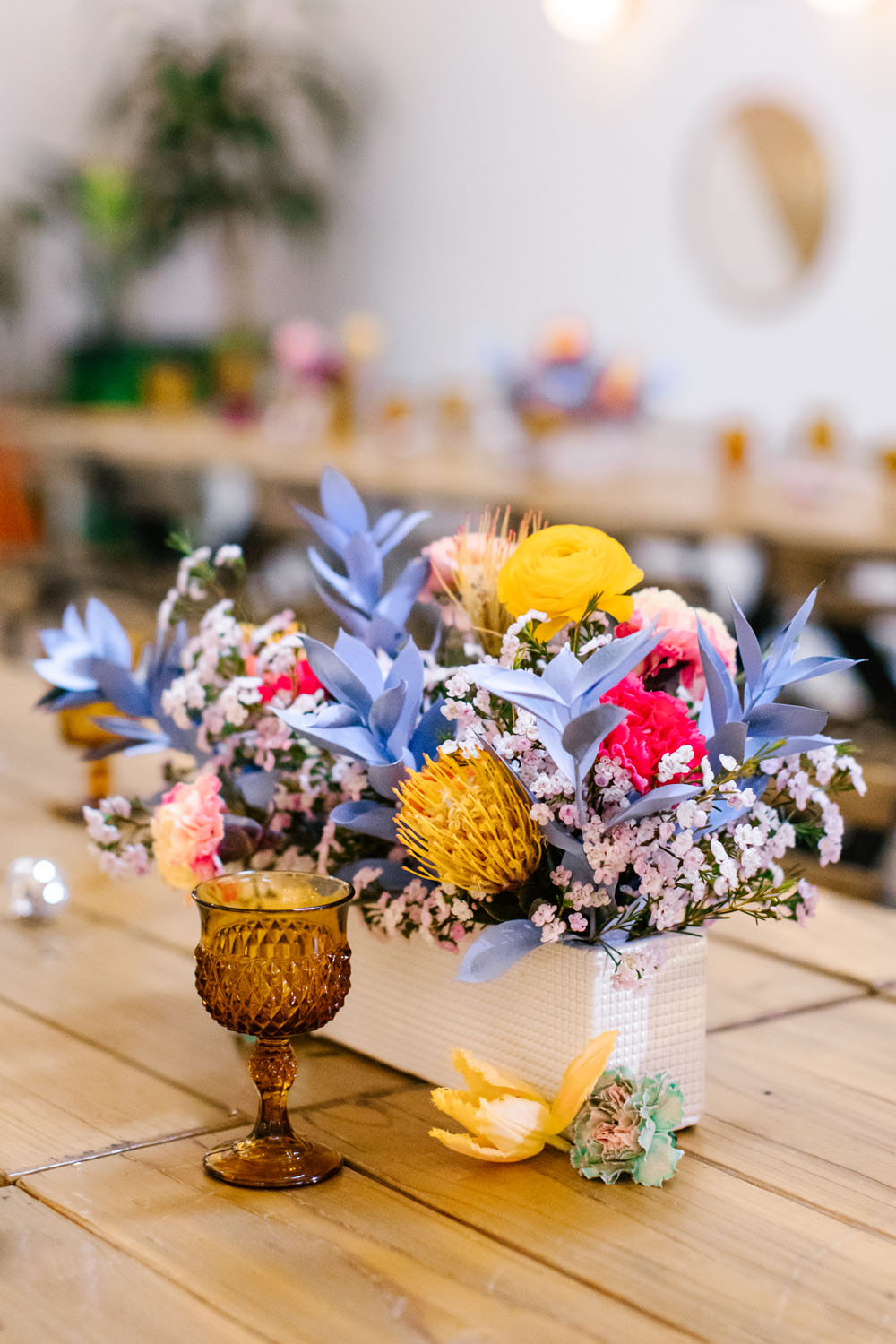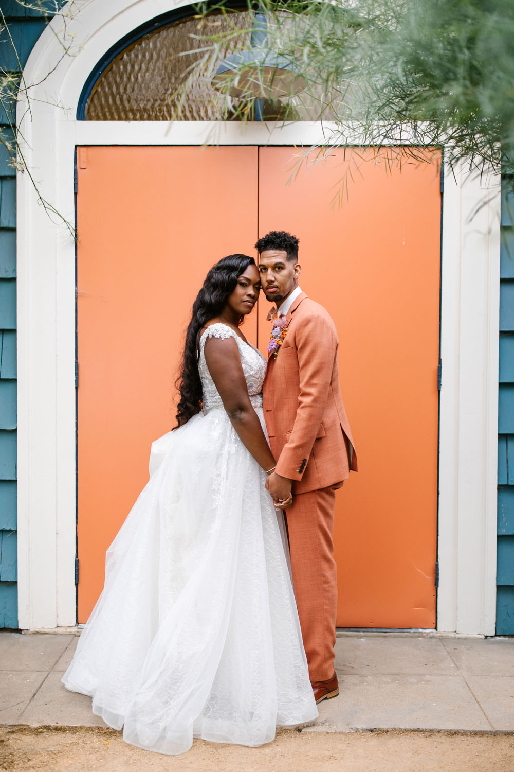 Don’t you love it when couples aren’t afraid to channel bold color in their weddings? The big day is all about celebrating love, so why not make it as cheerful as possible? Sharea and Mikal loved the colorful and modern style of The Ruby Street, especially those gorgeous stained glass windows. It inspired them to highlight the simplicity of its modern style while bringing in a bright, whimsical, and celebratory vibe. With five children celebrating right alongside them, a fun, family-centric event was another high priority. They brought in lots of activities (like a cotton candy cart and caricature artist) for all ages to enjoy, and of course, everyone could appreciate the stylish details throughout. Anna Zajac Weddings was behind the lens and Kindred Weddings & Events helped them bring it all together.