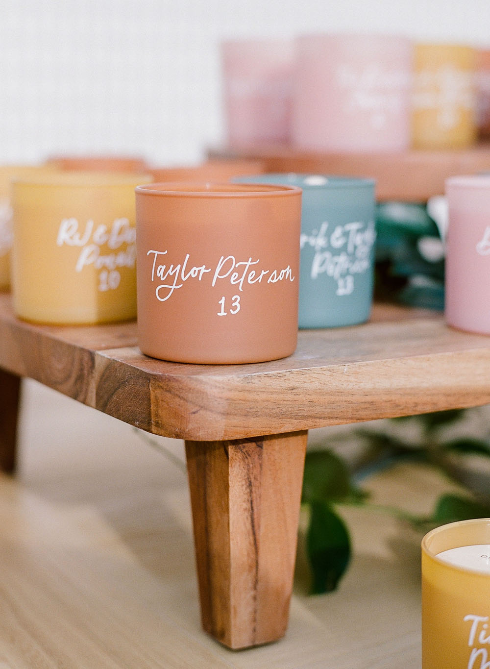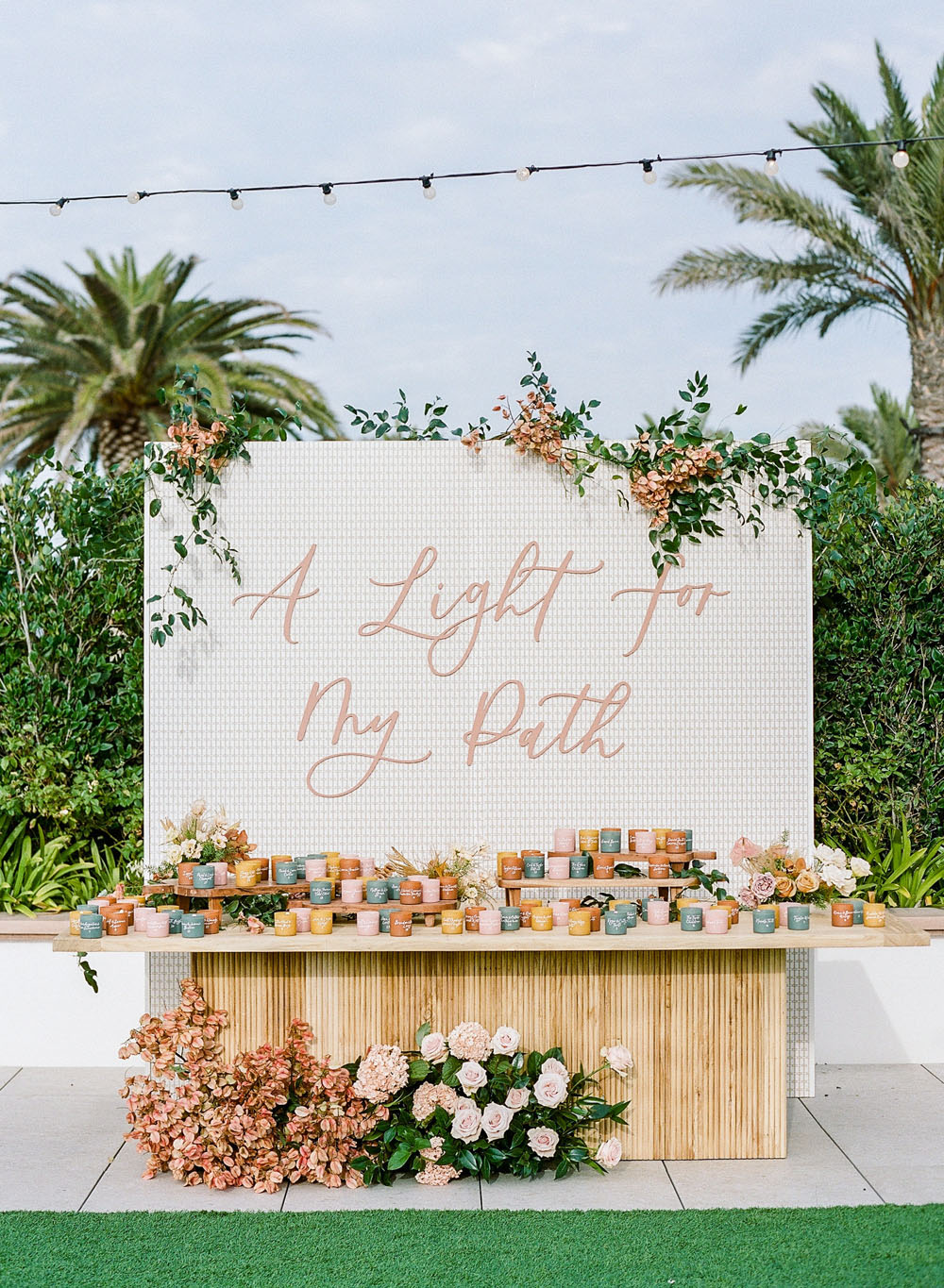 How pretty are these candle wedding favors, so perfectly displayed? Amorology always gets us with their incredible backdrops and installations.