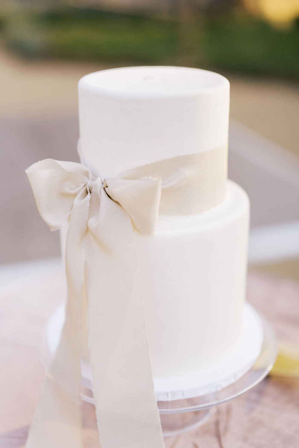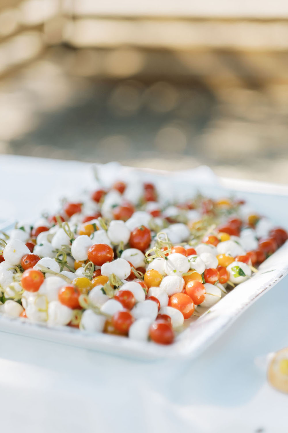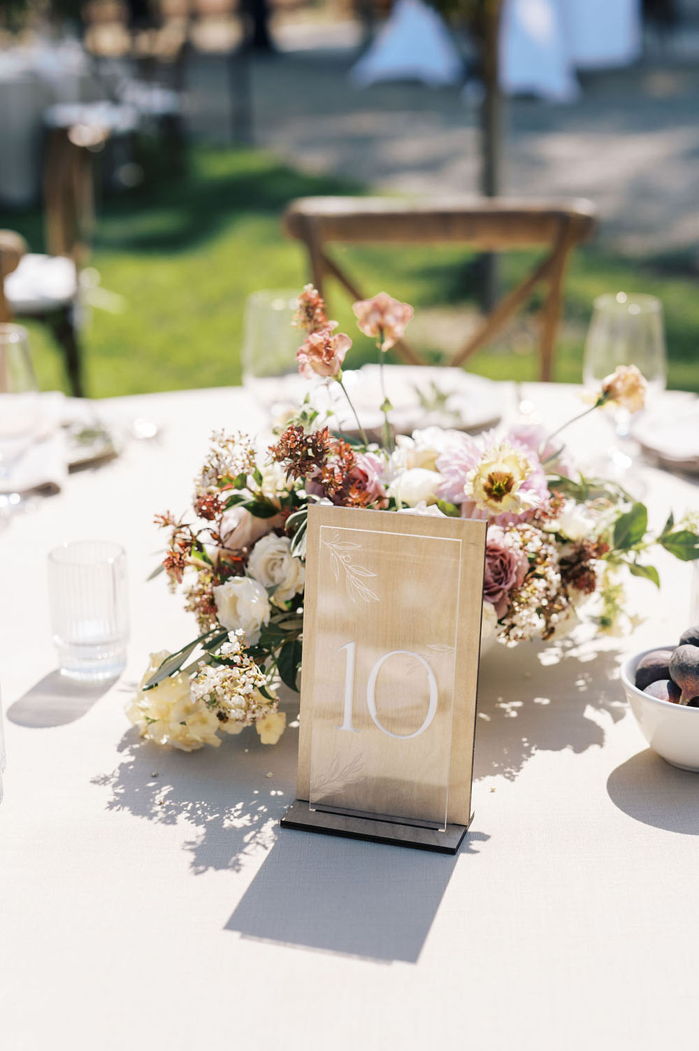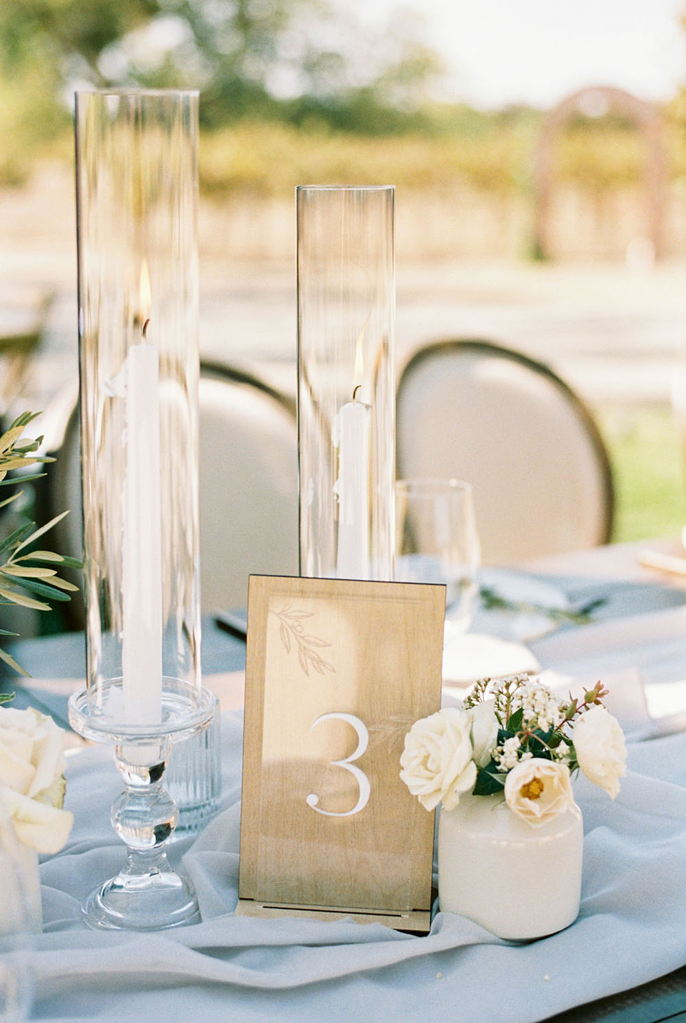 Kristina explains, The bride placed a high importance on sharing her Palestinian culture through the symbol of the olive branch. This small yet significant detail was found embroidered on her custom dress, found on the invitations, and used in their personalized wax stamps and signage. The boutonnieres and bouquets included small olives to tie into the theme. And their venue even aligned with this vision as the driveway leading up to the property is eloquently lined in olive trees. Lastly, the favors they chose to gift was a bottle of olive oil—each one packaged and shipped from her grandmother’s olive grove in Palestine. These bottles were displayed on a stunning escort chart adorned with greenery and a romantic Spanish phrase giving nod to the groom’s Hispanic culture.