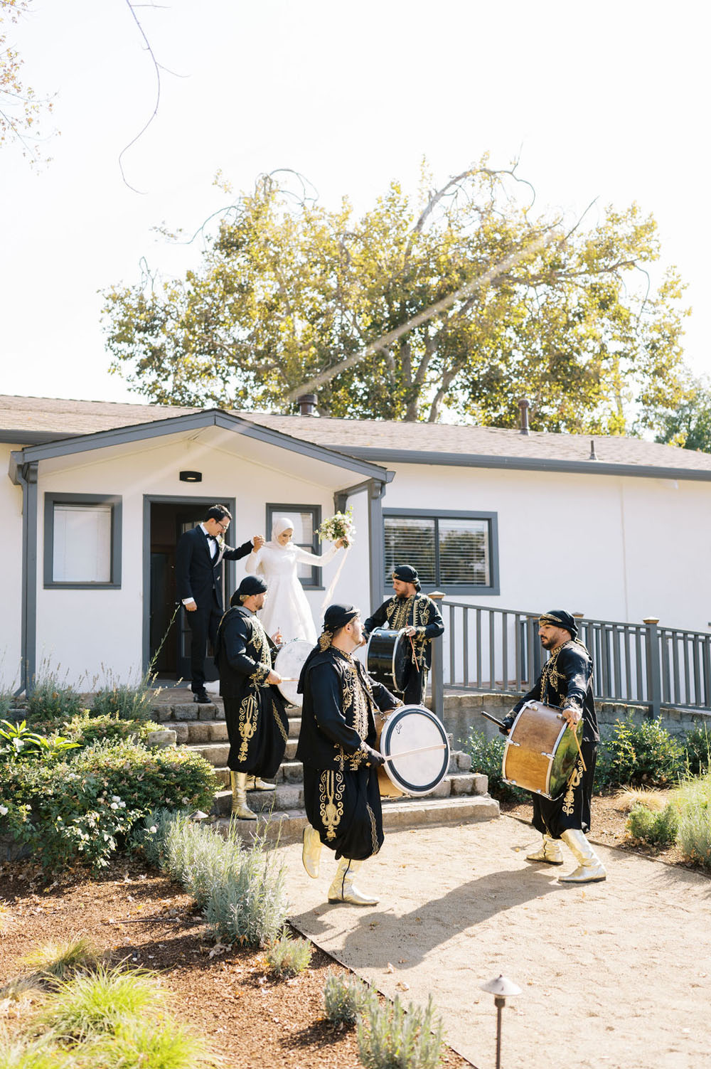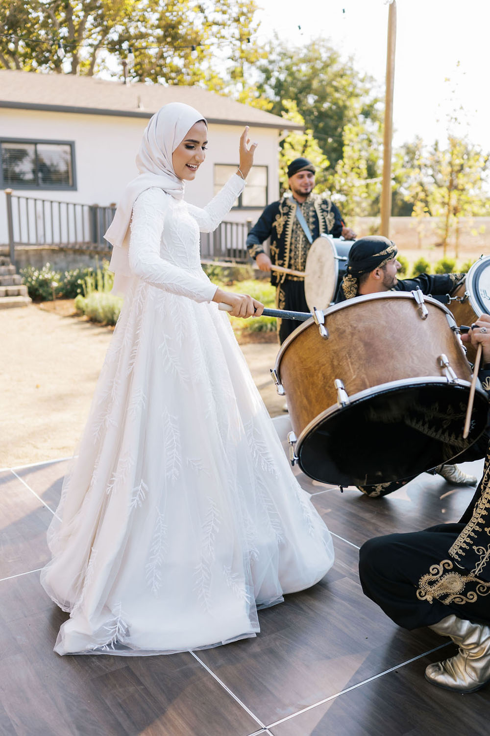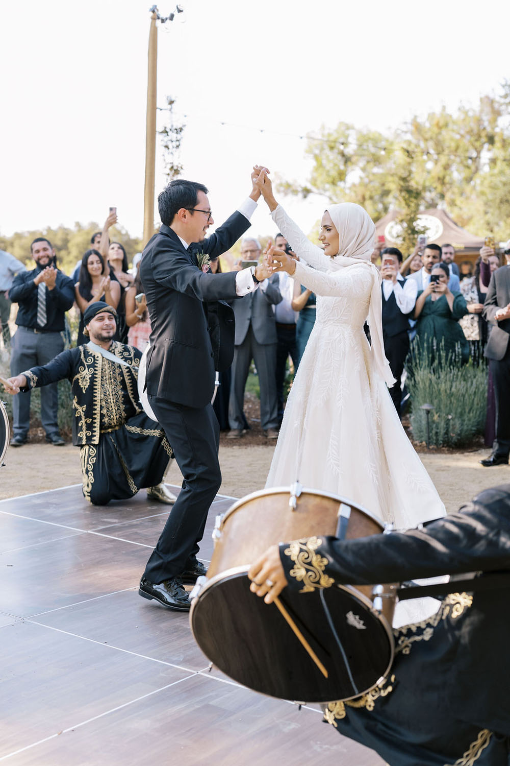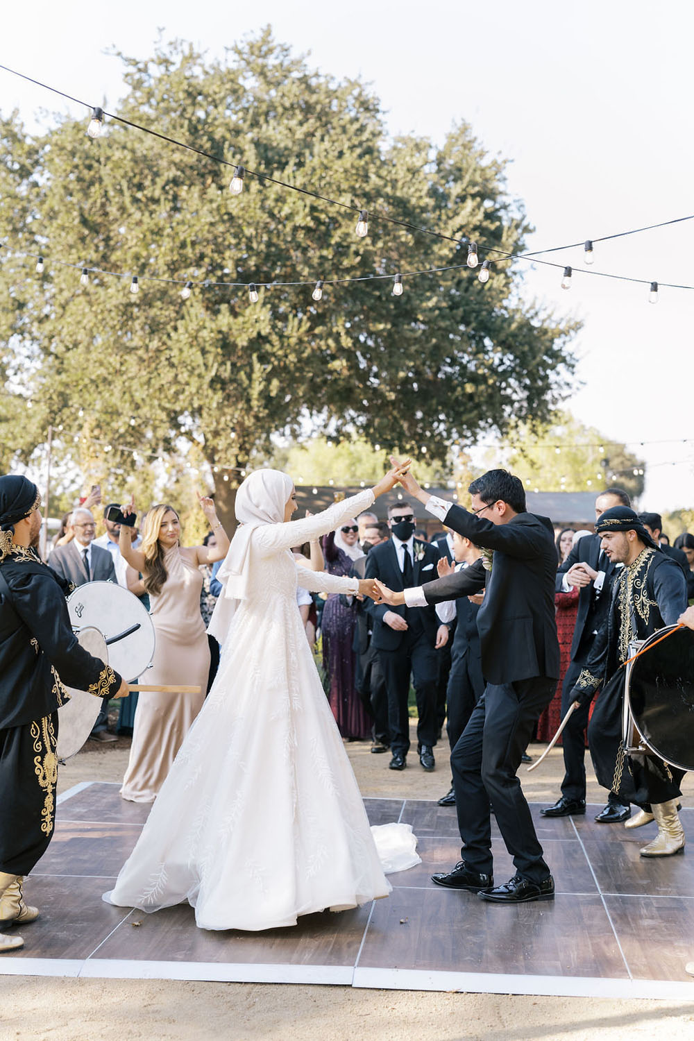They kicked the celebration off with a zaffeh—a parade/wedding march performed by musicians typically playing drums, bagpipes and horns. Friends and family then surrounded them on the dance floor!