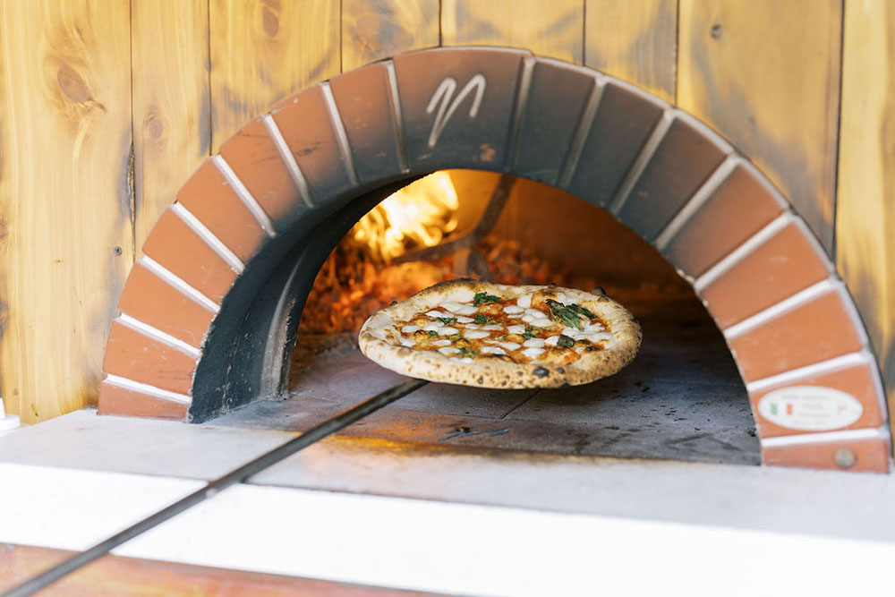 A peek at the bride’s handmade signage! Each guest found a wooden pizza paddle menu at their seat that outlined the evening’s offerings.