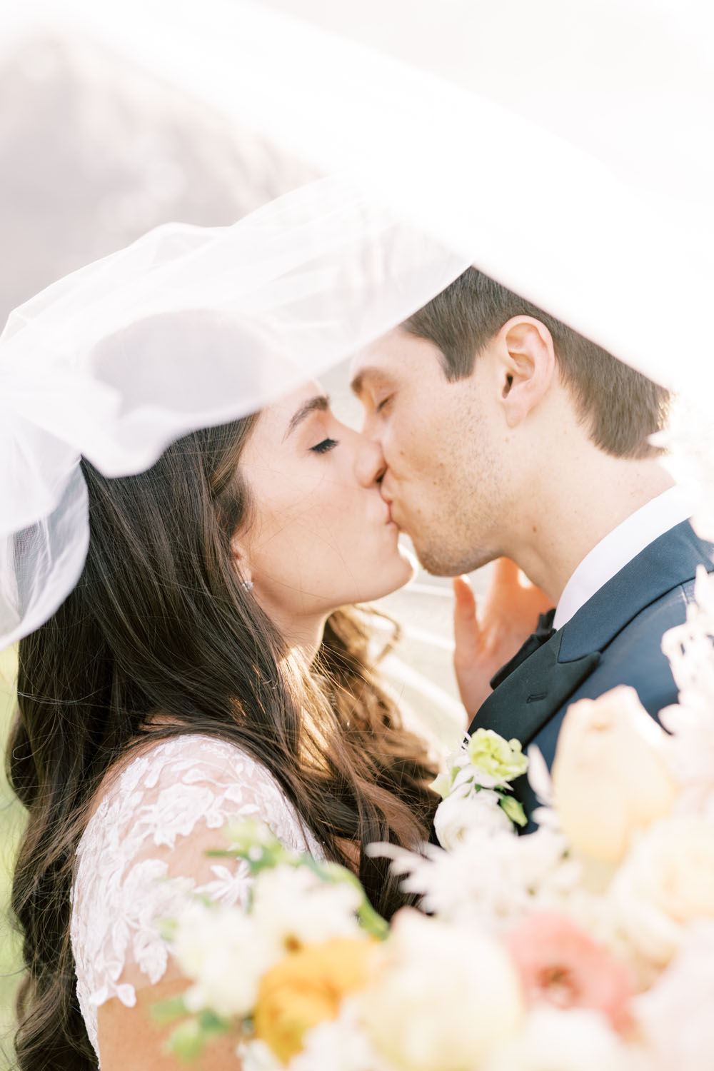 The ceremony in front of Sylvanside’s idyllic pond introduced guests to what would be the first of many beautiful design details, including the warm blush, cream, and pale yellow color palette brought to life by Springvale Floral. The couple’s personal touches continued to make a statement during their cocktail hour in the stone barn with a travel-themed seating chart and an around-the-world themed cocktail and appetizer selection. A New Orlean’s gruyere beignet and Italian Campari spritz were just a few of the delicious, worldly items donning the tables. For Kate and Sean, a hyperlocal farm to table caterer was a must-have to create not just a menu, but an experience for guests in sampling a variety of international cuisines.