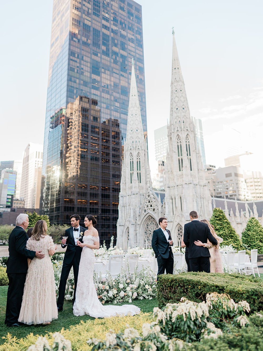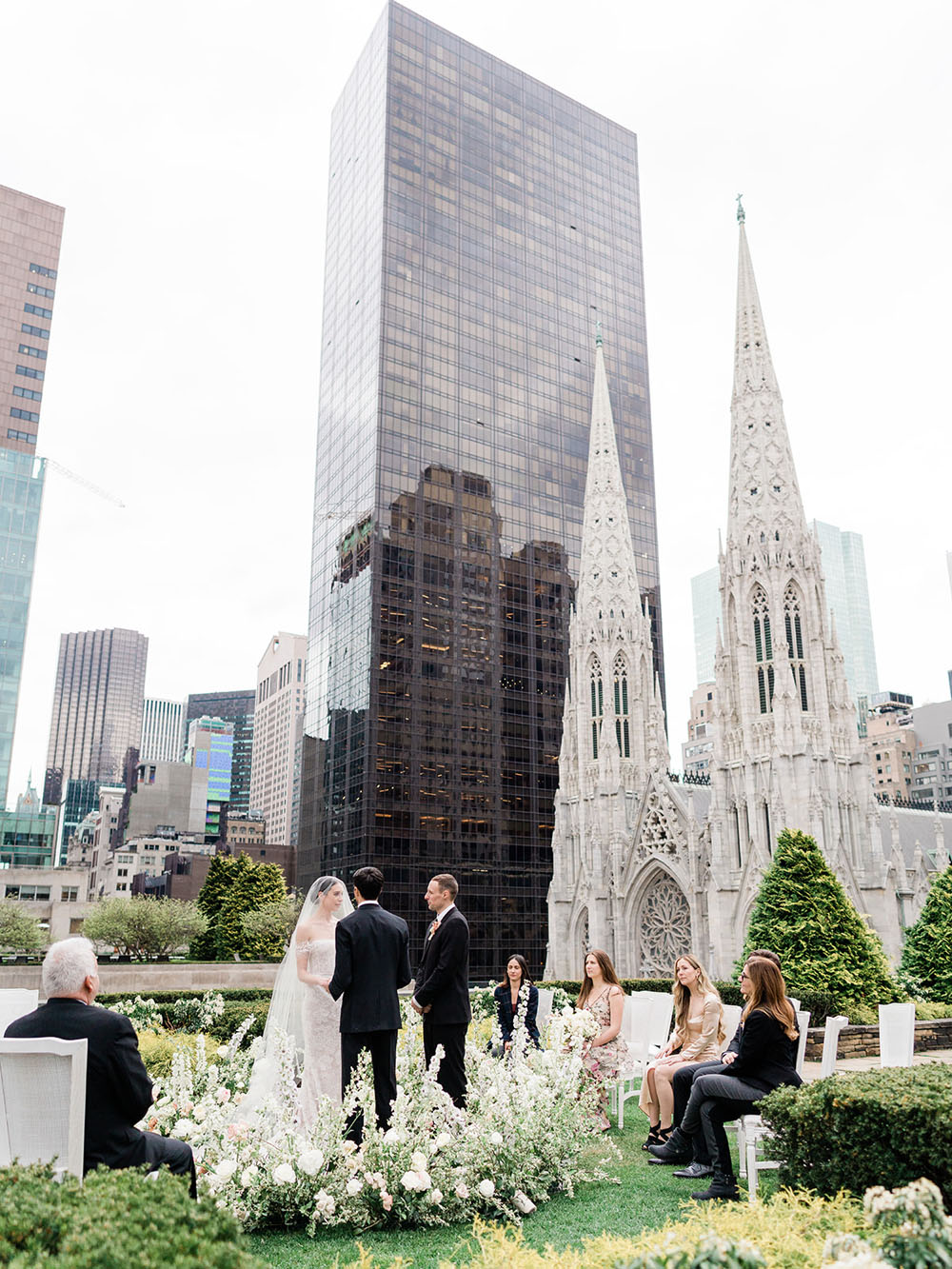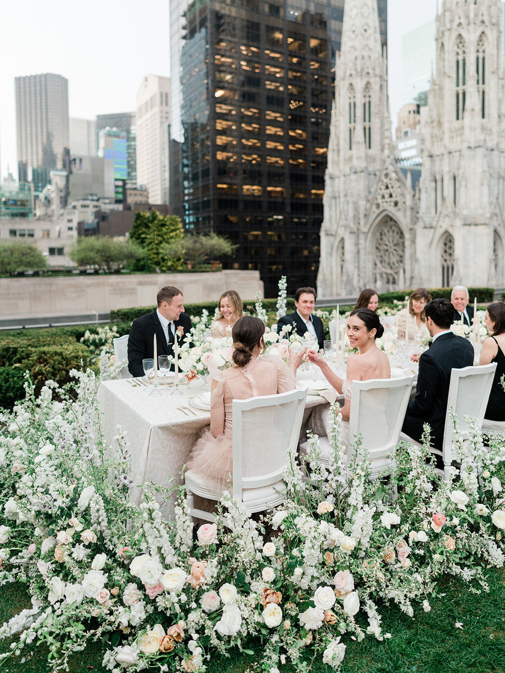Ever been to a garden wedding on a rooftop overlooking the city? This luxe scene by Ana Luiza Weddings and Liz Andolina Photography takes place among Rockefeller Center’s “hidden” rooftop gardens at 620 Loft & Garden which overlook the iconic St. Patrick’s Cathedral and Fifth Avenue. Talk about views!