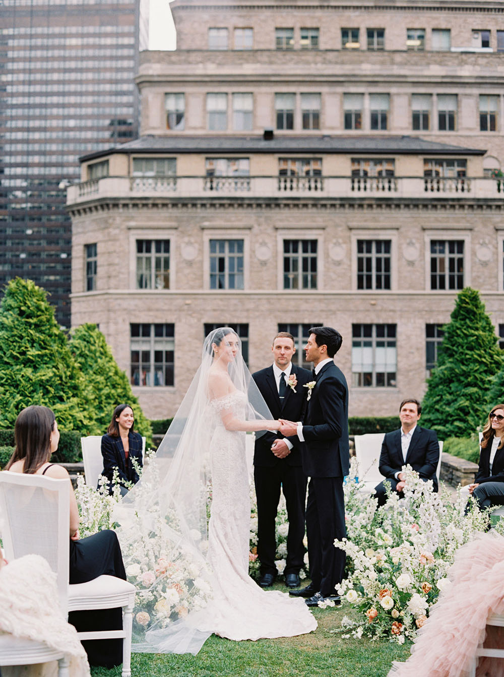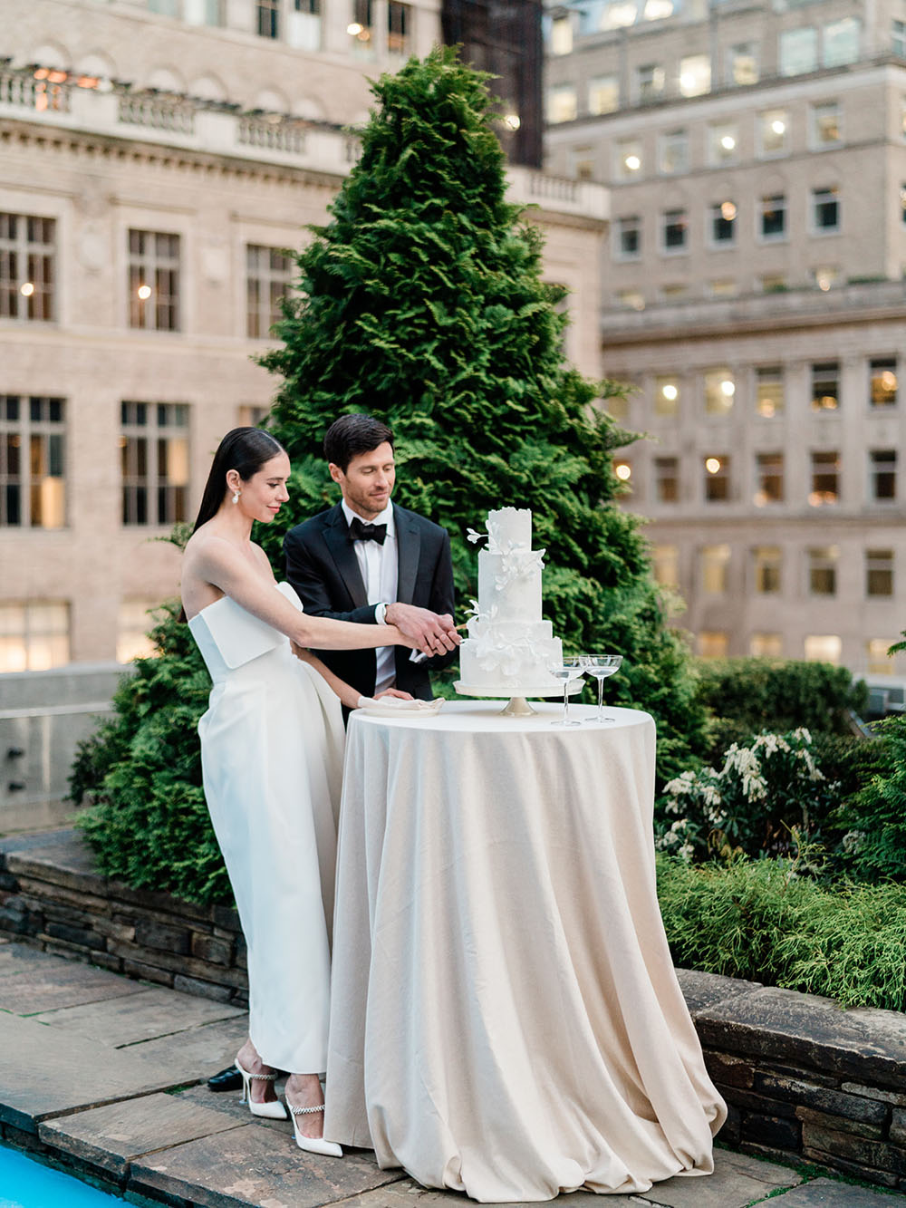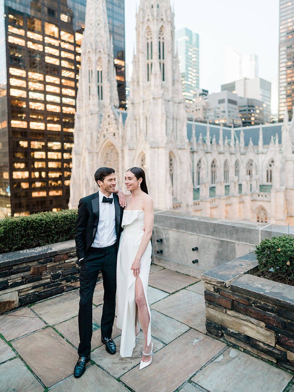 Ever been to a garden wedding on a rooftop overlooking the city? This luxe scene by Ana Luiza Weddings and Liz Andolina Photography takes place among Rockefeller Center’s “hidden” rooftop gardens at 620 Loft & Garden which overlook the iconic St. Patrick’s Cathedral and Fifth Avenue. Talk about views!