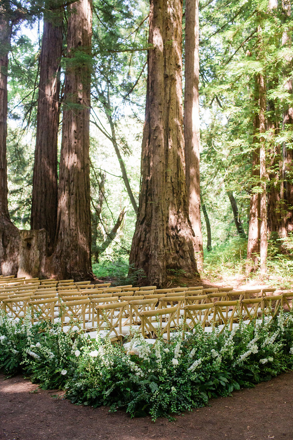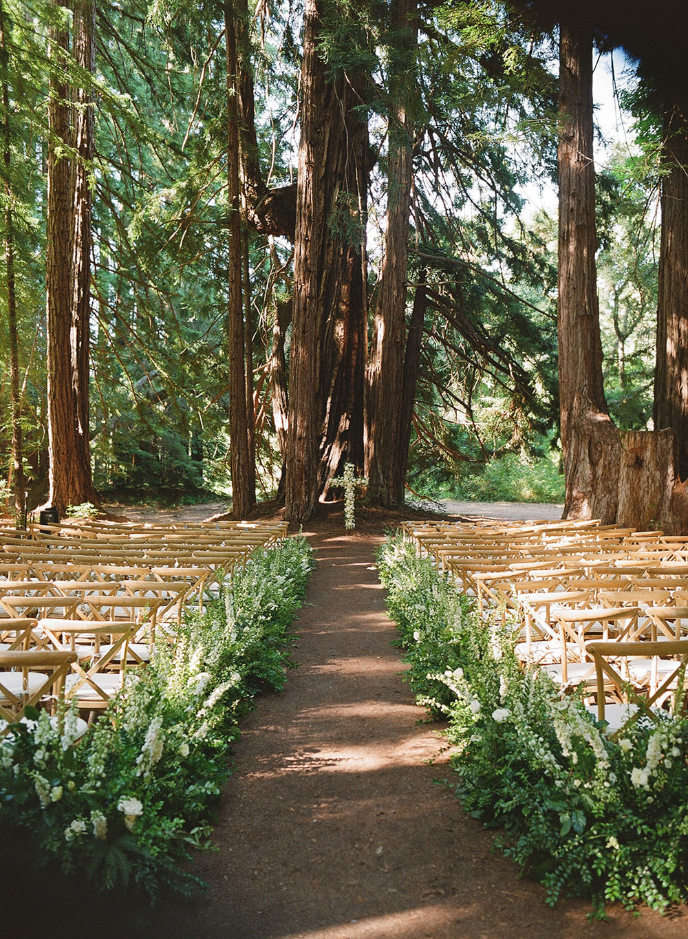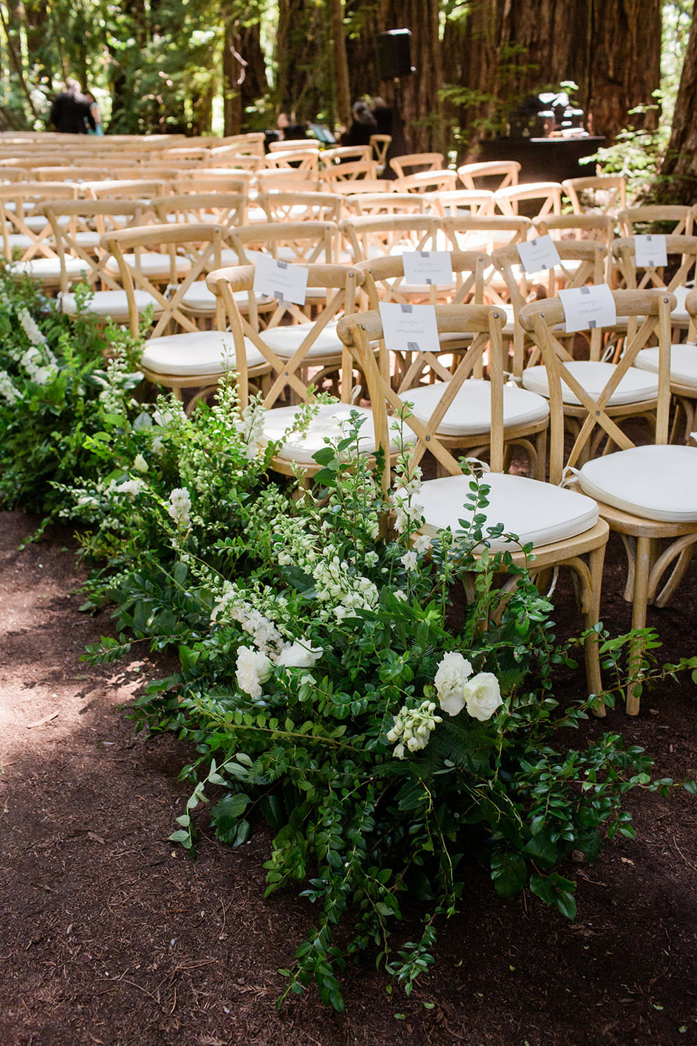 Don’t you just love how the white flowers and greenery by Sharla Flock Designs follow the entire aisle and back row? Just perfect for this wild place!