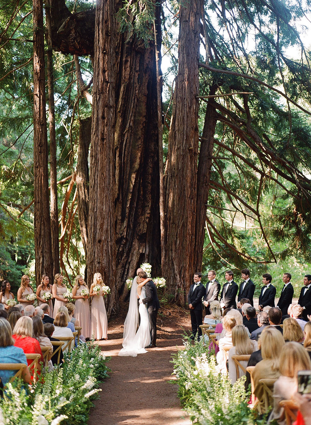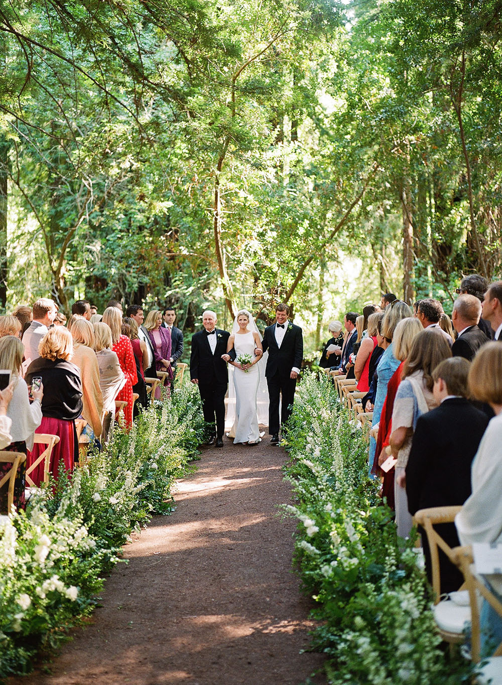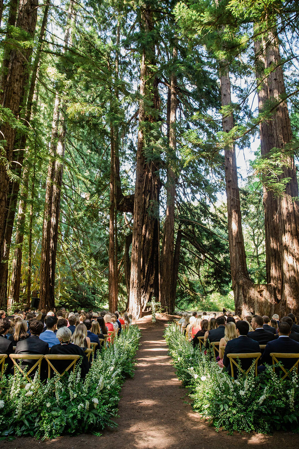 Don’t you just love how the white flowers and greenery by Sharla Flock Designs follow the entire aisle and back row? Just perfect for this wild place!