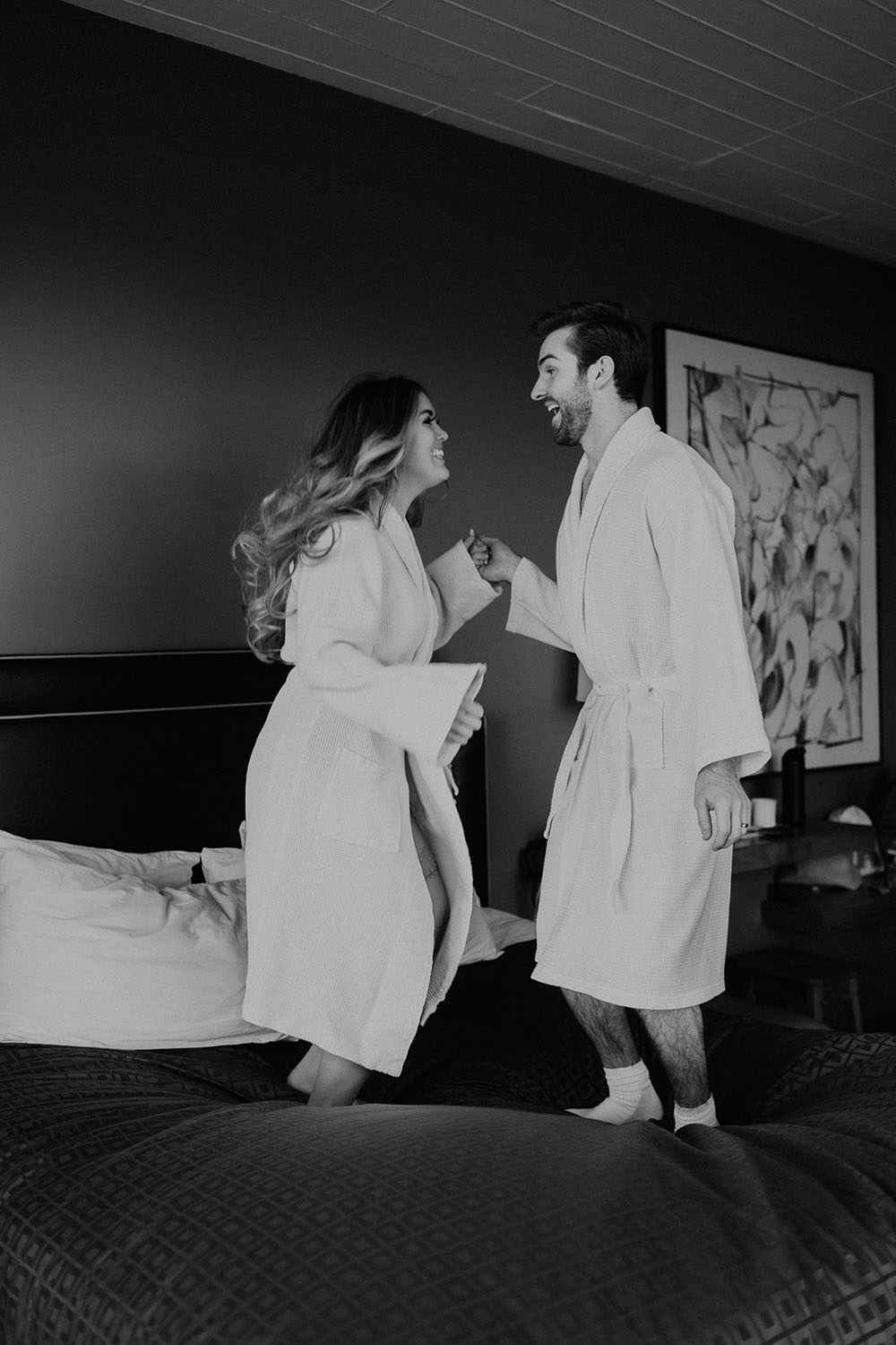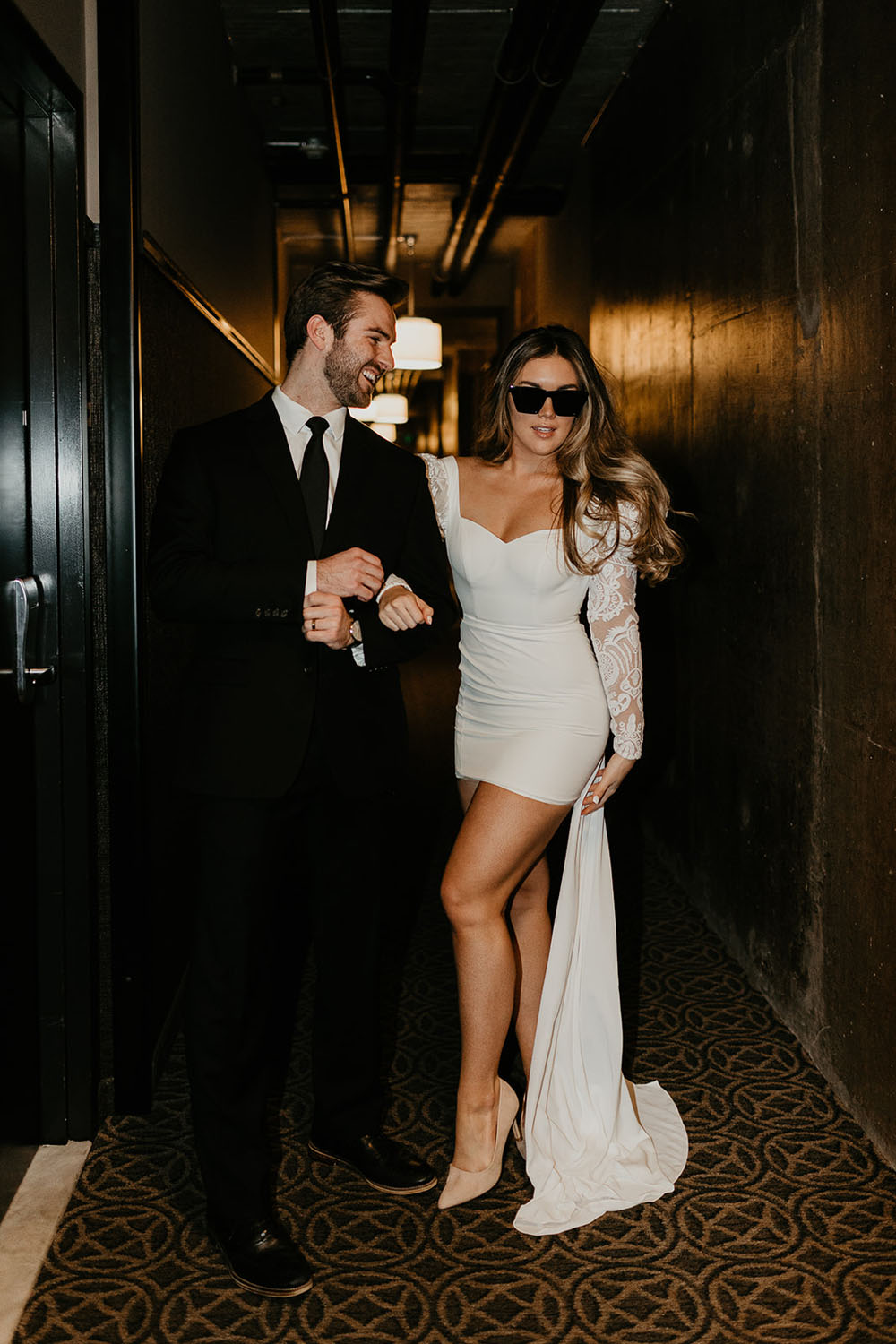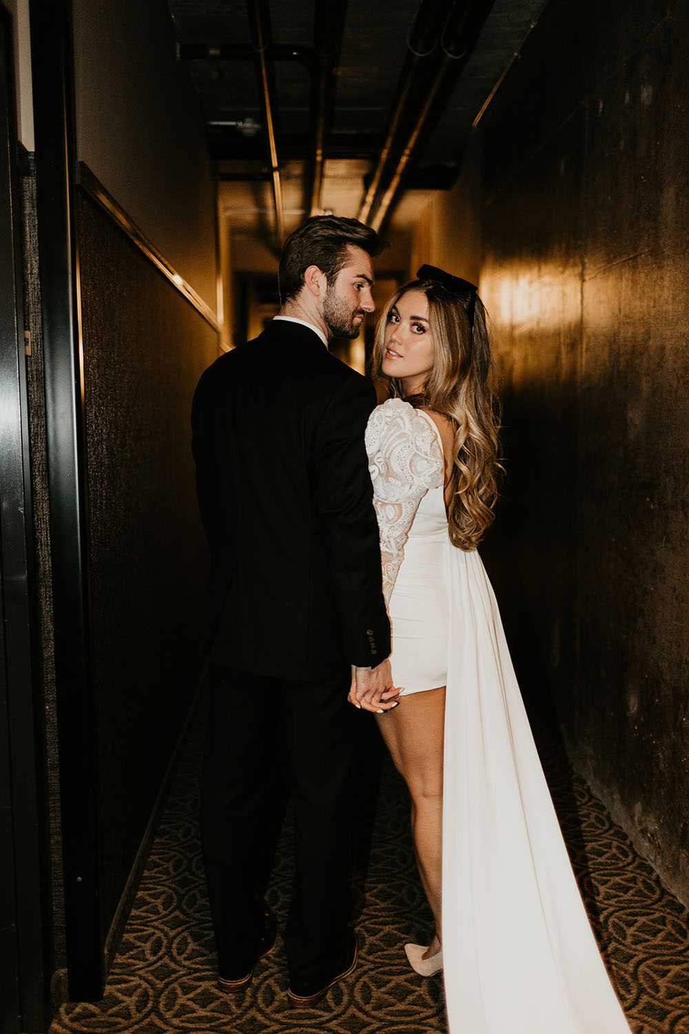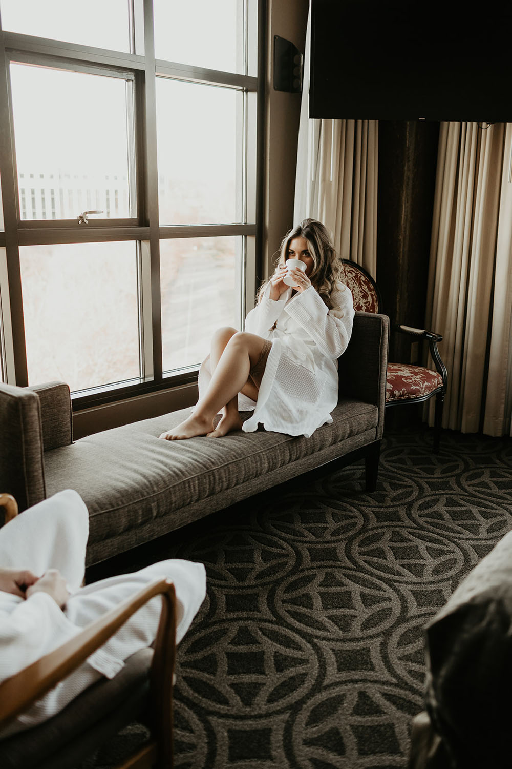 Pro tip: If you can secure a photographer for an anniversary, DO IT. Such a fun way to relive memories from your wedding day while making new ones to look back on later. That’s what Leanna and Drew did when they returned to the same hotel from their wedding night two years later. They met up with Mariela of Bella Liz Photography to commemorate the occasion with a series of fresh photos at The Proximity Hotel in Greensboro, NC. Keep scrolling to see the photos of their anniversary date from morning till night!