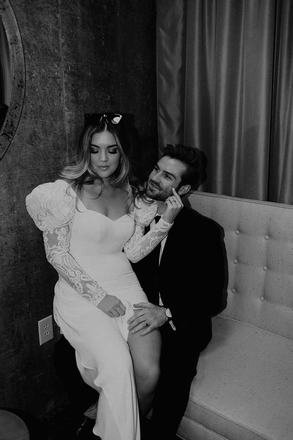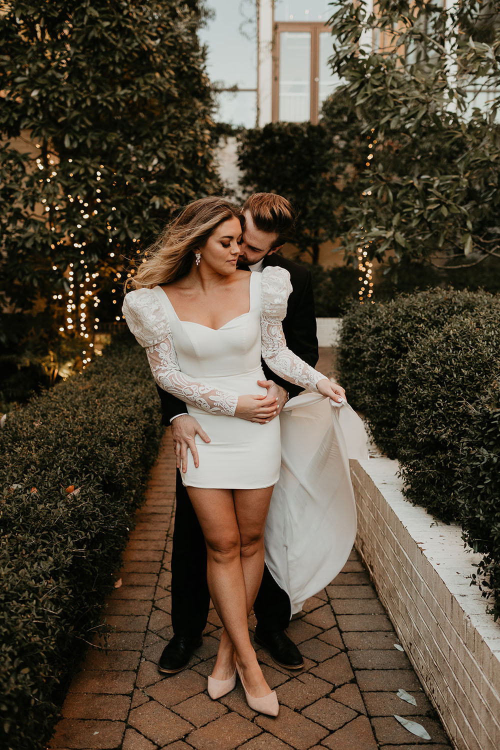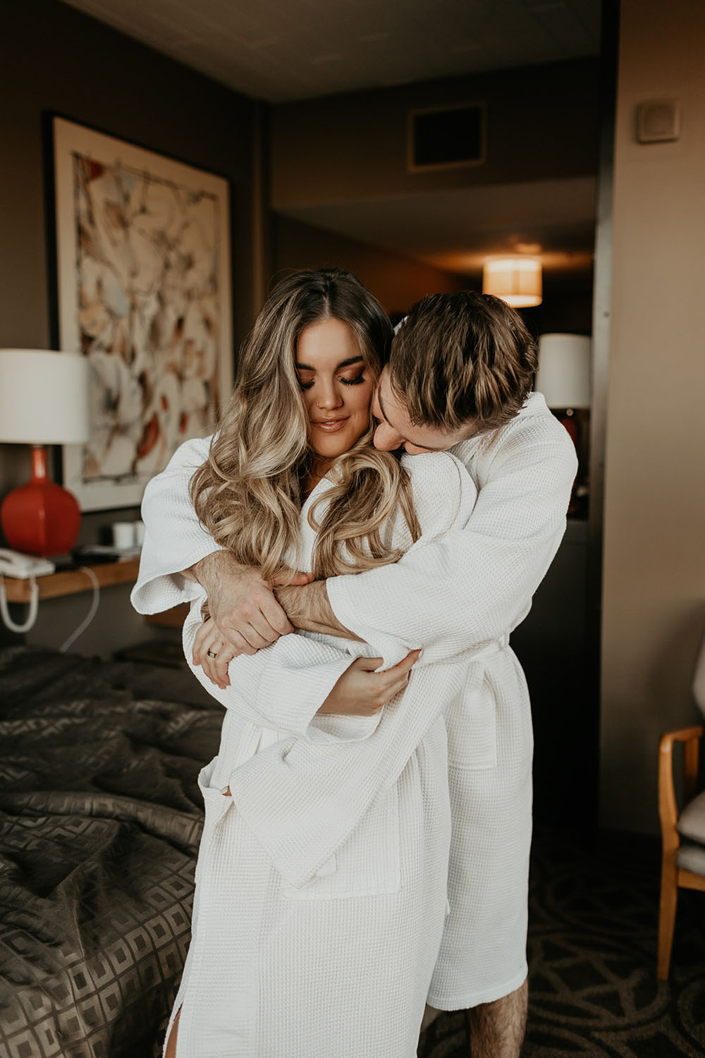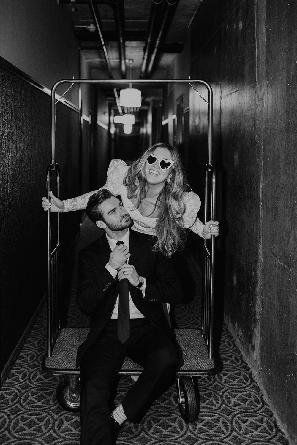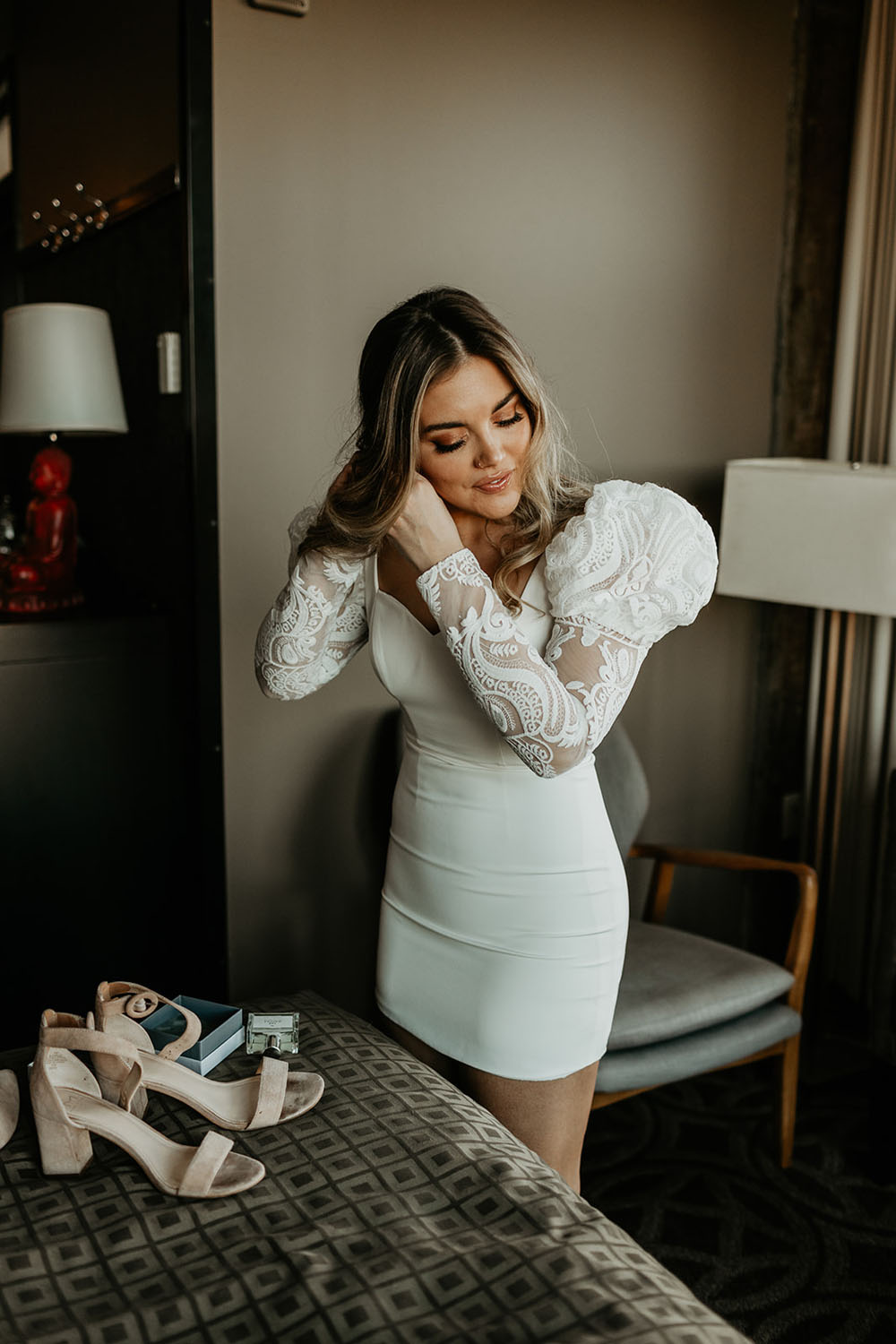 Pro tip: If you can secure a photographer for an anniversary, DO IT. Such a fun way to relive memories from your wedding day while making new ones to look back on later. That’s what Leanna and Drew did when they returned to the same hotel from their wedding night two years later. They met up with Mariela of Bella Liz Photography to commemorate the occasion with a series of fresh photos at The Proximity Hotel in Greensboro, NC. Keep scrolling to see the photos of their anniversary date from morning till night!
