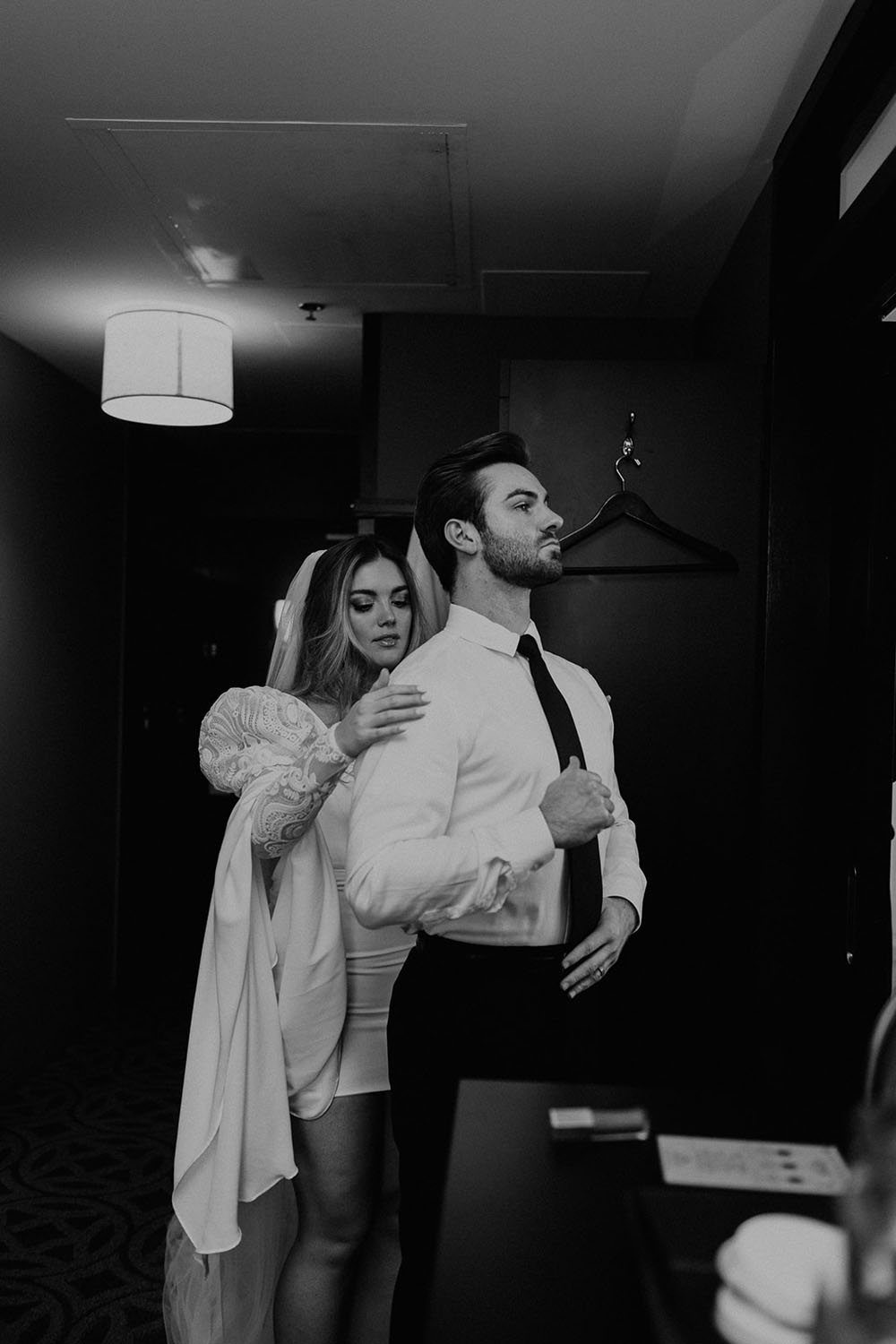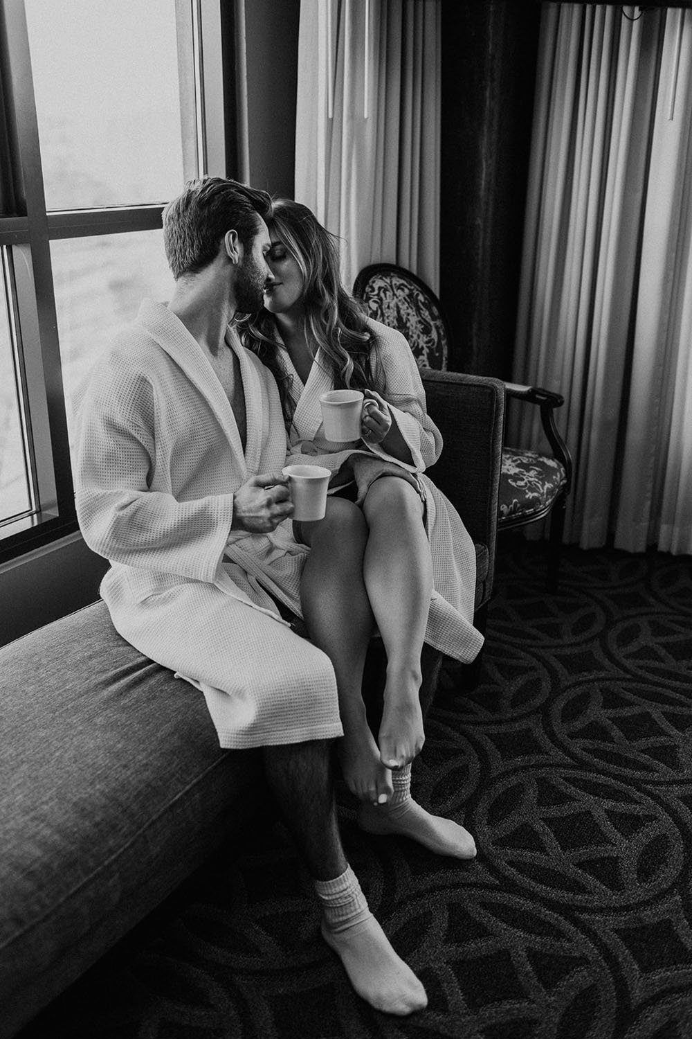 To celebrate two years, we wanted to return to the hotel from our wedding night. The Proximity Hotel is beautiful, and we wanted to take full advantage of all it has to offer. We had worked with Mariela before, and I knew she would be the perfect person to capture our memories through photos. It was important this anniversary shoot felt authentic to us—coffee and jumping on the bed, getting ready together, and chasing each other down the hall to our room. Not only did she capture stunning images, but we smile looking through the pictures because of the memories they bring back. It was a perfect way to celebrate two years, and I wouldn’t have wanted to share the experience with anyone else!