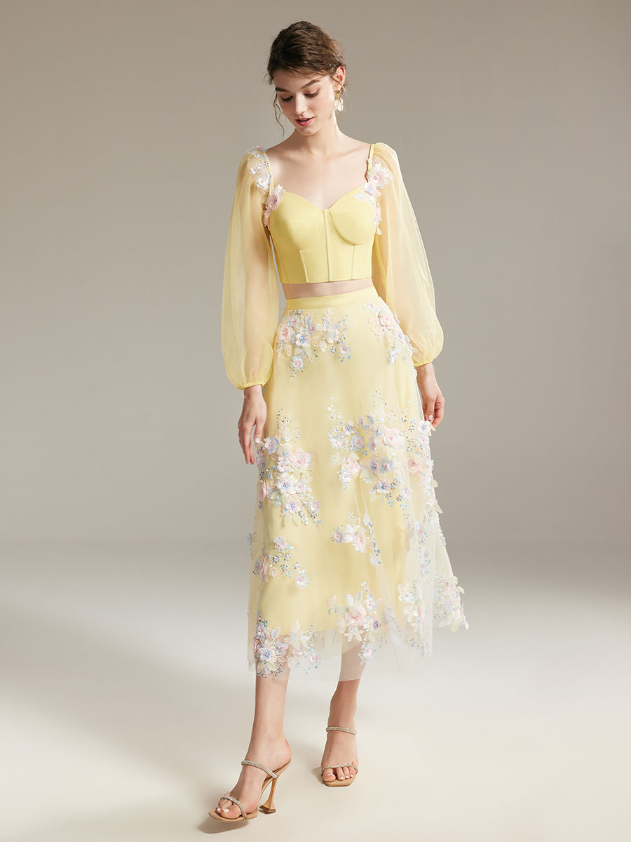 We can totally see these floral embellished dresses and sets make an appearance at an enchanting garden wedding or bridal shower.