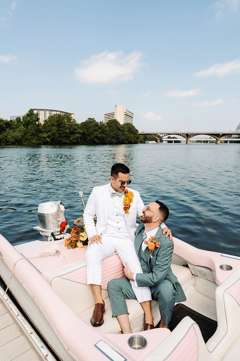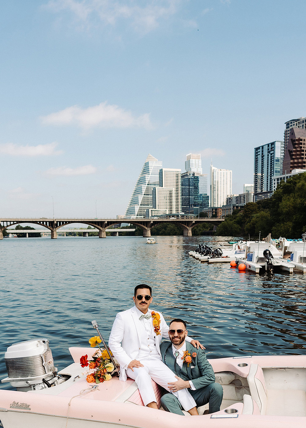 Lastly, they made their way to Austin’s Lady Bird Lake for a pink boat ride on Retro Boat Rentals’ “Gidget”. Made for the perfect portraits, don’t you think?
