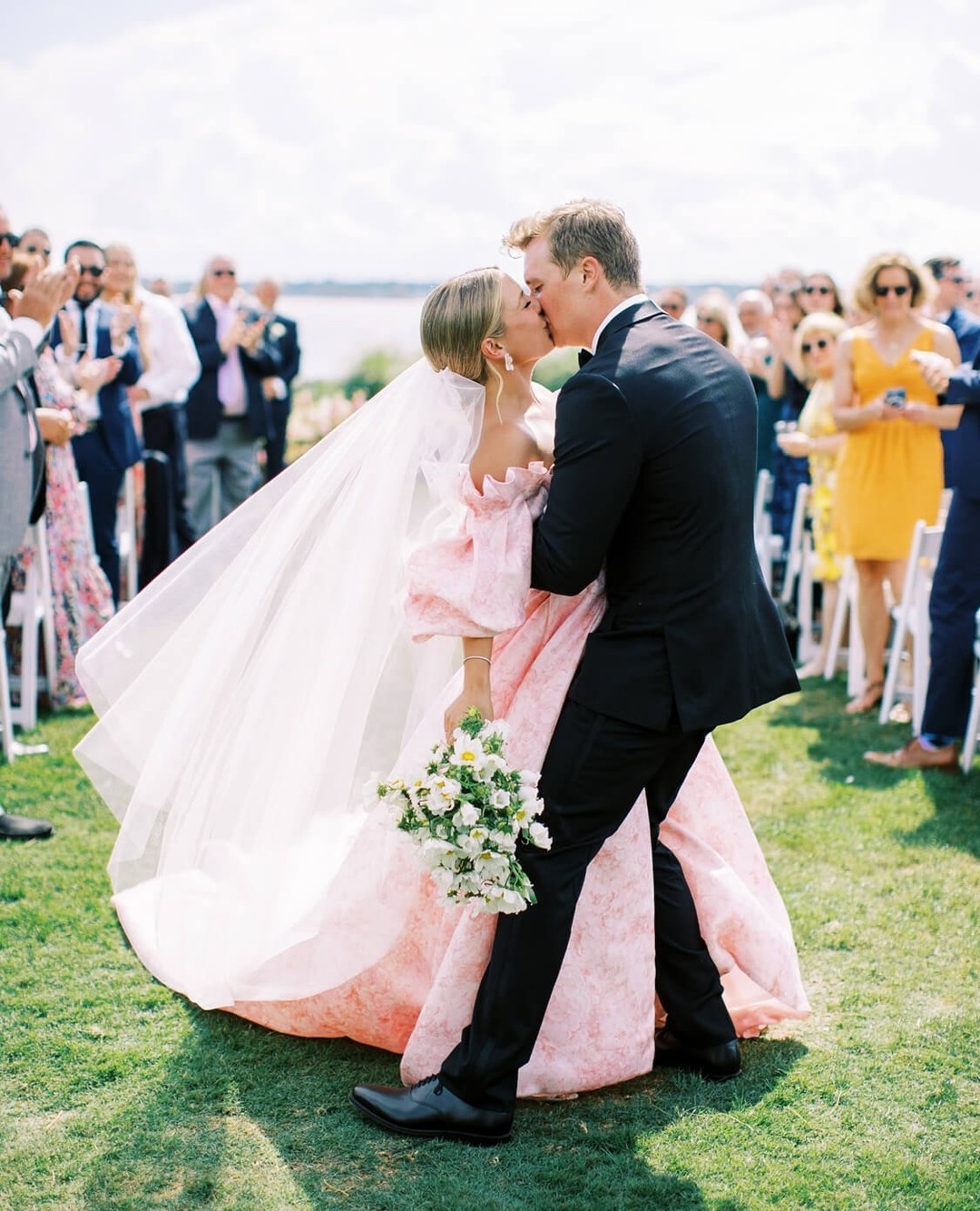 Pink wedding dresses are always a hit, but our bride Marissa knocked our socks off with an insanely dreamy pink wedding dress by Monique Lhuillier.