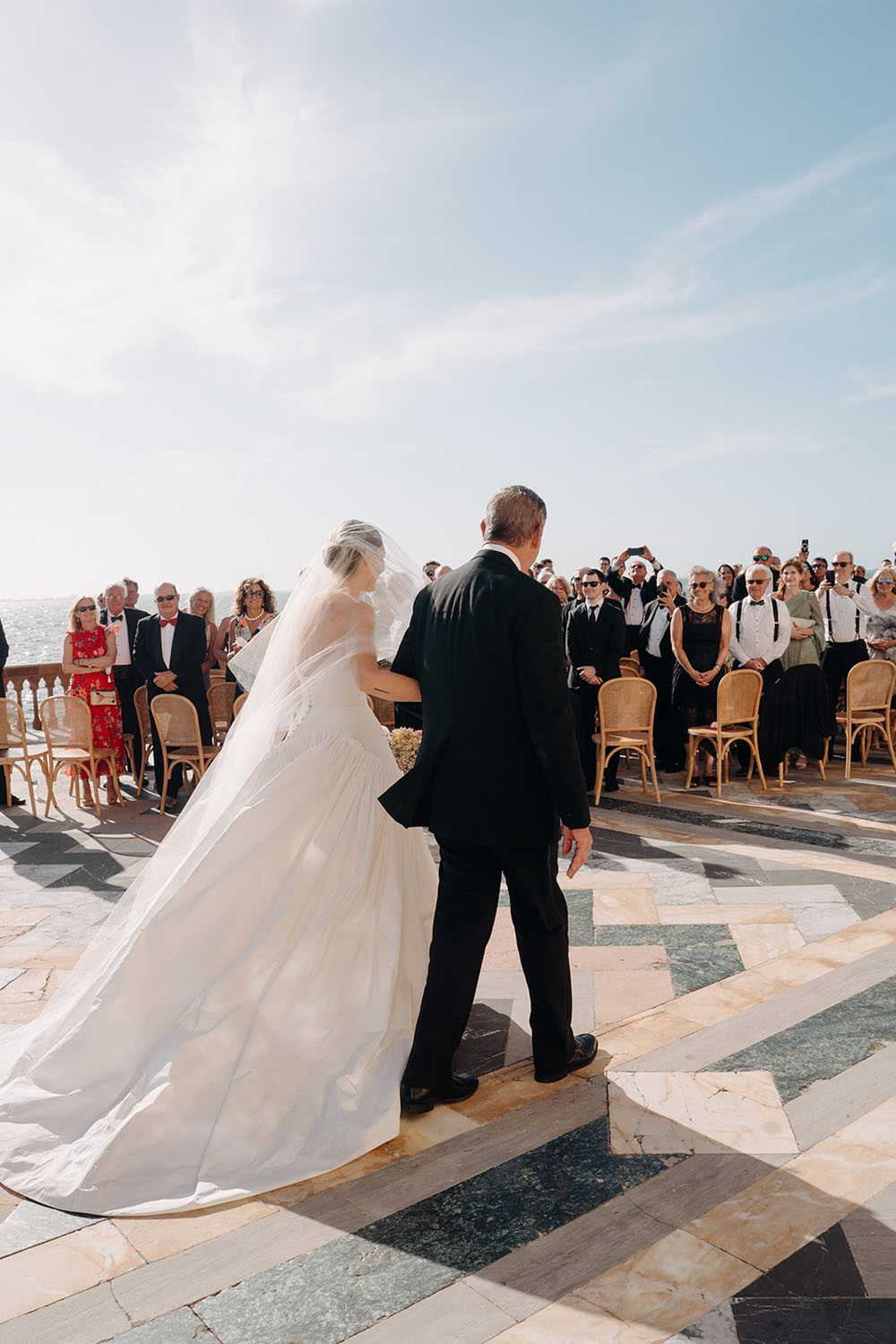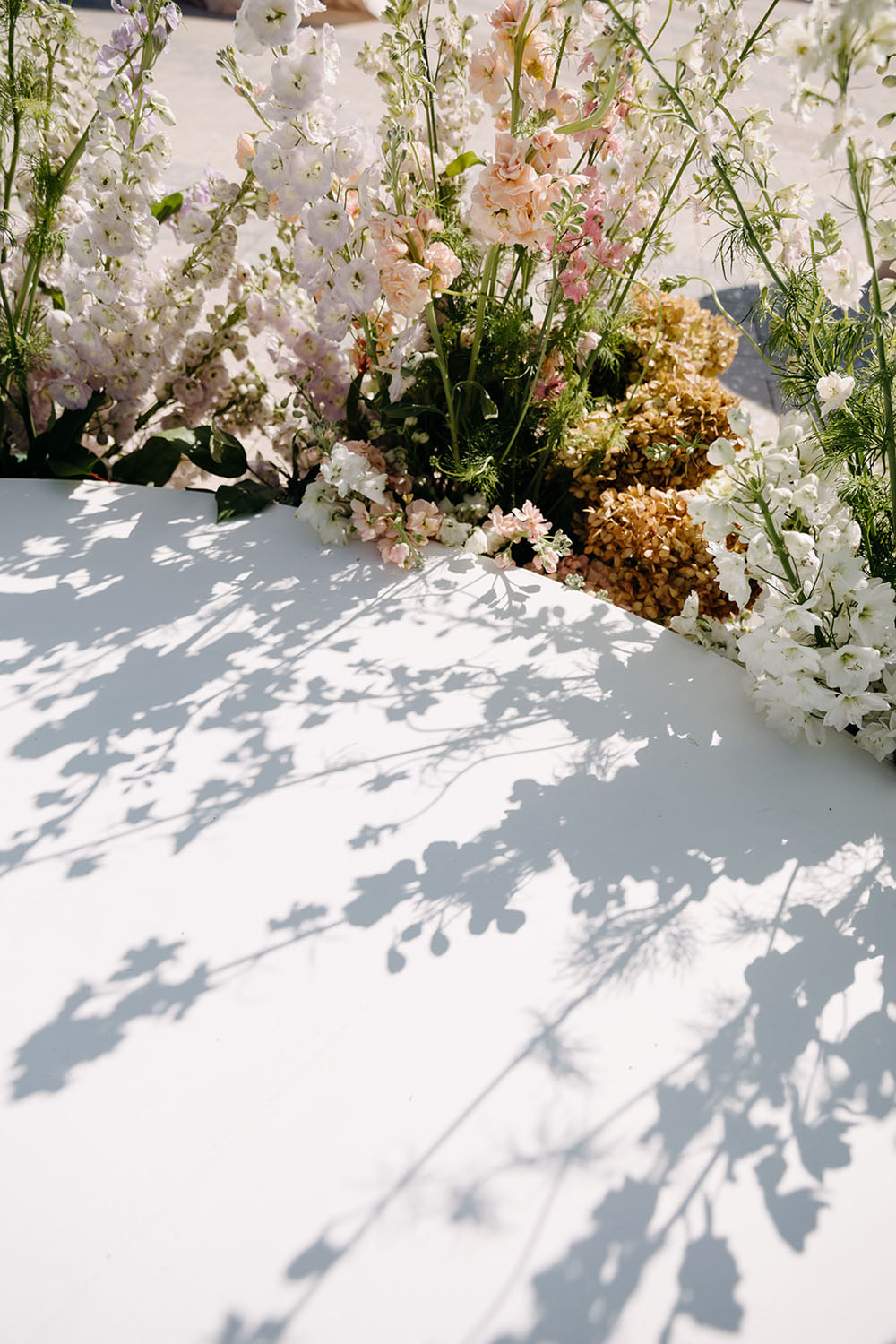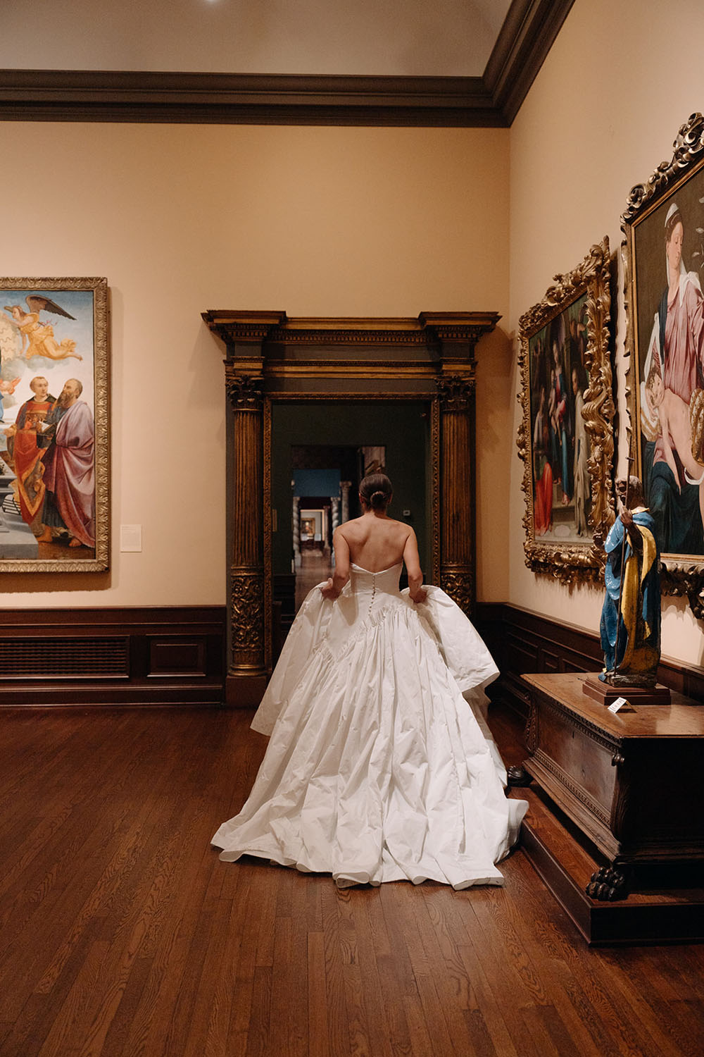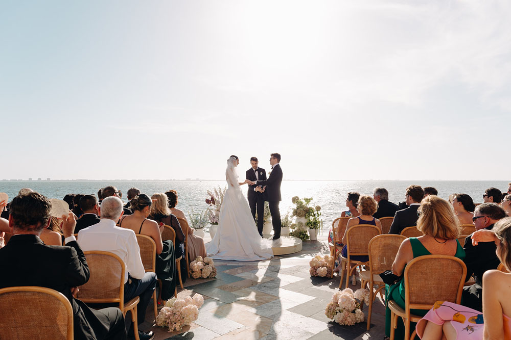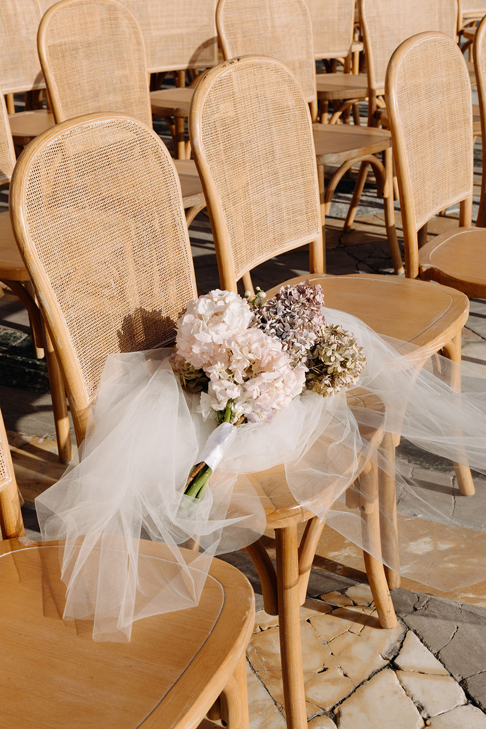 Alyssa tells us, “The John and Mable Ringling Museum of Art was right under our noses in Sarasota. Its European architecture felt just as special on our wedding day as it did the first time we saw it—there are “wow” factors everywhere you turn. We didn’t want our decor to detract from (or compete with) the museum in any way, so we kept our decor complementary to each space. At our ceremony, for example, the chairs mimicked the rounded shapes and chestnut colors of the Ca’ d’Zan façade, and the florals emphasized light pink and cream tones in the terrace’s tiles. As a result, we did not have “wedding colors”. The “theme” we were always striving for was more of a feeling. Put as simply as I can, we wanted a refined and perfect balance of: simple yet memorable, European yet Florida, formal yet fun, traditional yet updated, summery yet spring!”