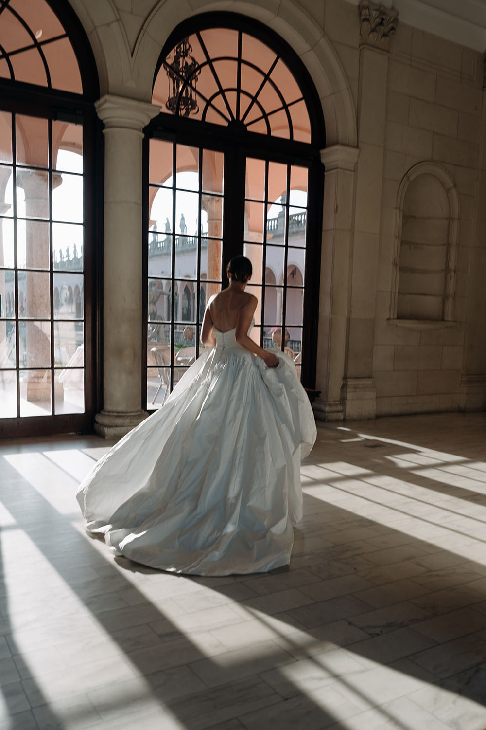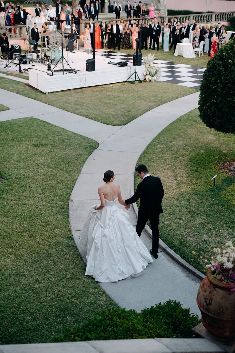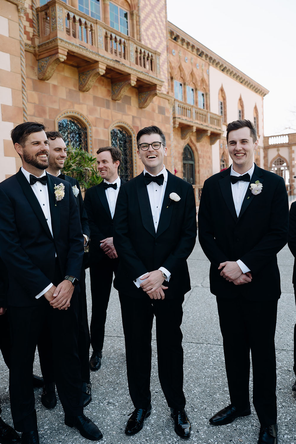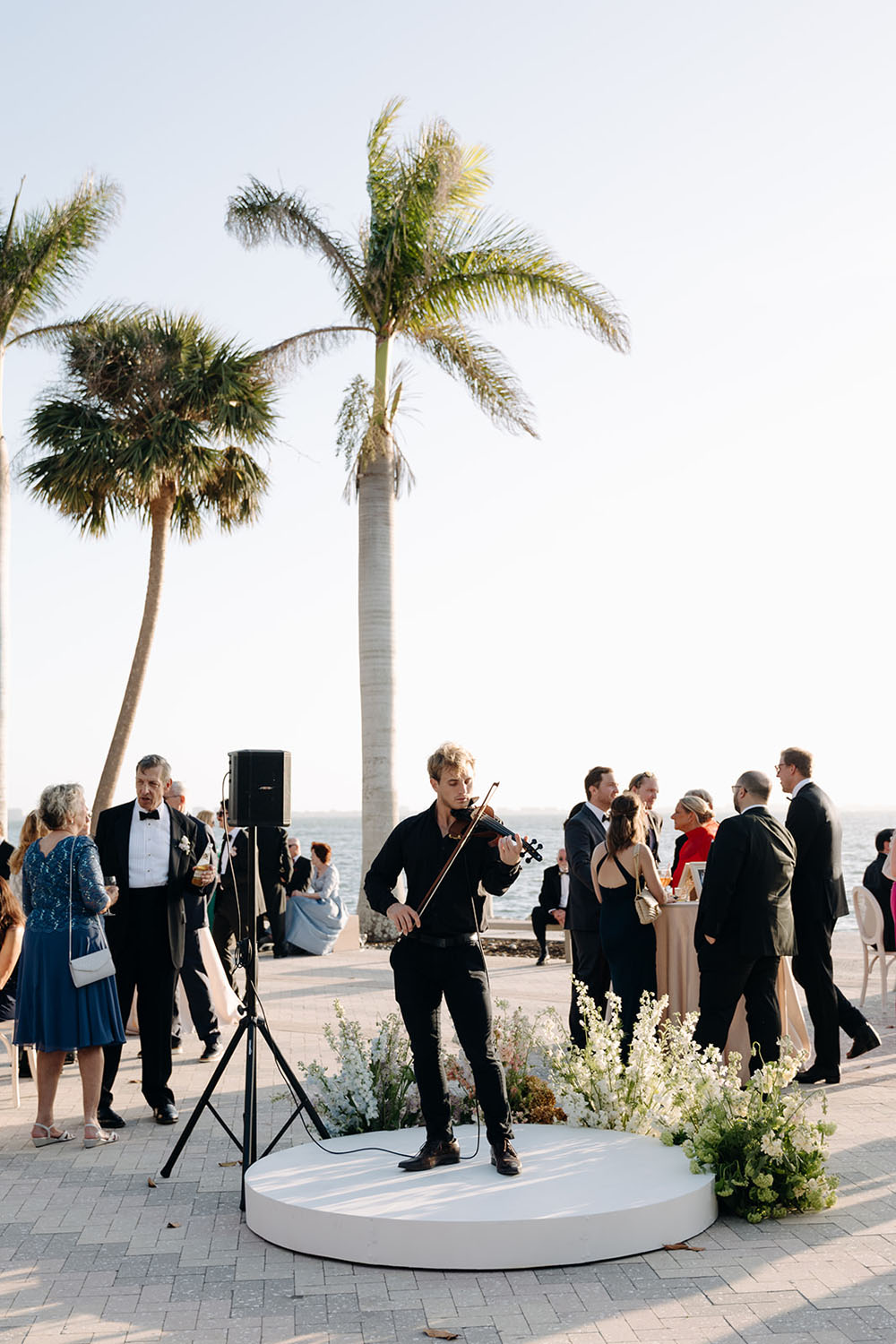 When it came to the wedding budget, they prioritized their venue, band, photography, and the dress. While a Ringling Museum of Art wedding is a splurge, it’s also beautiful without added florals and décor, so the couple were able to get by with less.