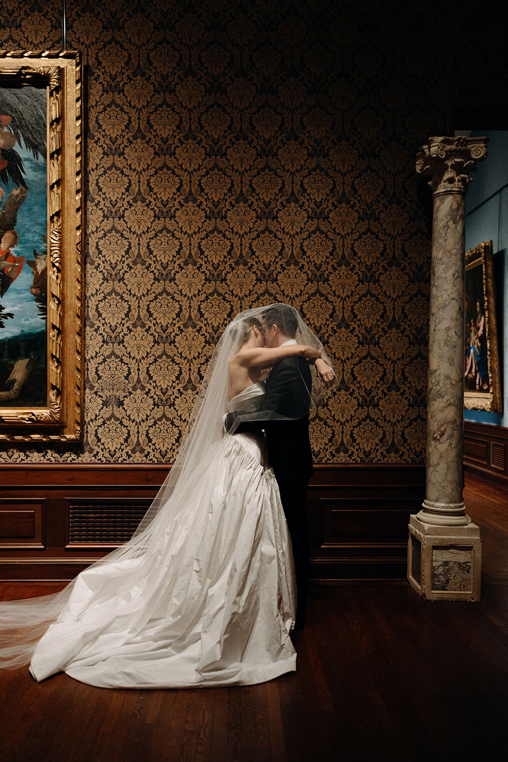 Not only did Alyssa’s Peter Langner gown fit her beautifully, it also complemented their wedding décor and venue with its classic, Italian style.