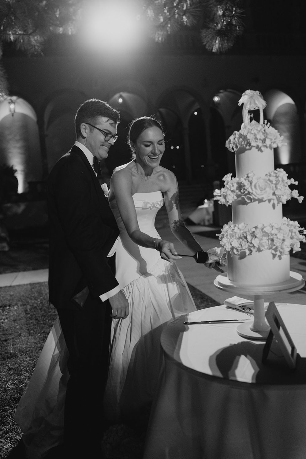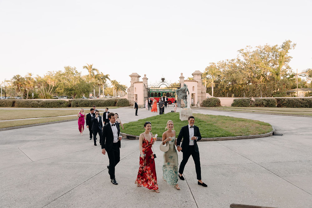 Planner: NK Productions | Photographer: Count in Threes Photo | Florist: Victoria Blooms | Venue: The John and Mable Ringling Museum of Art in Sarasota, FL| Content Creation: Wedding Tales Co. | Band: Party Down | Violinist: Pasha via SRQ Entertainment | Videographer: Belisi Moments | Cake: Julie Deffense | Wedding Dress Boutique & Veil: Wedding Atelier | Dress Designer: Peter Langner | Heels: Christian Louboutin | Reception Dress: Monique Lhuillier | Tuxedo: Suit Supply | Hair & Makeup: Tara Schwartz | Rentals & Lighting: SoStaged Events, US Tent Rental, Palacios Events, Stella Rose Events | Wedding Trolleys: SRQ Trolley | Hotel: The Sarasota Modern | Spray Tan: Little Miss Sunshine | Stationery: Elefant Press | Illustration: Illustrated by Mia | Caterer: Simply Gourmet by Metz | Chocolates: Burke Candy |Late Nite Pub Subs: Publix