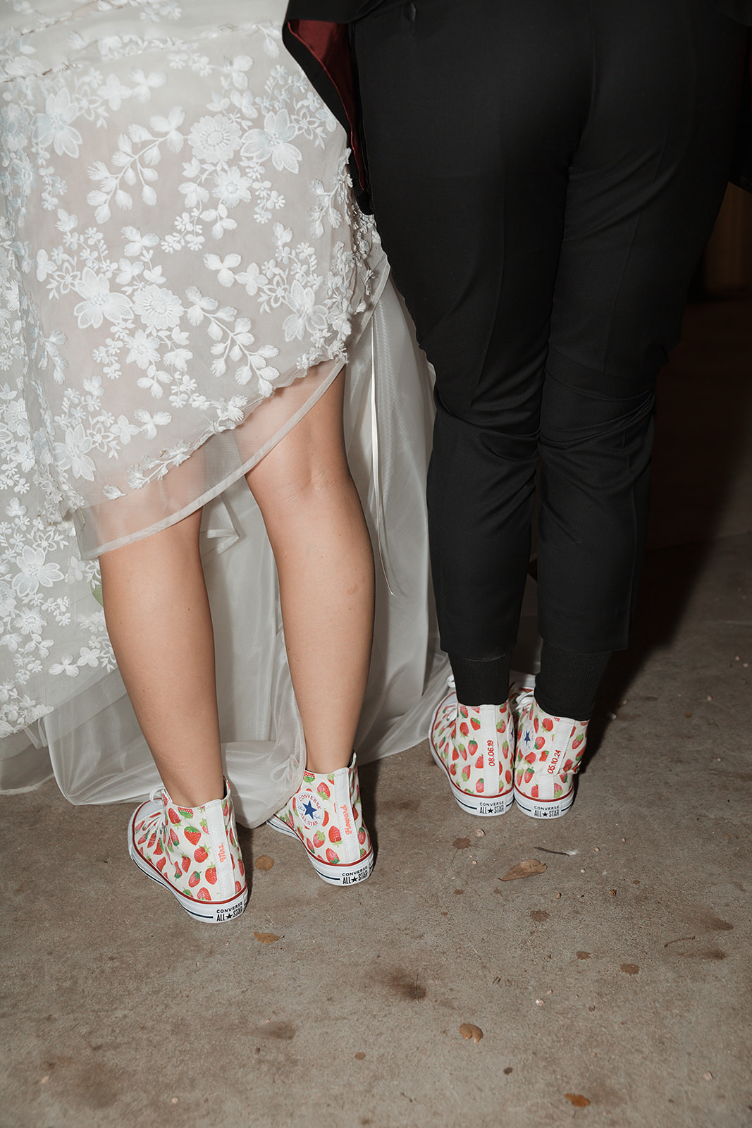 Dinner and dancing took place in the venue’s 6,000 square foot barn, with its giant doors flung open to let the late spring breeze flow through. Espresso martinis and late-night snacks kept the energy going well into the night. And in perhaps the most iconic outfit change of the year, Taylor and Drake slipped into matching strawberry-print high-top sneakers for the dance party—a move that was just as fun as it was fashionable.