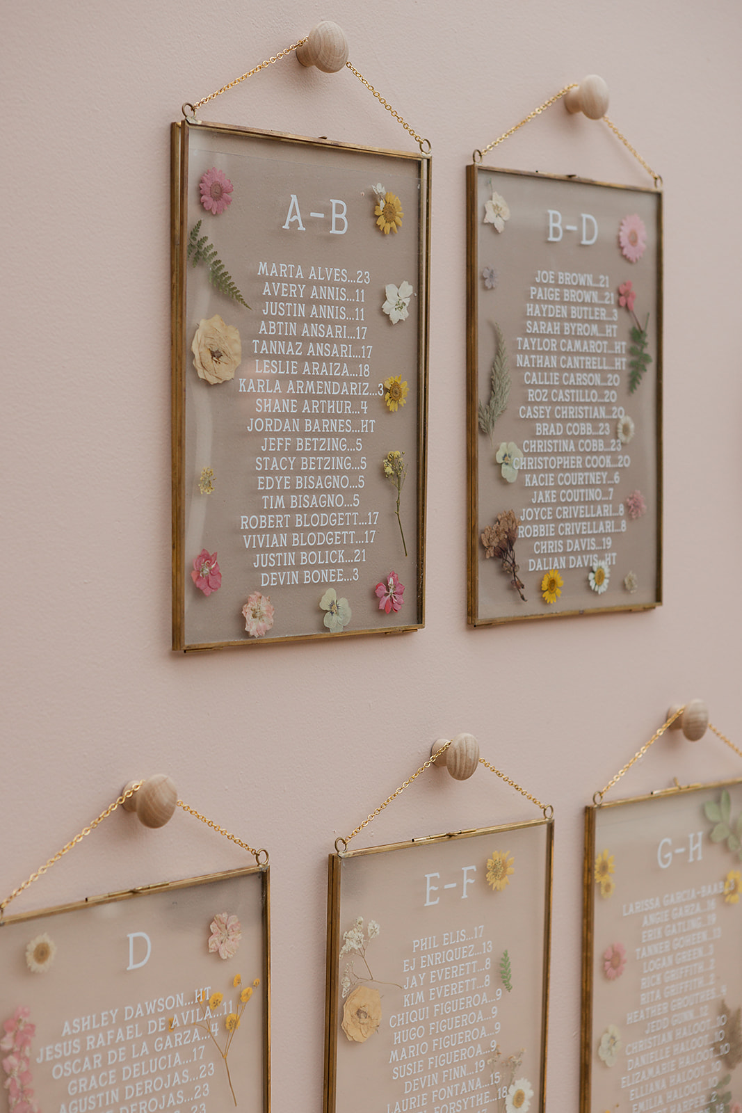 Such gorgeous pressed flower escort cards to channel their earthy, whimsical theme.