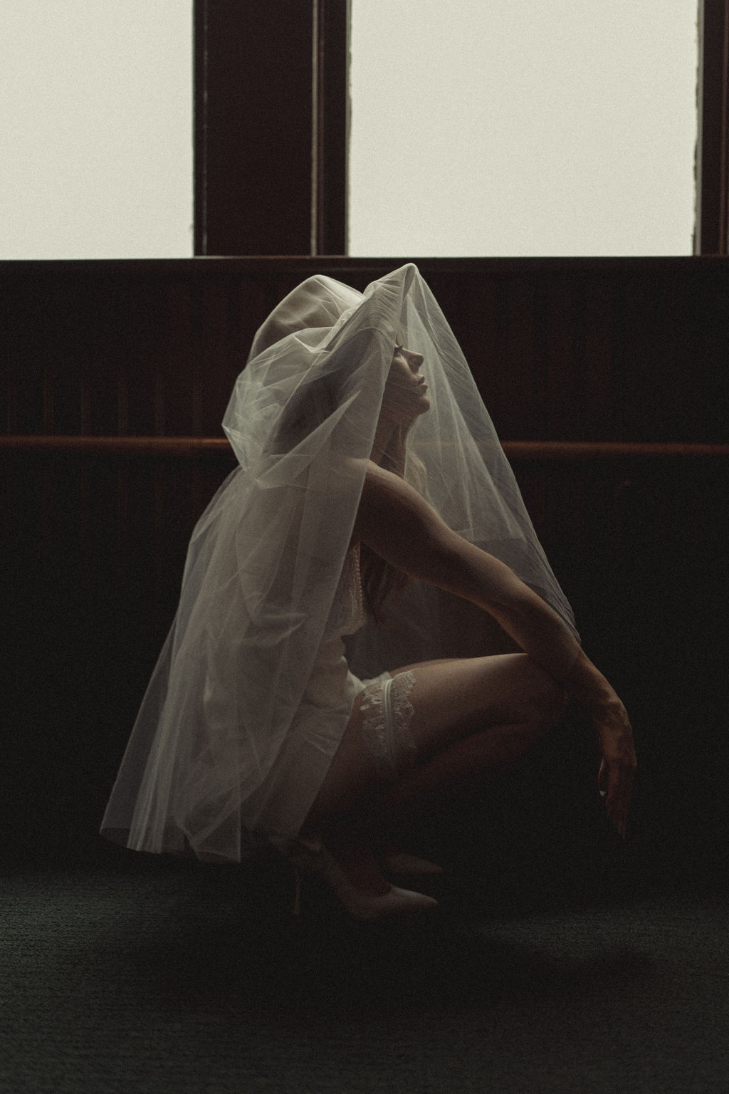 Photos: Rachel Santos / Gown: Anthropologie / Hat: Anthropologie / Gloves: Anthropologie / Veil: Anthropologie / Hair and makeup by the bride: Steph