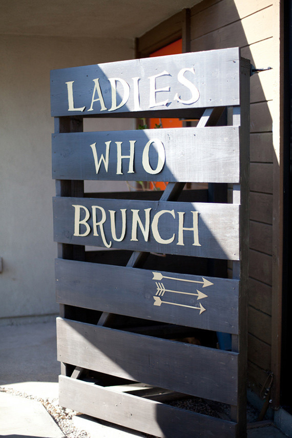 "Ladies Who Brunch" gold and back sign